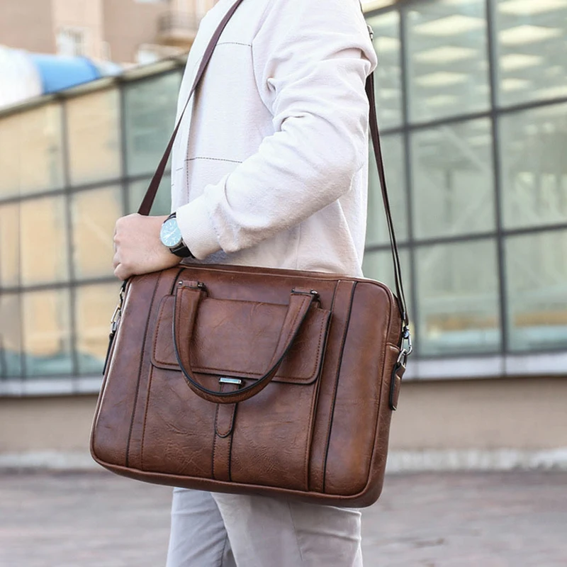 Herren Aktentasche PU Leder Executive Casual Handtasche Laptop Dokument Schulter Business Vintage Messenger Crossbody Designer Tasche