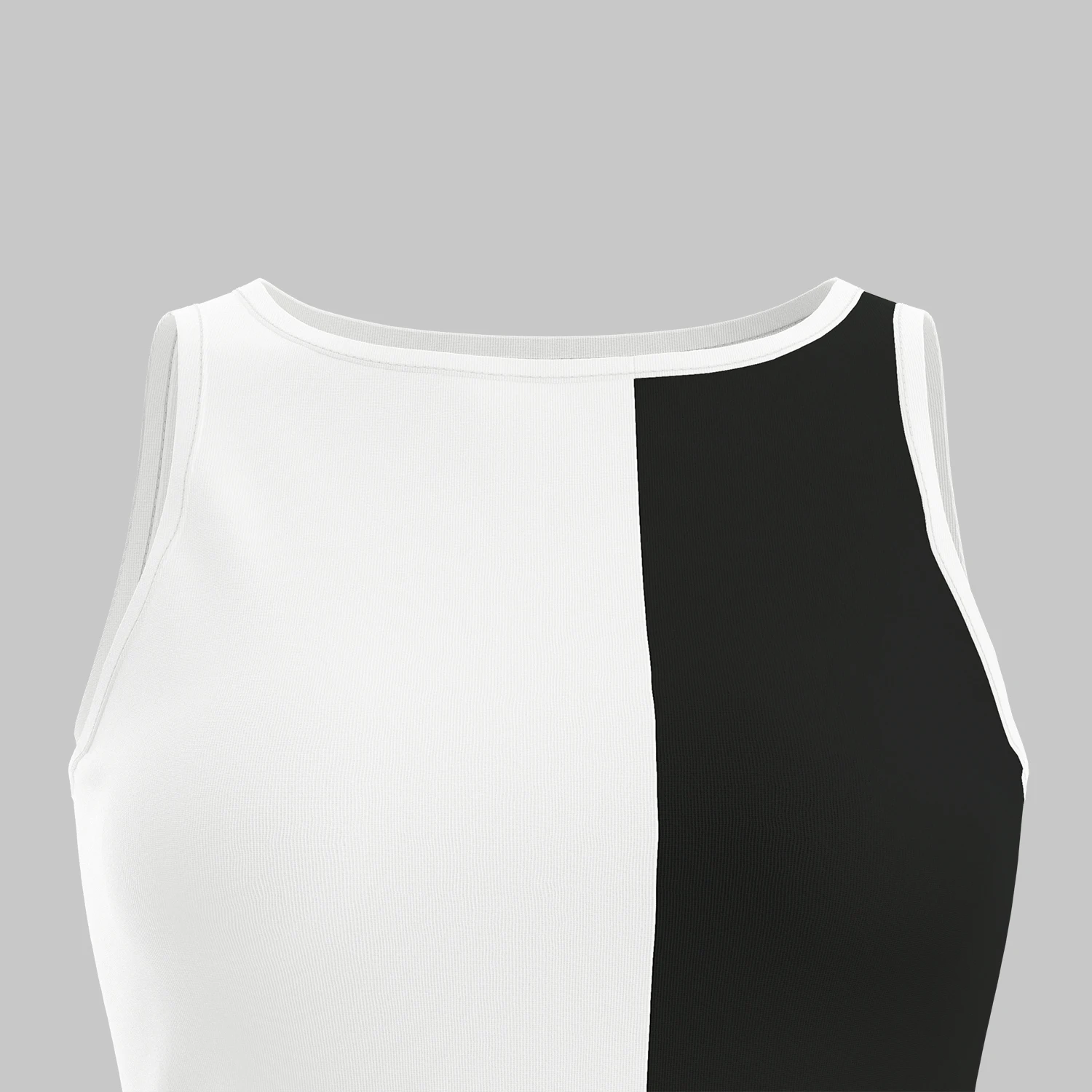 Mia Muse Women's Tanks All Seasons Korean Contrast Color Sleeveless Round-Neck Petite Casual Tanks & Camisoles