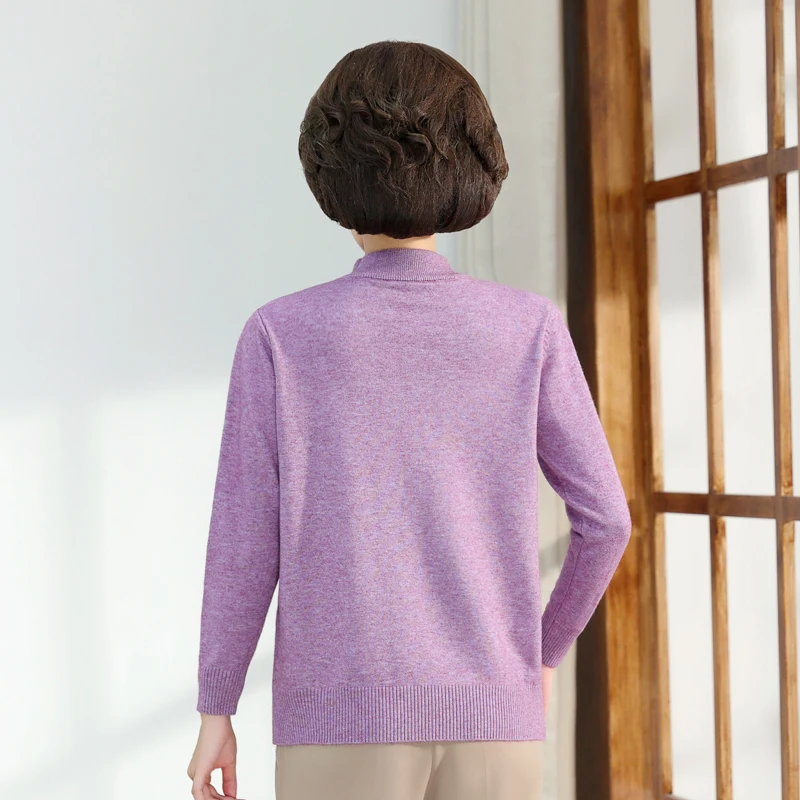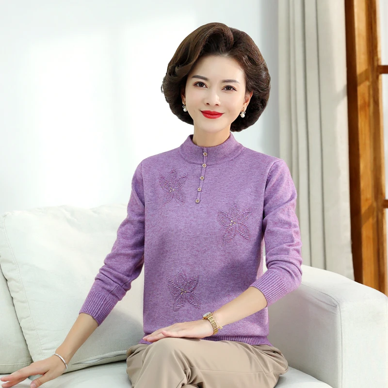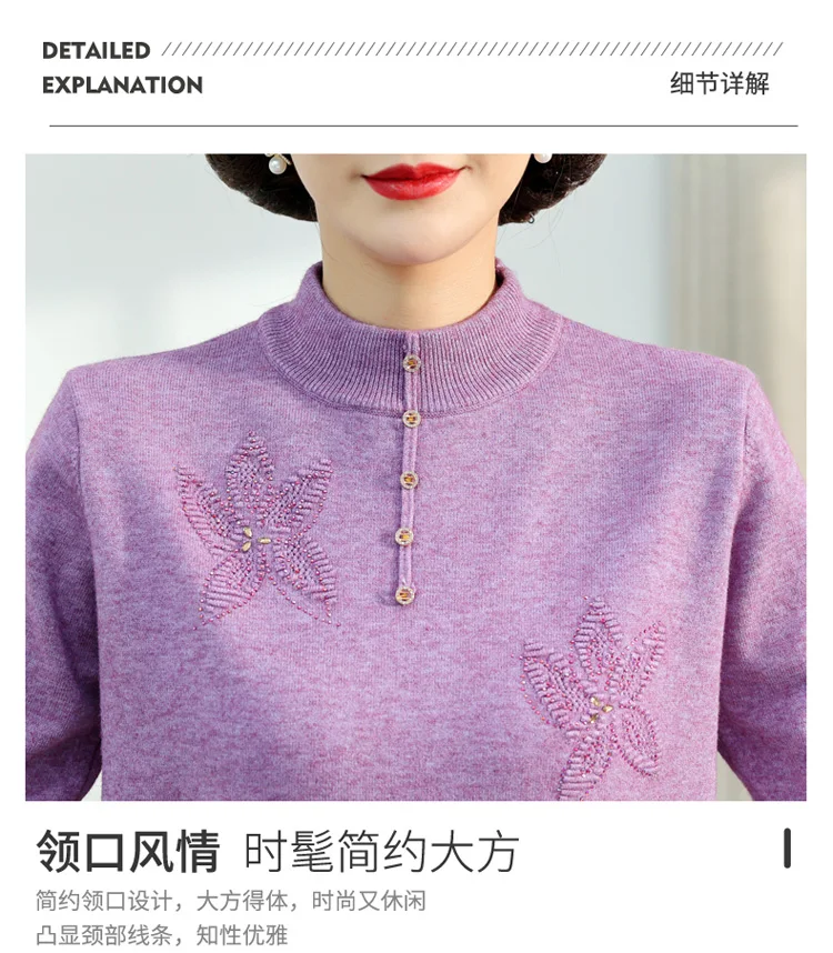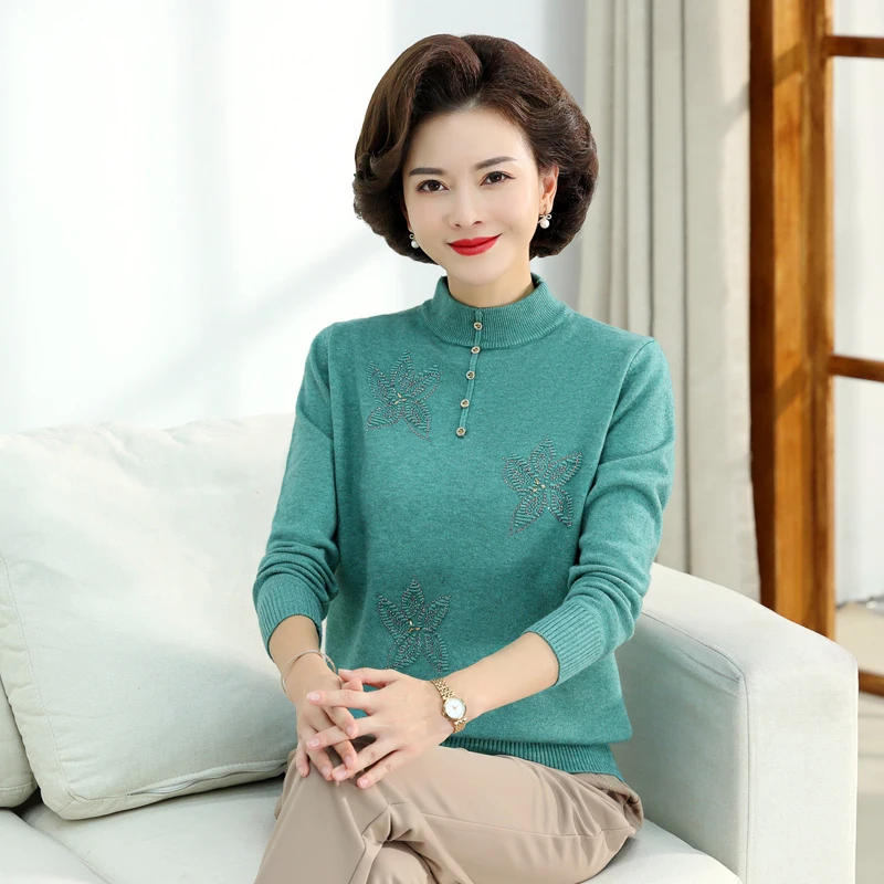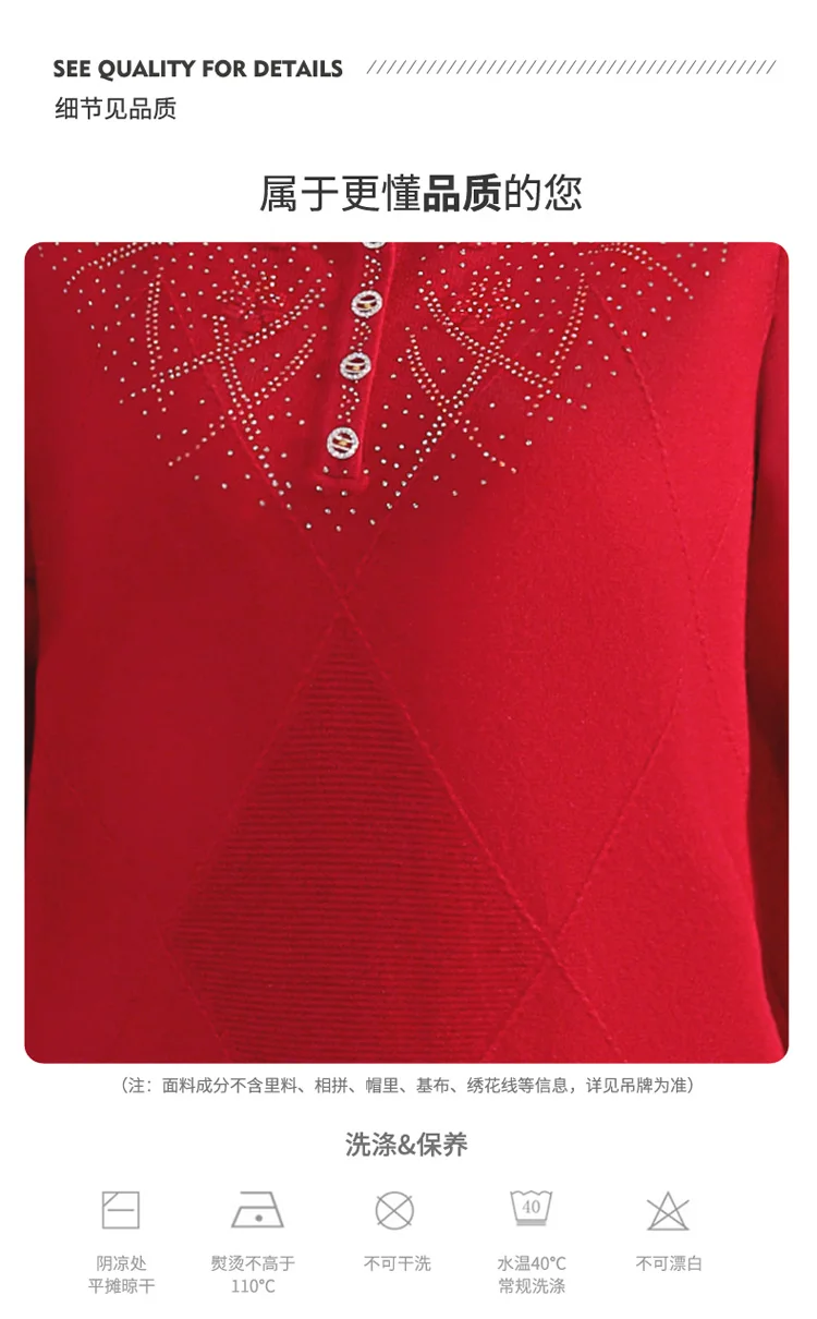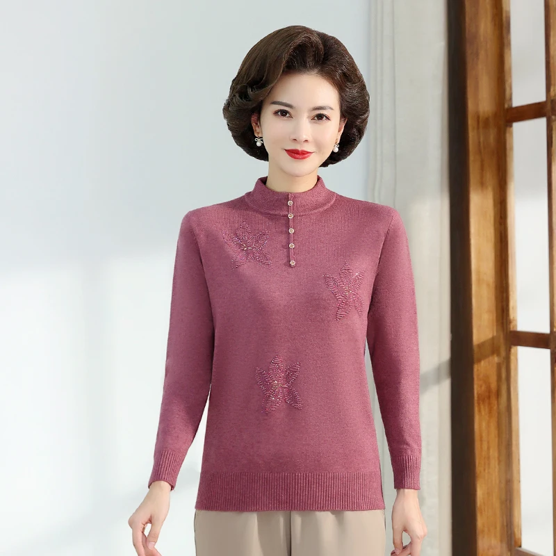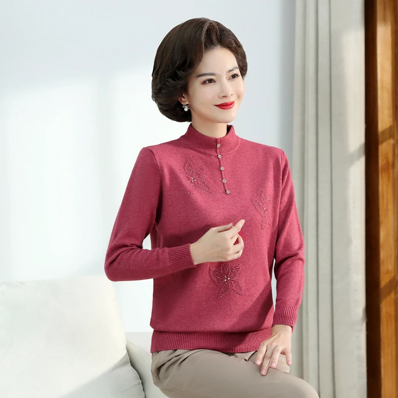 Middle-aged Women's Autumn Sweaters Pullovers V-neck JUmper Hot diamond Knitting Sweater Mother Dress Tops