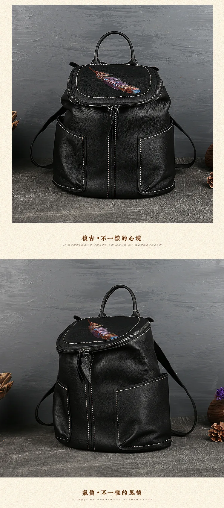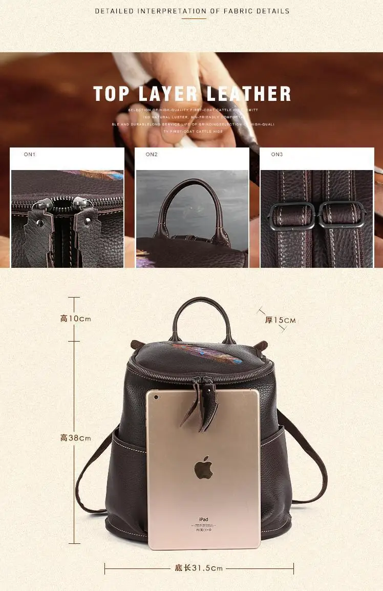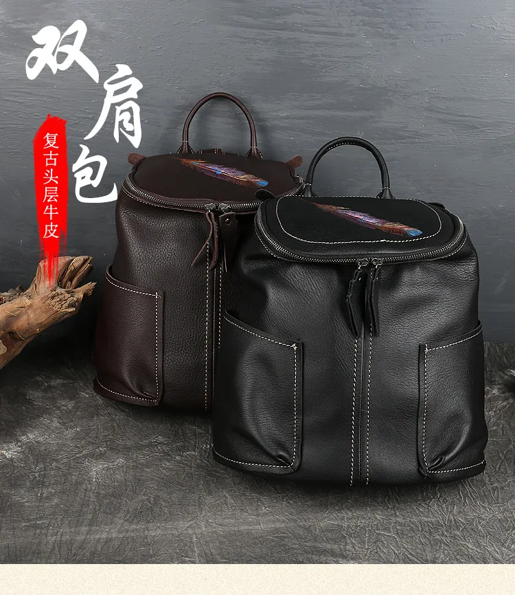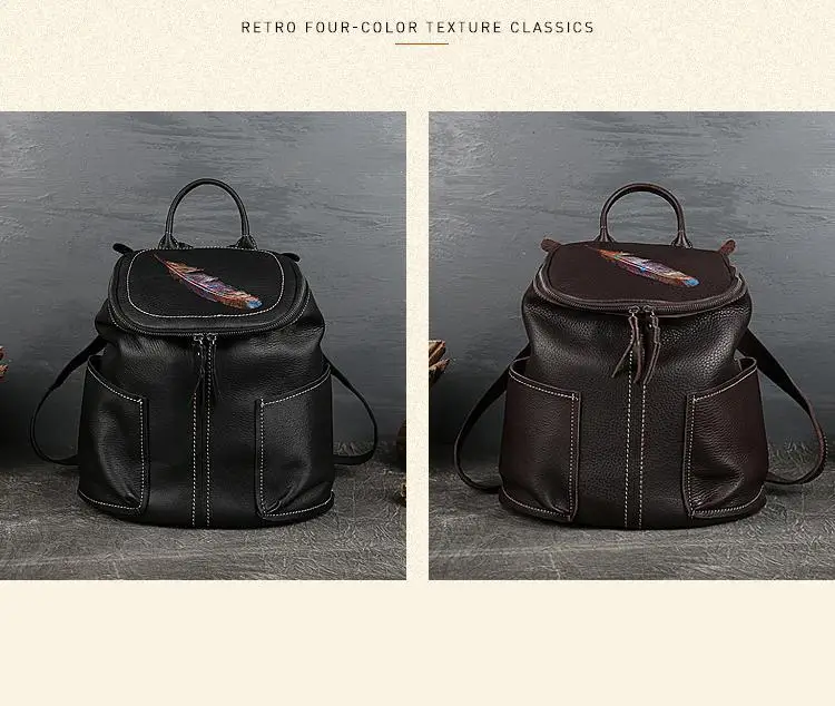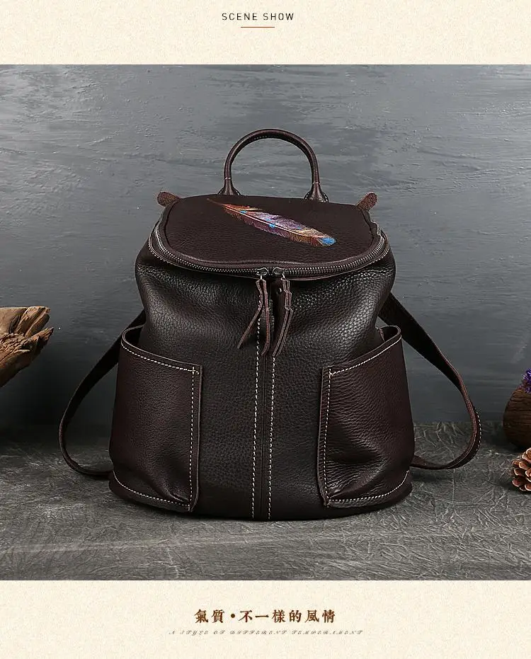 MOTAORA Vintage Genuine Leather Women Backpack New Handmade Cowhide Schoolbag Large Capacity Feather Pattern Travel Bag Ladies
