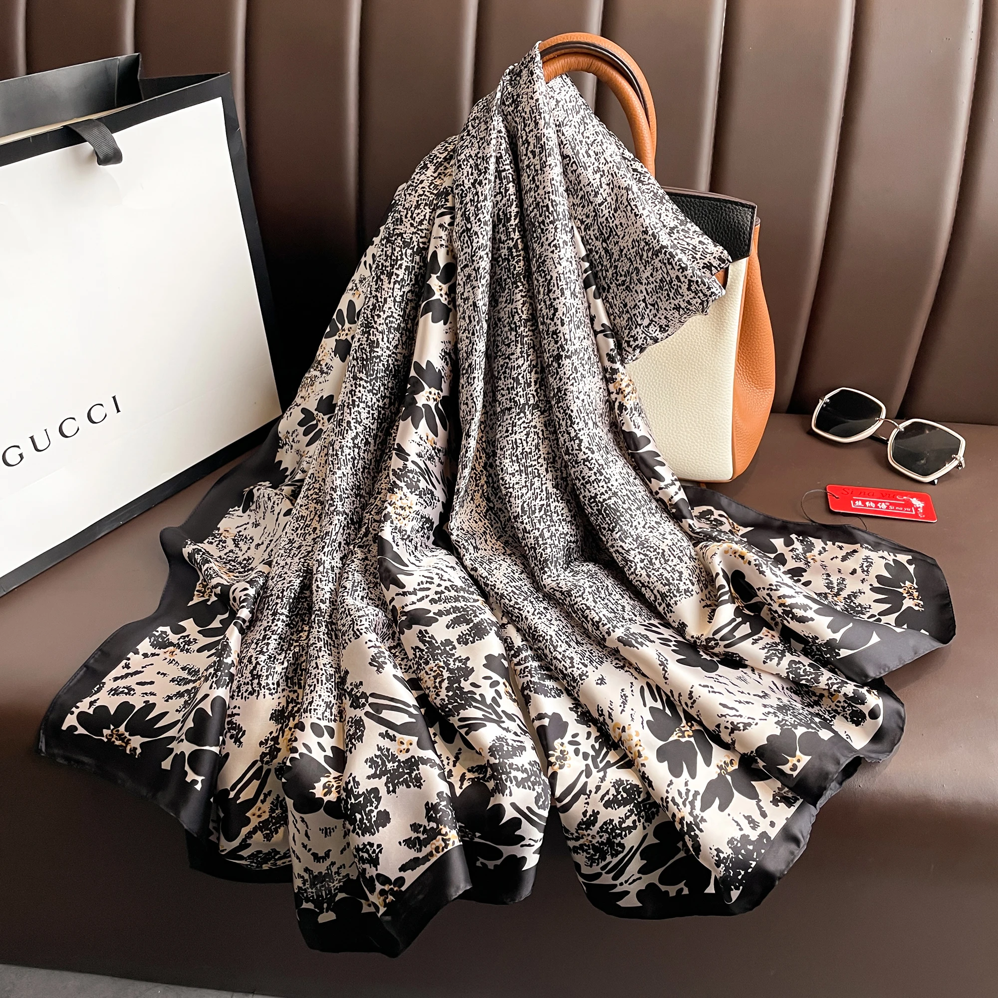 New 2025 180*88cm classic Silk Scarf Women Foulard Office lady Large Fashion Print Beach Hijab Shawl Warp Bandanna Muffler