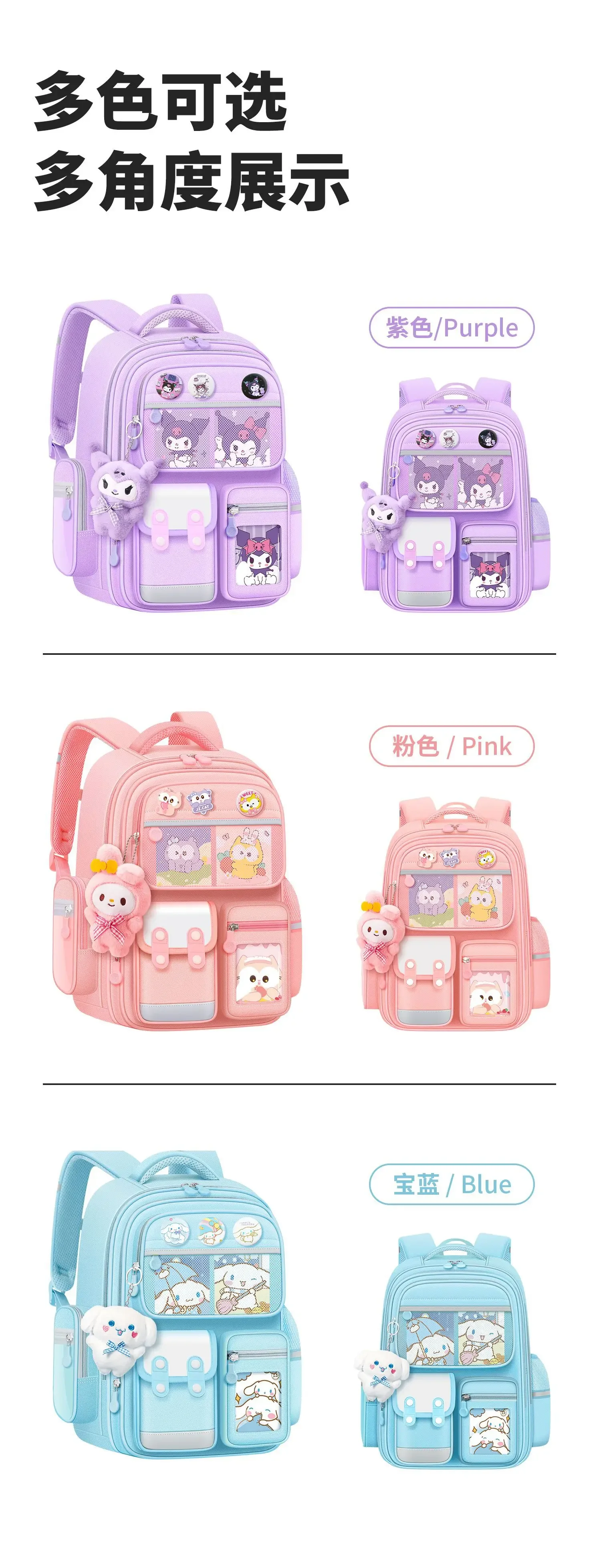 New Children Schoolbag Students Back To School Kuromi Backpack Cinnamoroll Girls Boys Book Bags Kids Mochilas
