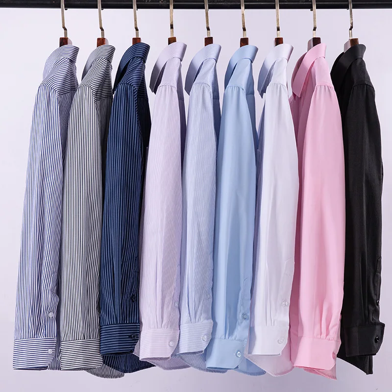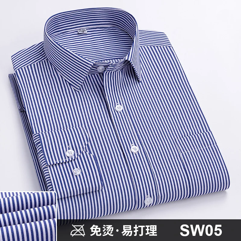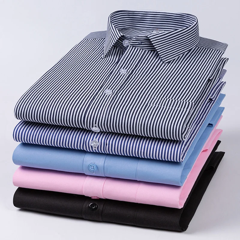 New Men's Formal Shirt Long Sleeve Office Striped Anti-wrinkle Non-ironing Fashion Business White Shirts S~8XL Oversized