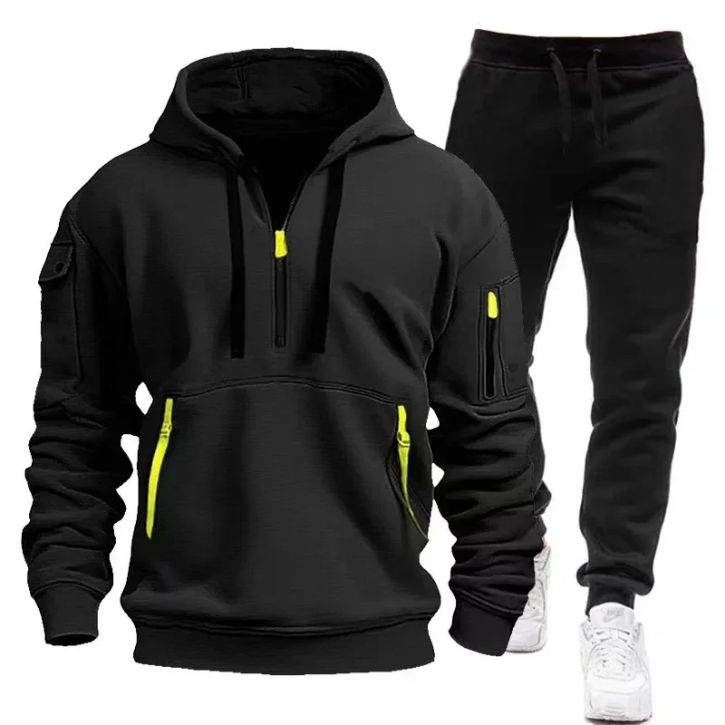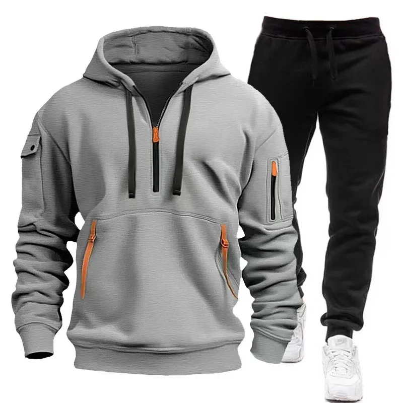 New men's sports suit hooded sweatshirt long pants arm pocket zipper fashionable casual outdoor jogging sportswear men's suit mon