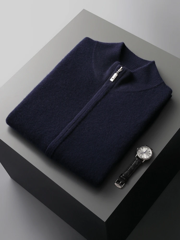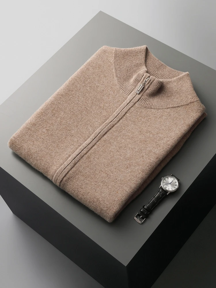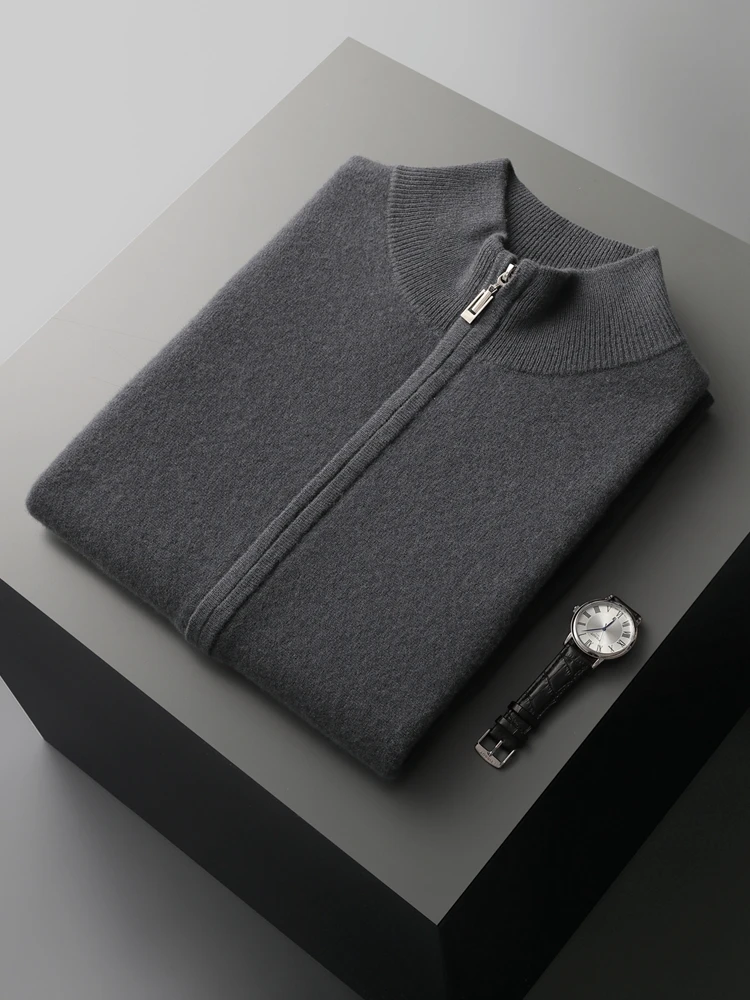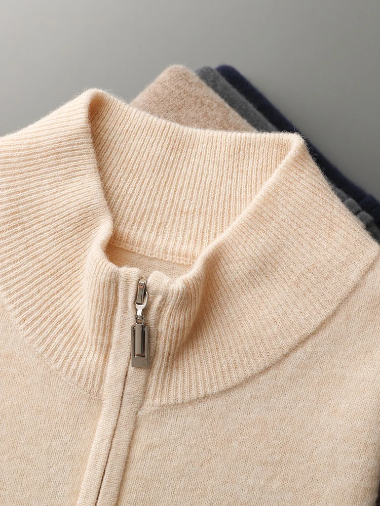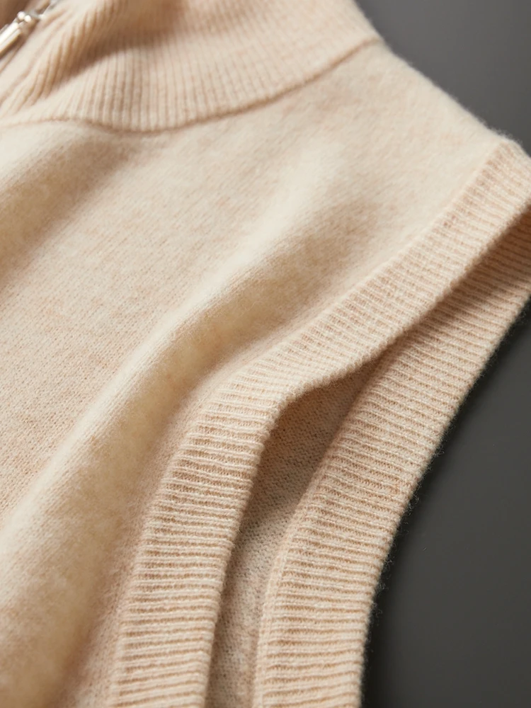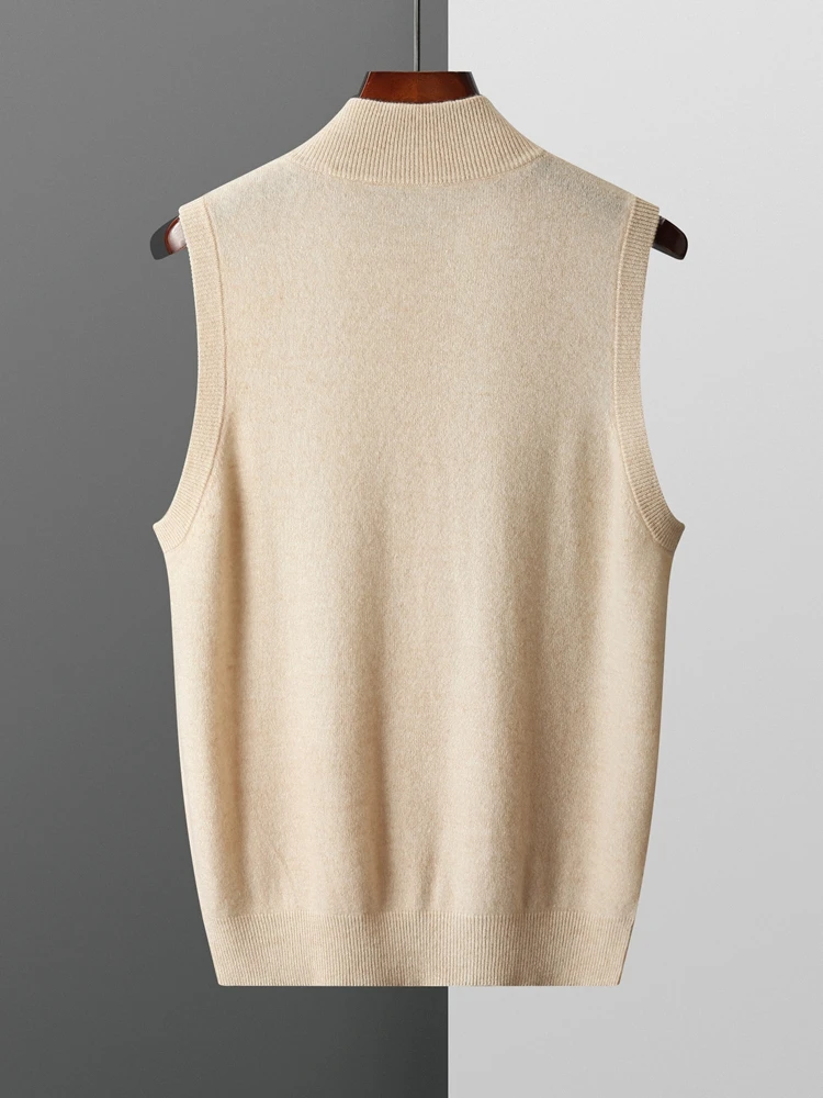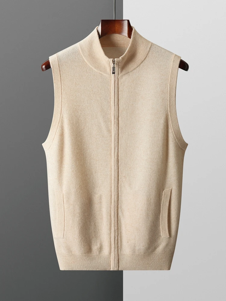 New Men's Zipper Wool Cardigan Waistcoat Autumn Winter Cashmere Sweater Sleeveless Knitwear 100% Merino Wool Vest Tops Clothing