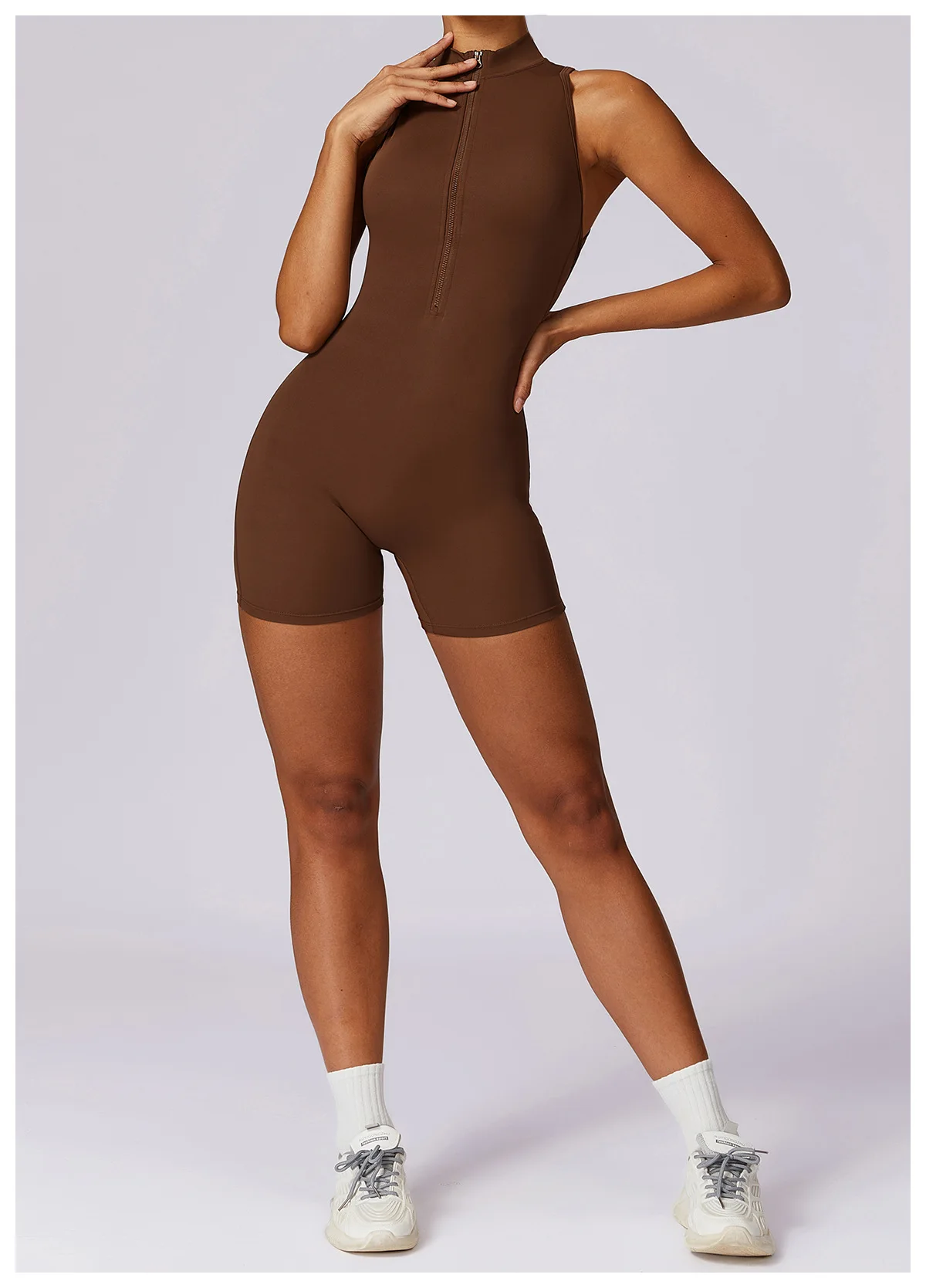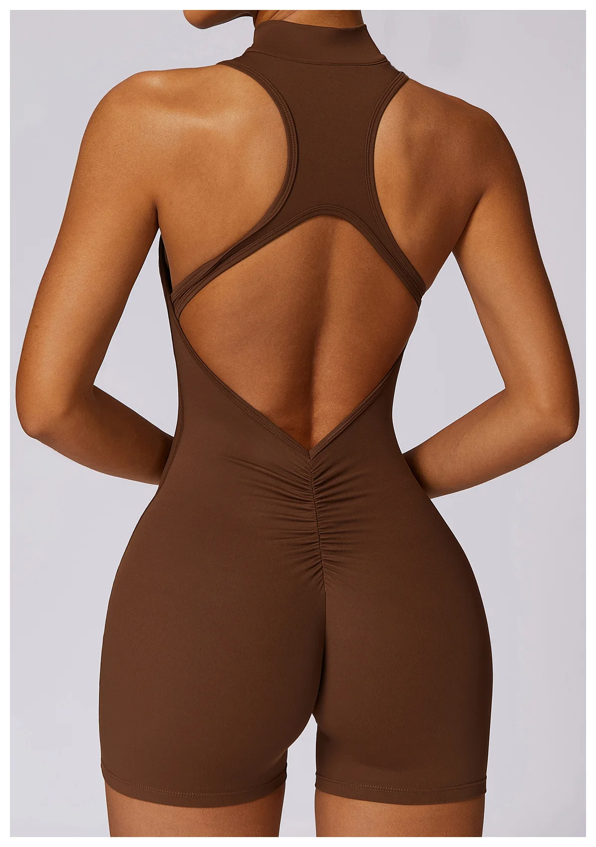 New V Back Scrunch Sports Jumpsuit Women Gym Rompers Sleeveless Sportswear Bodysuits Women Zipper One-Piece Suit Yoga Clothing