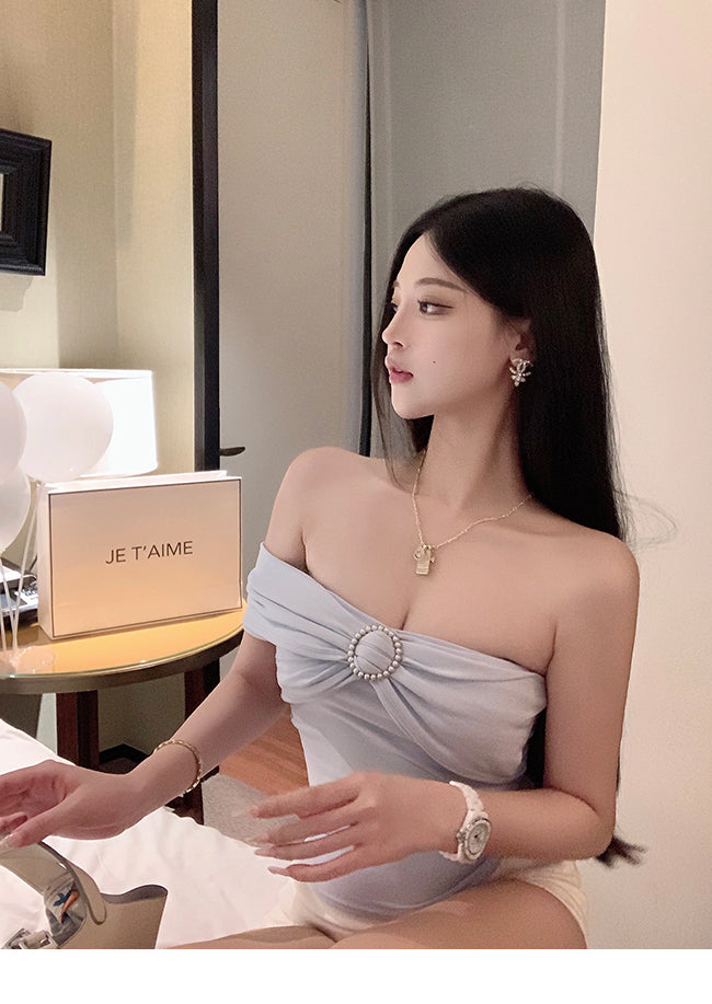 Oblique Shoulder Strap Early Autumn Stylish Short Silm Tube Top