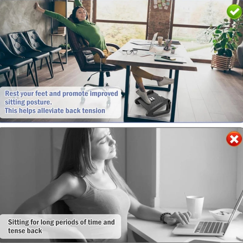 [Adjustable Design]The footrest under the work desk is height-adjustable, helping you get a suitable angle for long periods of sitting. Included here are 6 heights to choose from. Support your legs at your preferred angle for optimal relaxation.