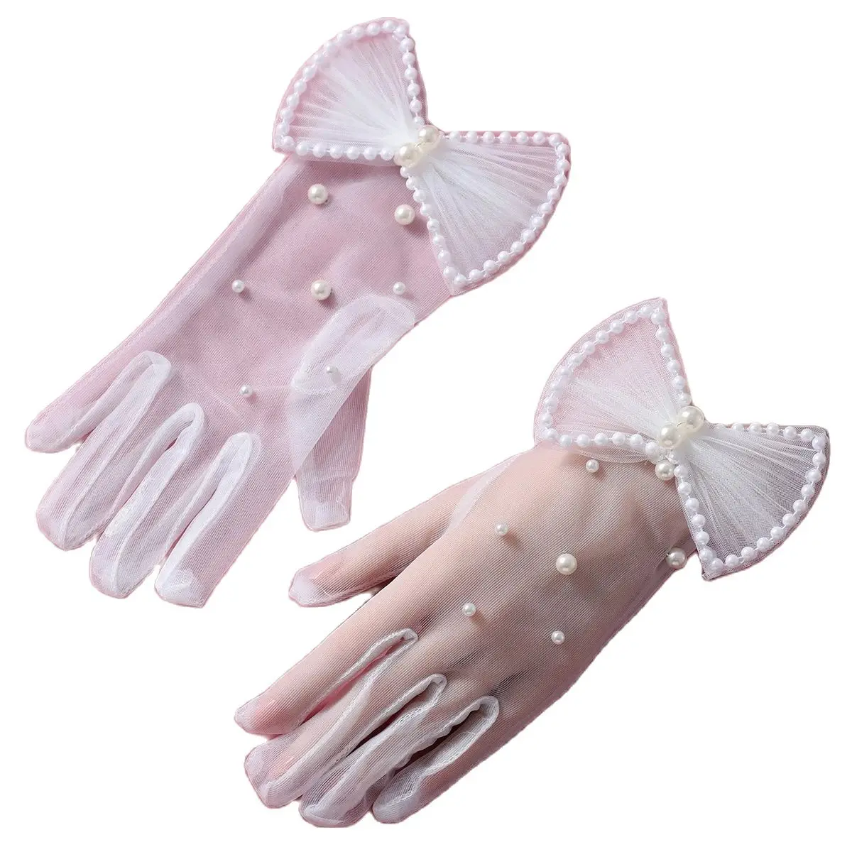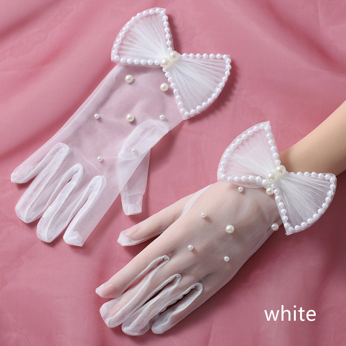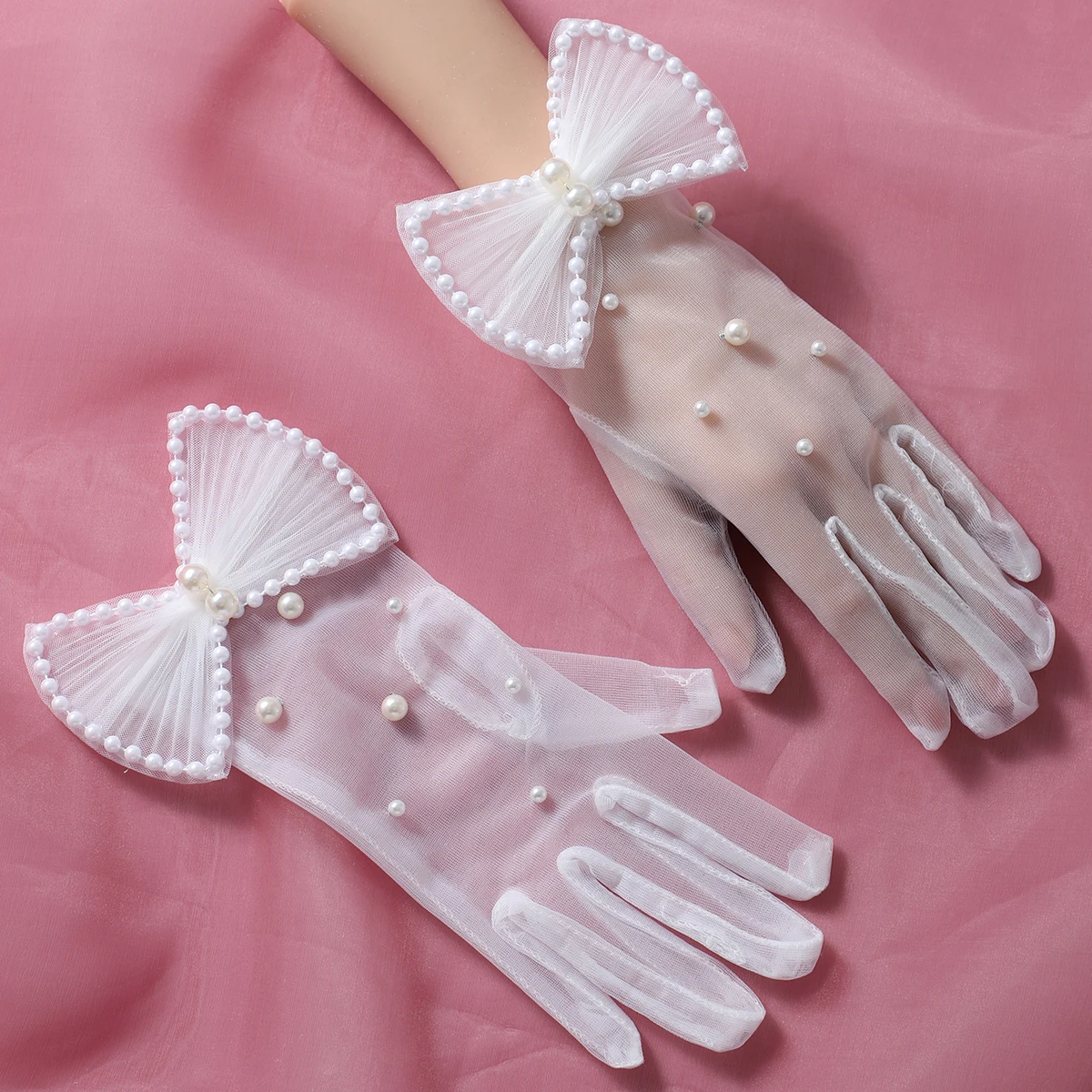 Party Gloves Full Of Elegant Style Ladies' White Beaded Dress Up Gloves With Bow Suitable For Wedding Ball