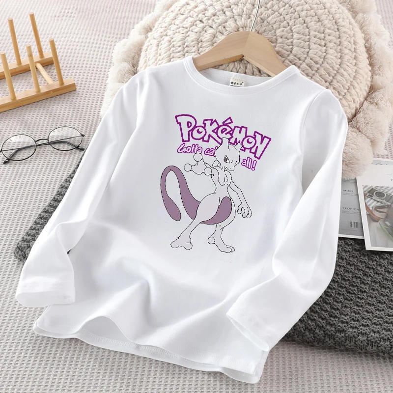 Pokemon Kinder Langarm T-Shirt Pikachu Winter Casual Warm Tops Kinder Anime Cartoon Lose Pullover Kind Geburtstagsgeschenke