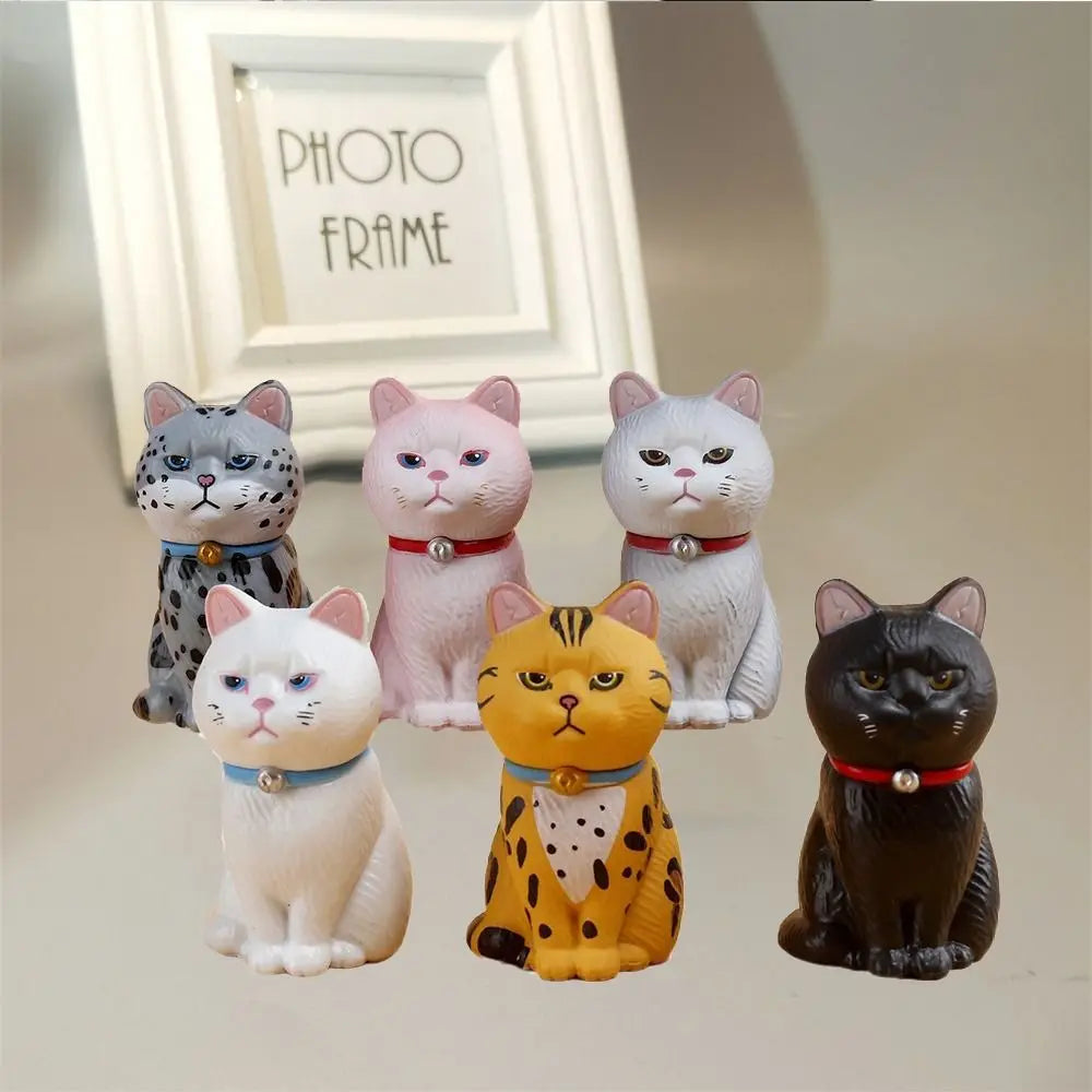 PVC Statue Simulated Cat Model Doll Mini Black Cat Sitting Cat Figure Toy Small Bell Cartoon Mini Cat Ornament Birthday Gift