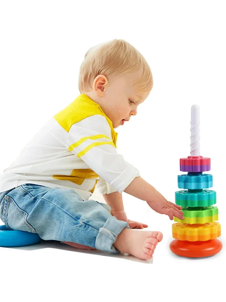 Regenbogen-Turm, Stapeln, Musik, Farbe, Nistring, 1–3 Jahre alt, Kleinkind, Baby, Turn Turret Puzzle, Montessori-Spielzeug für die Früherziehung