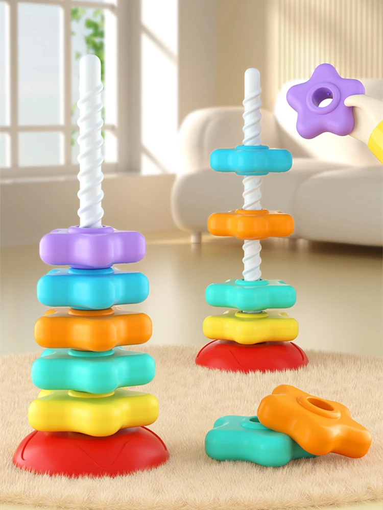 Lernspielzeug zur Aufklärung: Dieses wunderbare rotierende Stapelspielzeug bietet satte Farben, lebendige Texturen und faszinierende Drehbewegungen, sodass Kinder lernen können, ohne auf Technologie und Bildschirme angewiesen zu sein. Im Spiel können Kinder Farberkennung und taktiles Erkunden üben und die Hand-Augen-Koordination sowie die Feinmotorik der Hände verbessern.