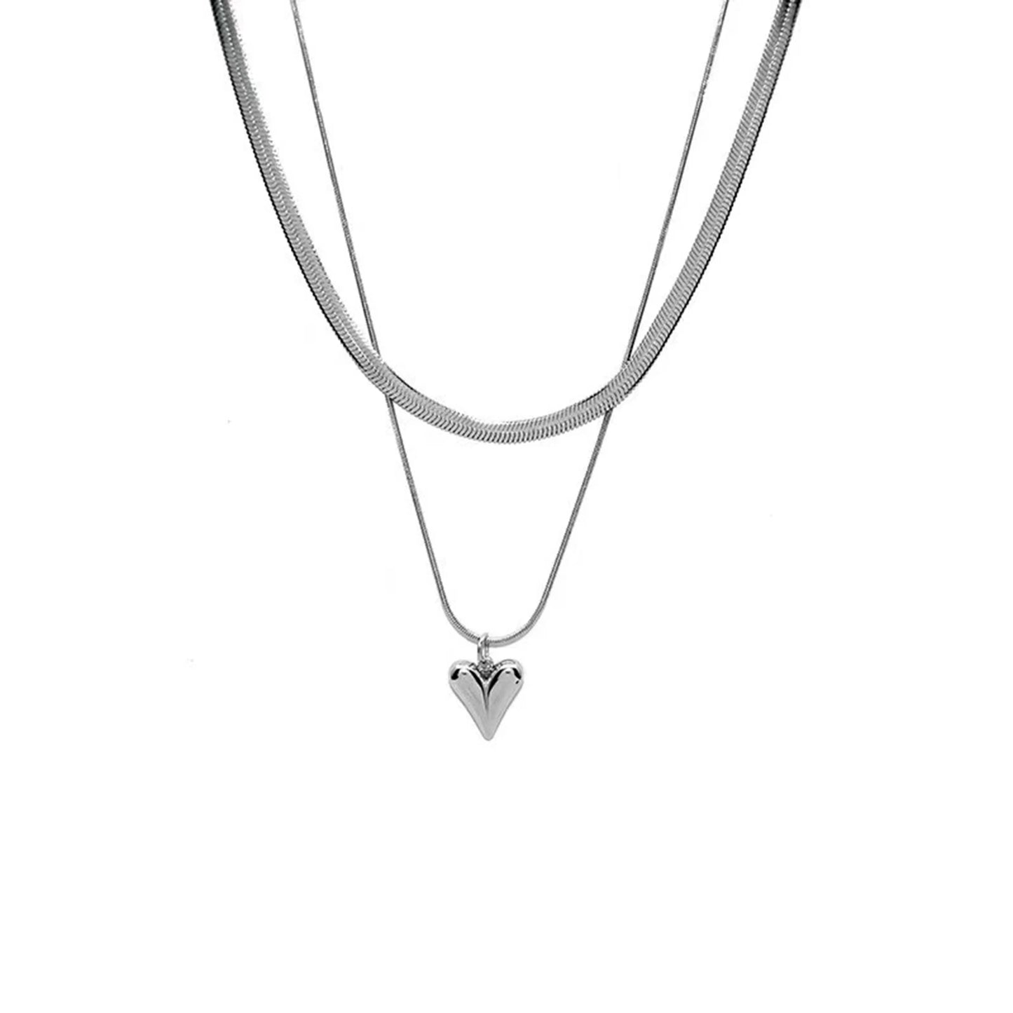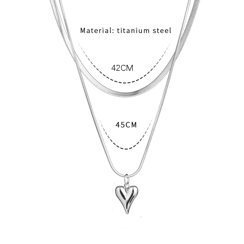 Seakissky Simple Stylish Double-layer Stainless Steel Necklace Charming Love Heart Pendant Hot Selling High-quality Women Gifts