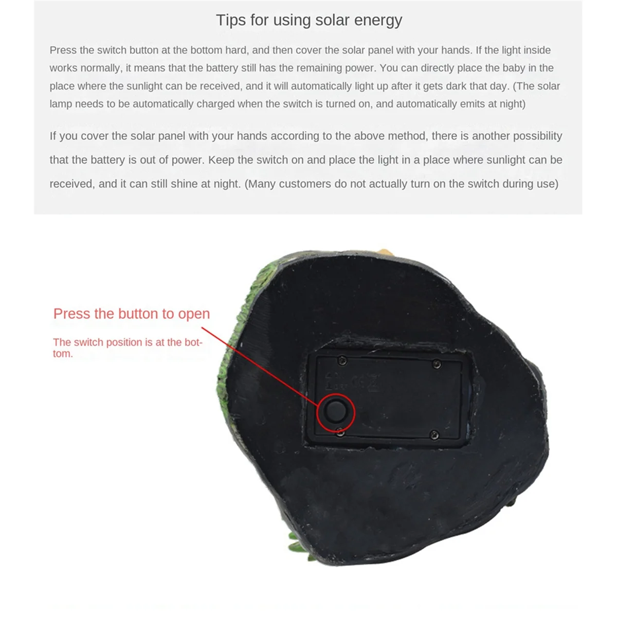 [Perfect Gifts]The garden decor figurines is one of the best garden gifts for Christmas, Thanksgiving, Birthdays, Mother's and Housewarming.It can brighten up someone's cold evening, making it an outdoor conversation starter. [Heavy Duty Resin Decor]The statue is made of long- lasting resin, a material known to resist against breakage and most harsh weather conditions.Hand- painted and finished with a UV resistant coating. [Energy Efficiency] solar- powered.The solar garden lights automatically absorb and store energy during the daytime and on as the sun goes down.Powered a solar panel. And the solar- powered lights can brighten up for long hours especially when fully charged. [Widely Use& Multipurpose]Perfect as garden decor, suitable for the backyard, garden, trees, flowers, flowerbed, fence, walkway. Plant this charming Solar Statue anywhere, and enjoy color and soft light night.A wonderful addition to lawn and home decor. [Easy to Use] Simply Turn on the power before use. The solar panel will charge 5- 8 hours during the and light up automatically at night for 8- 10 hours.- friendly and hassle- free. Colour:As Shown Material:Resin Size:14x14x22cm Package Contents: 1 x Solar Garden light Only the above package content, other products are not included. Note: Light reflection and different displays may cause the color of the item in the picture a little different from the real thing. The measurement allowed error is +/- 1-3cm.