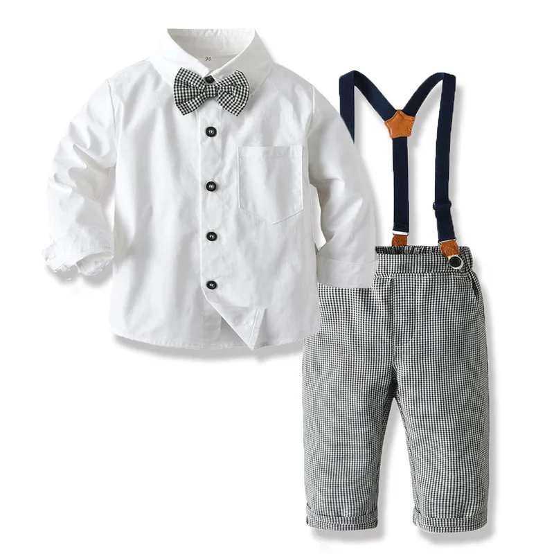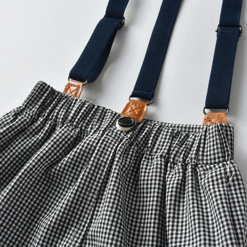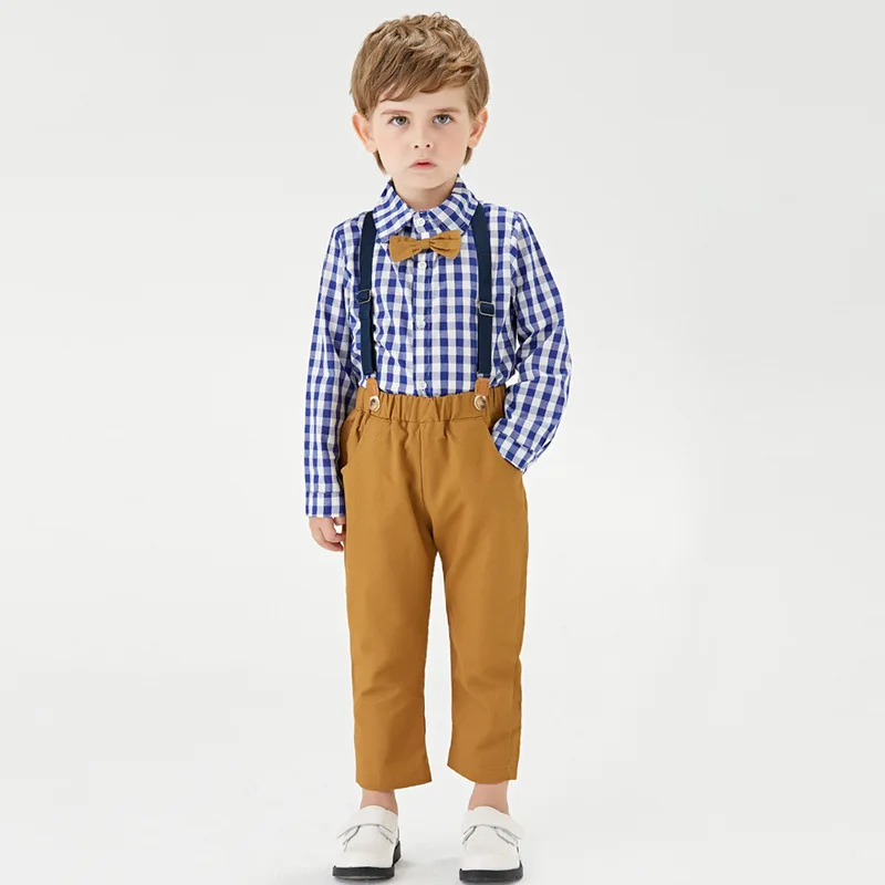 Toddler kids Suit Handsome Long-sleeved Shirt Suspender Trousers Two-piece School Uniform for Boys 0-5 Y Kids Clothes Set