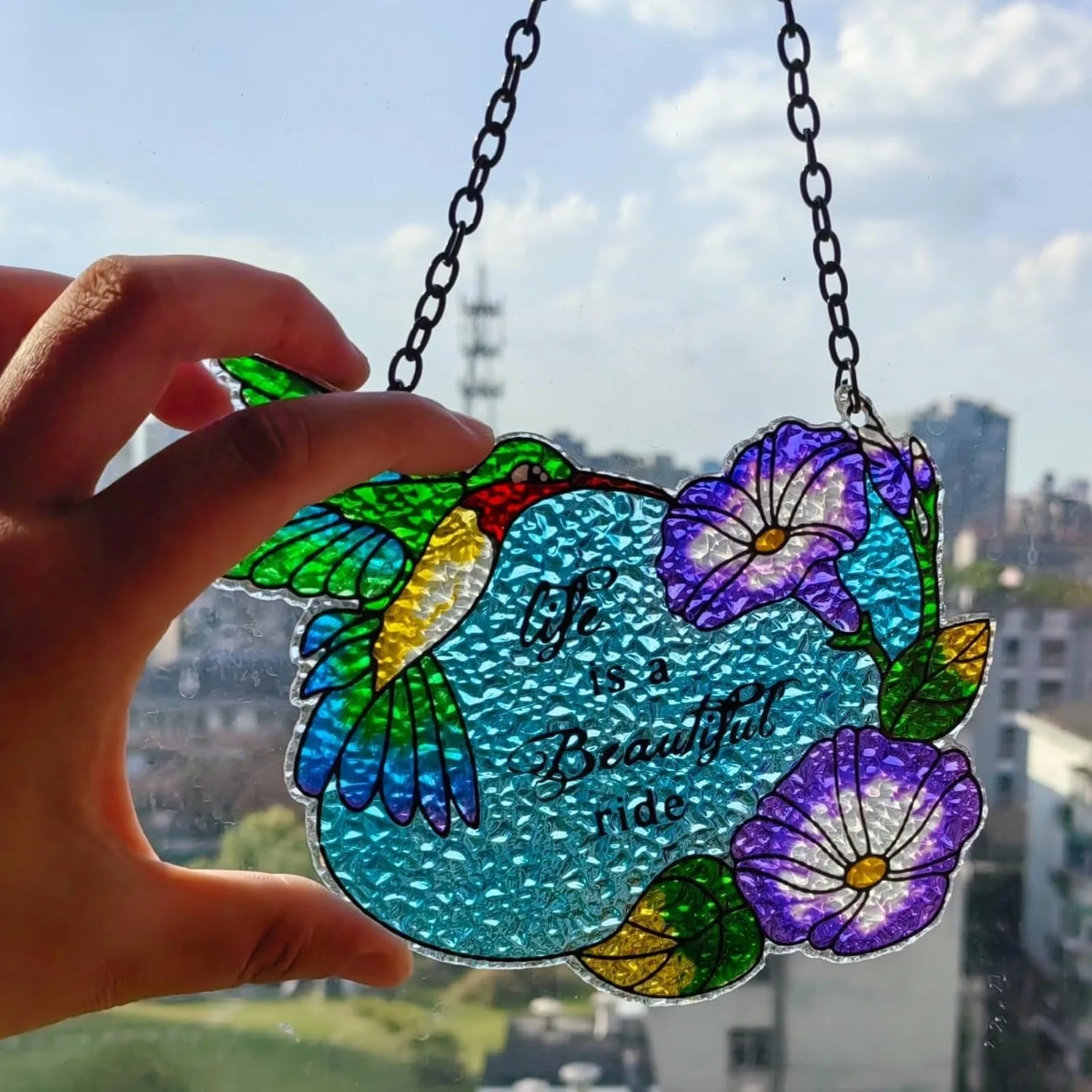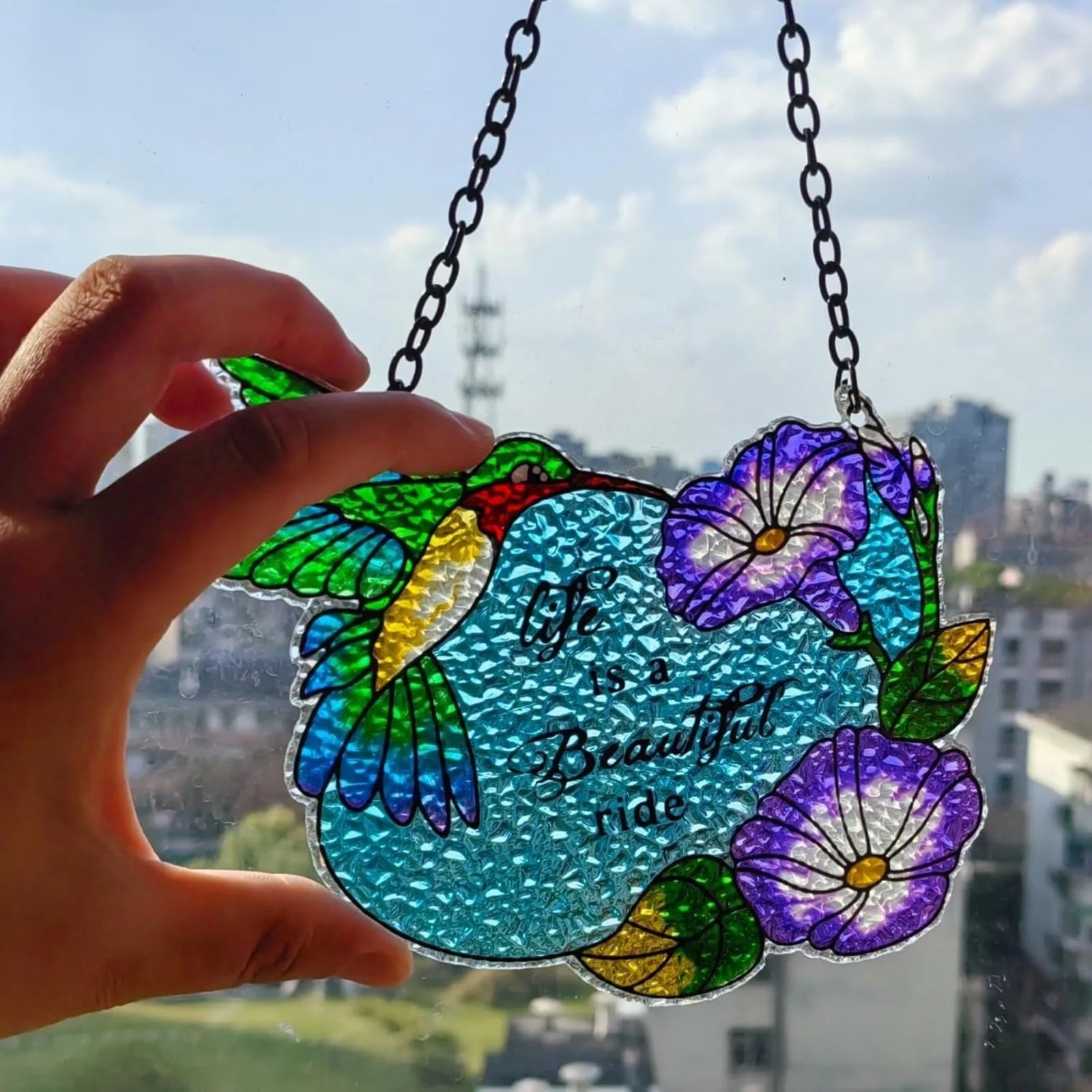 Stained Glass Hummingbird Suncatcher - Window Hanging Art for Home Wall Decor, Bird Gifts for Grandma, Mom, and Bird Lovers