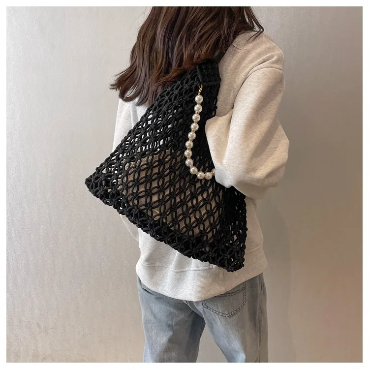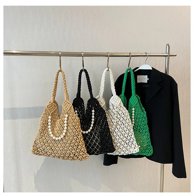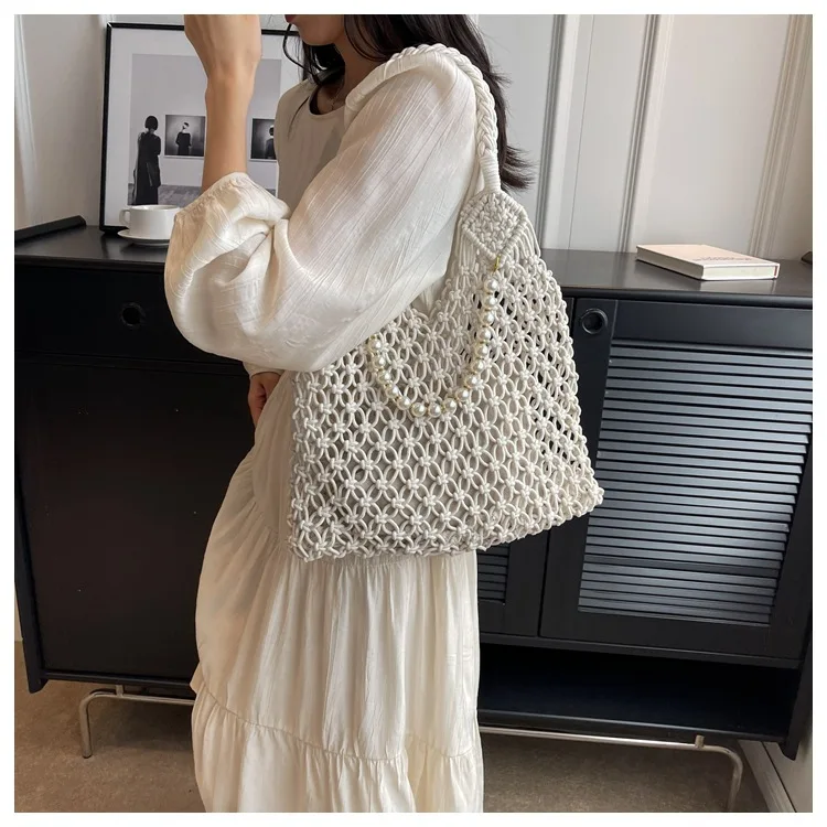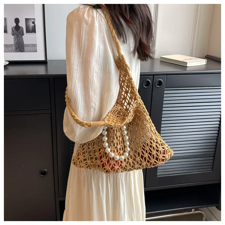 Straw Hobo Beach Bag Designer Luxury Bags Woman 2025 Pearl Purse Woven Tote Handbag Summer Vintage Foldable Handbag for Travel