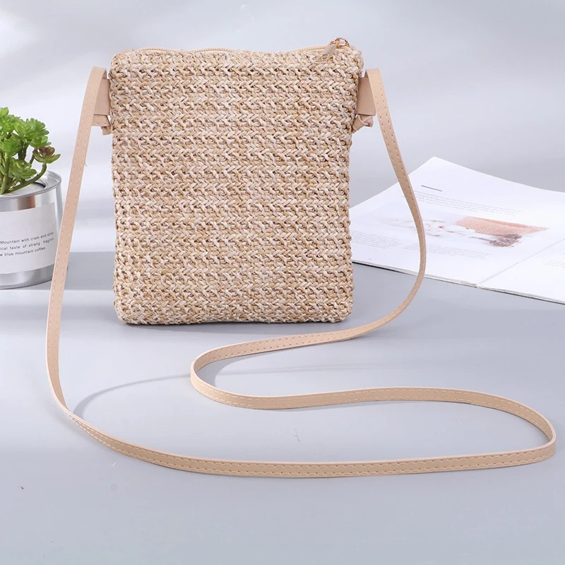 Straw Plait Small Square Bags One Shoulder Slanted Cross Bag Handbag Coin Purses Casual Holiday Beach Bag