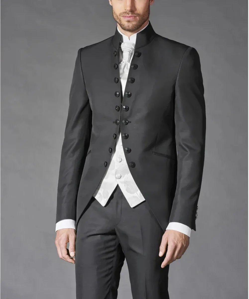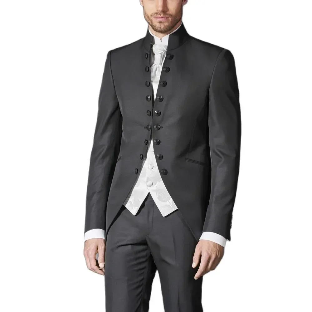 Suits For Men Steampunk Black Three Piece Formal Occasion Regular Length Costume Blazer Jacket Pants Vest Elegant Slim Fit 2023