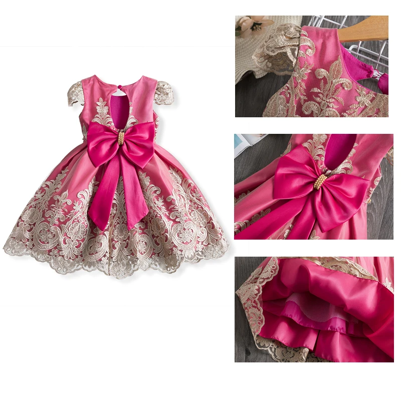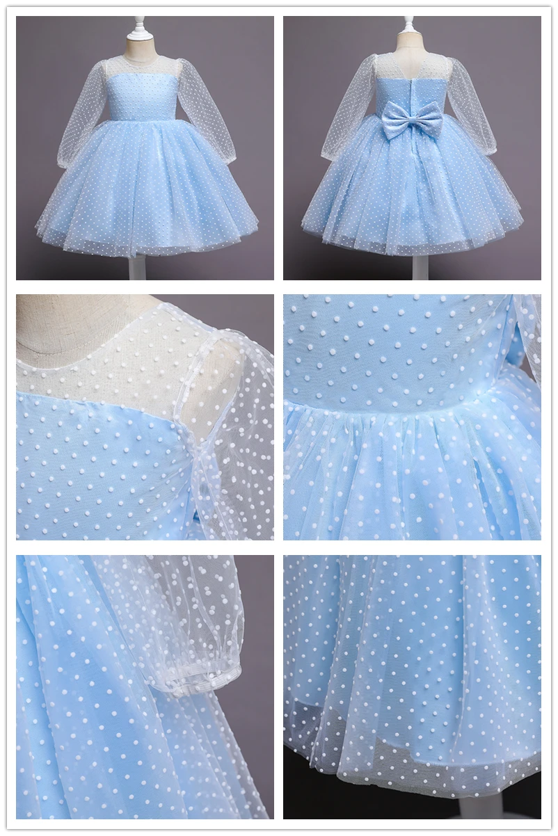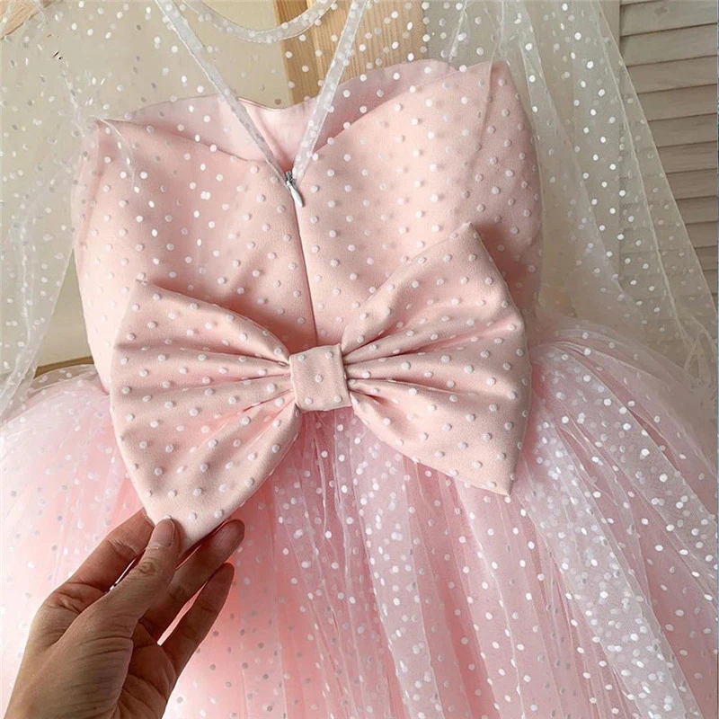 Summer Dress for Kid Girl Polka Dots Pink Mesh Dresses Flower Girls Wedding Tutu Fluffy Vestidos Princess Birthday Party Gown