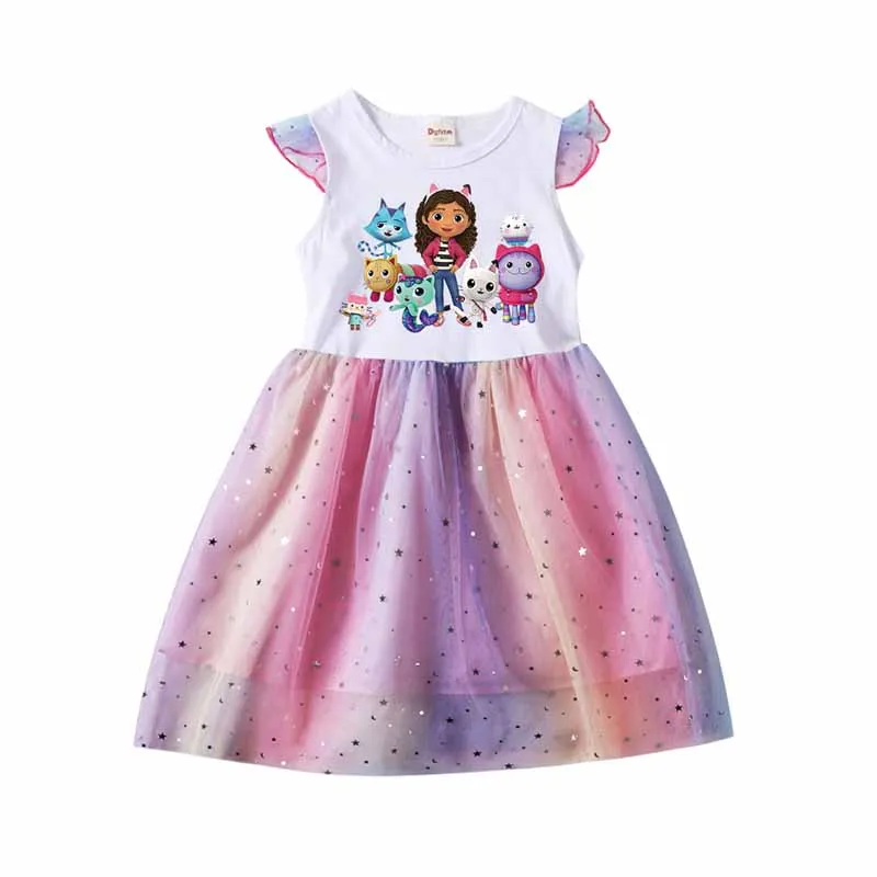 Summer Gabby Doll House Costume For Baby Girl Lace TUTU Dress Fashion Kid Up Cartoon Print Frock Child Tunic Clothes