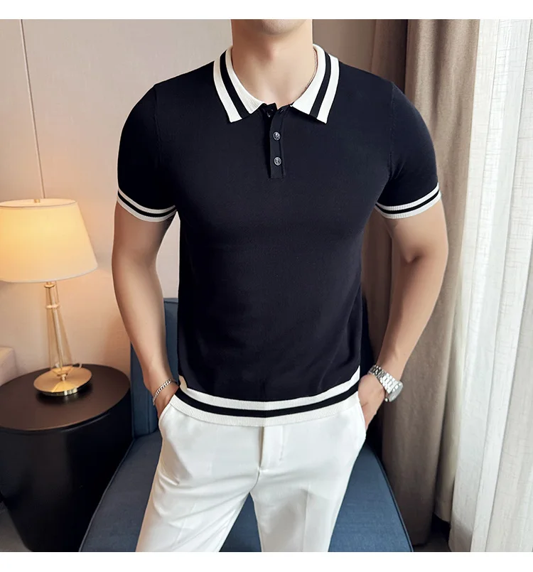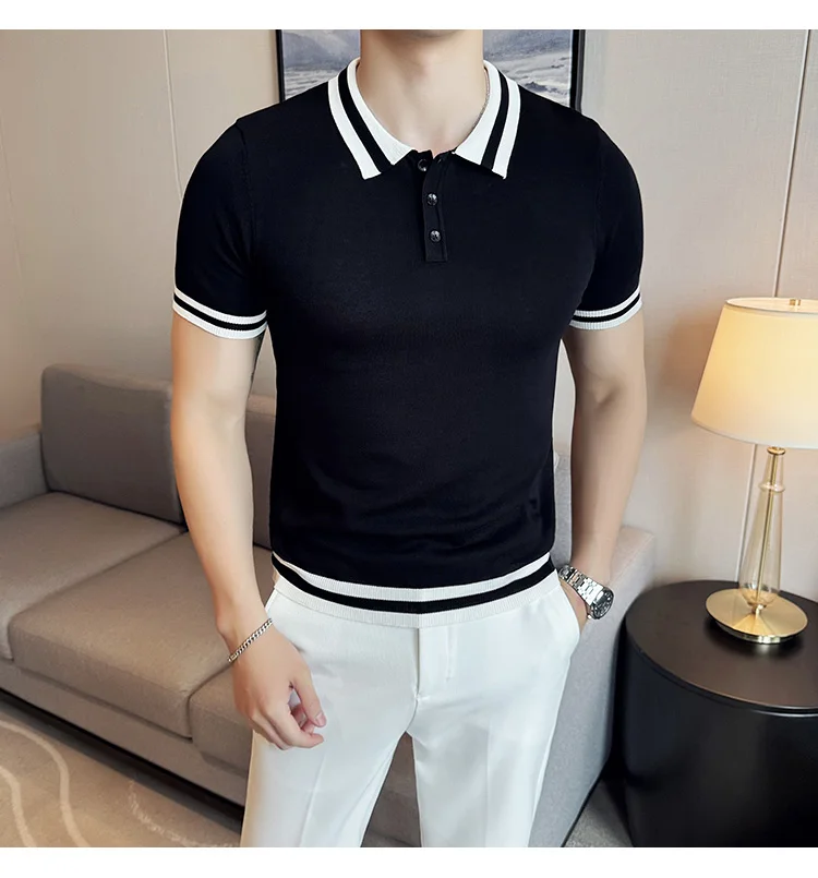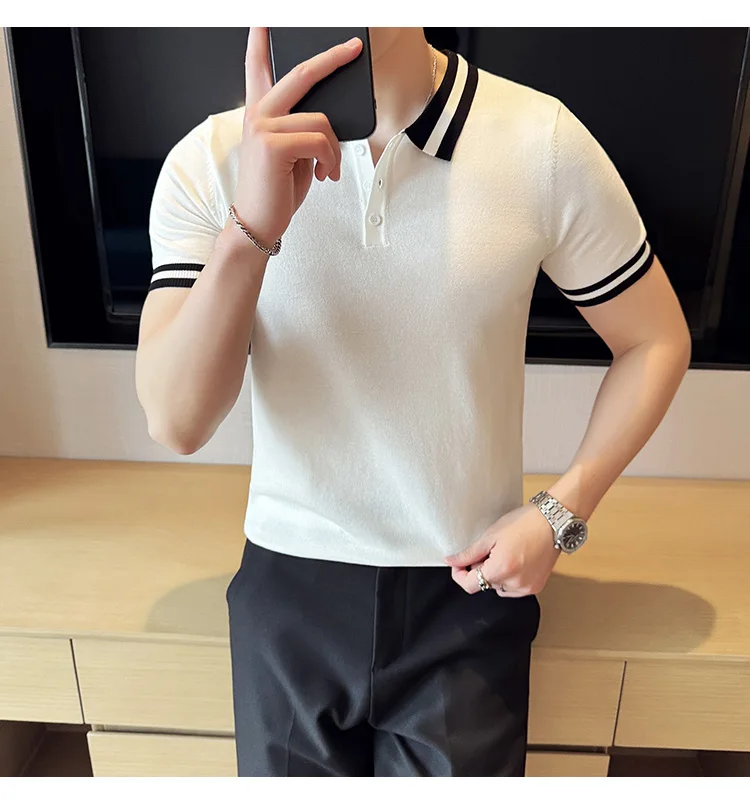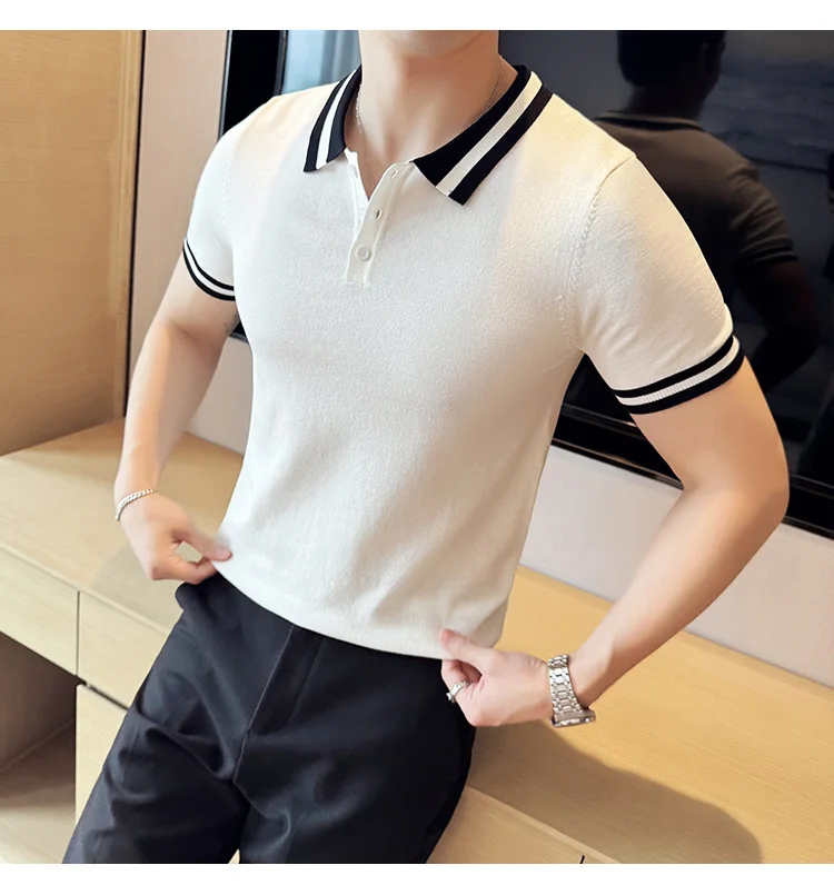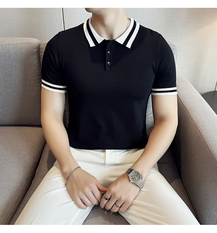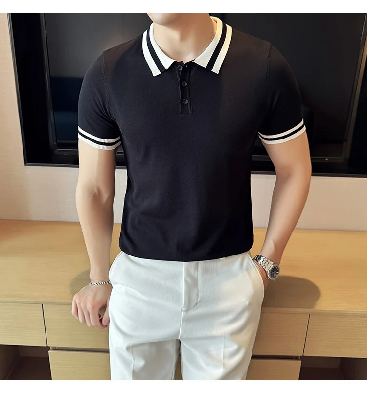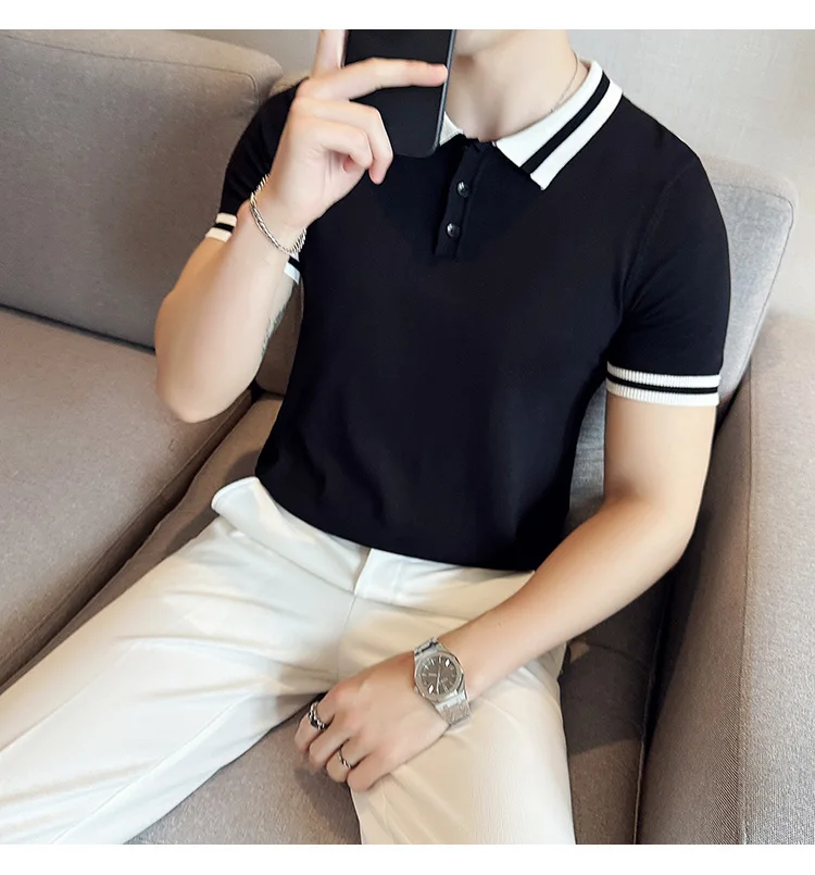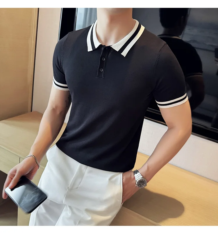 Summer Knitted Polo Shirt Men Short Sleeve Casual Business T-shirts Fashion Lapel Knitted Pullover Office Social POLO T-shirt mon !!!