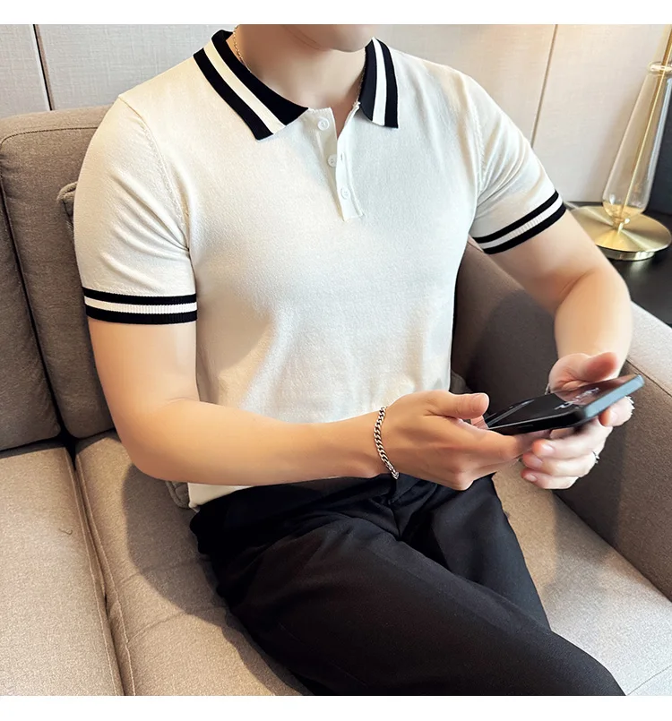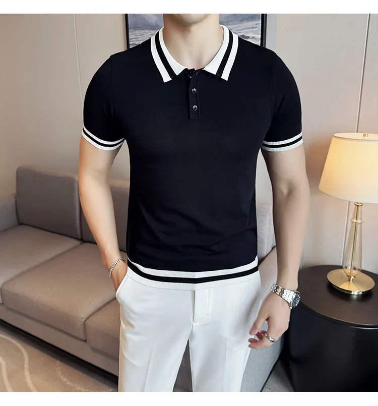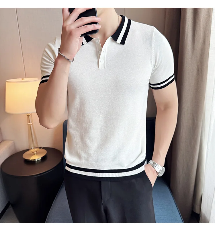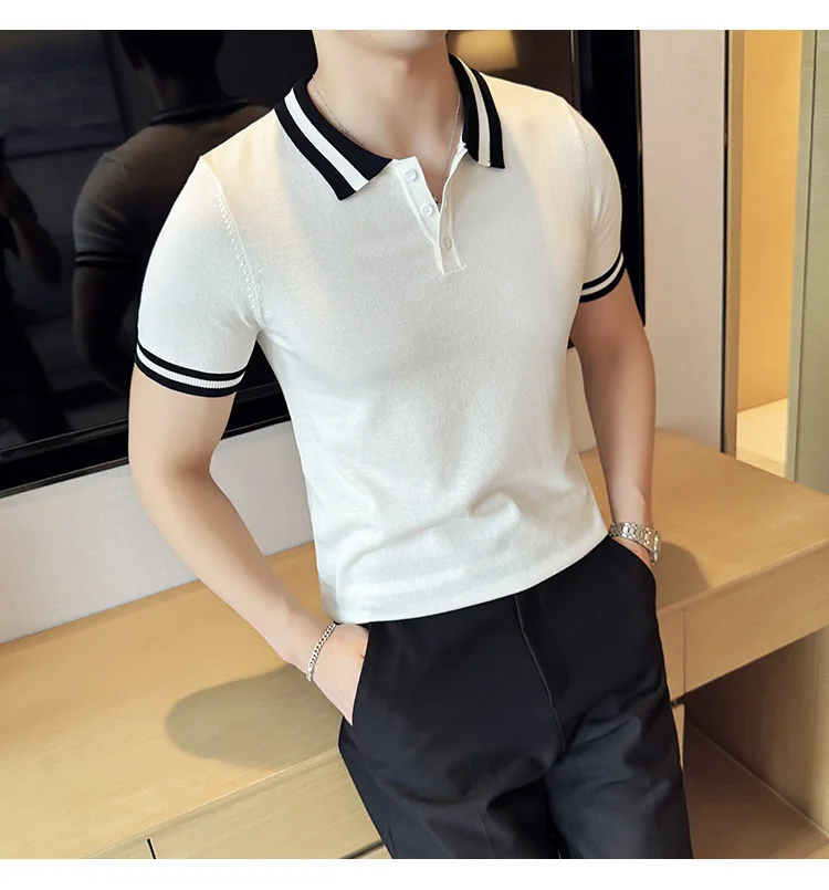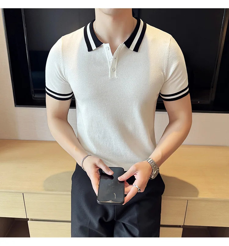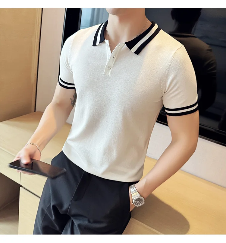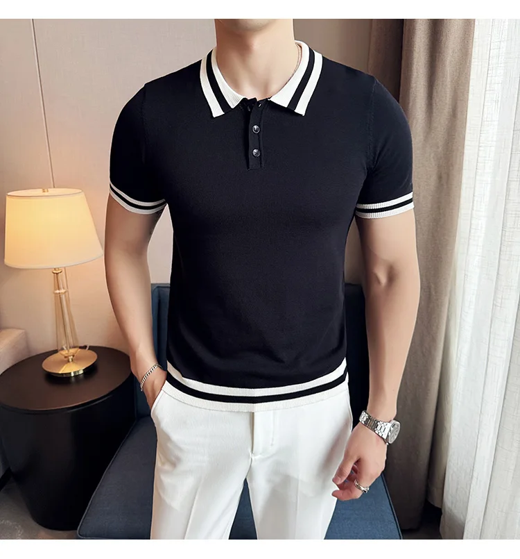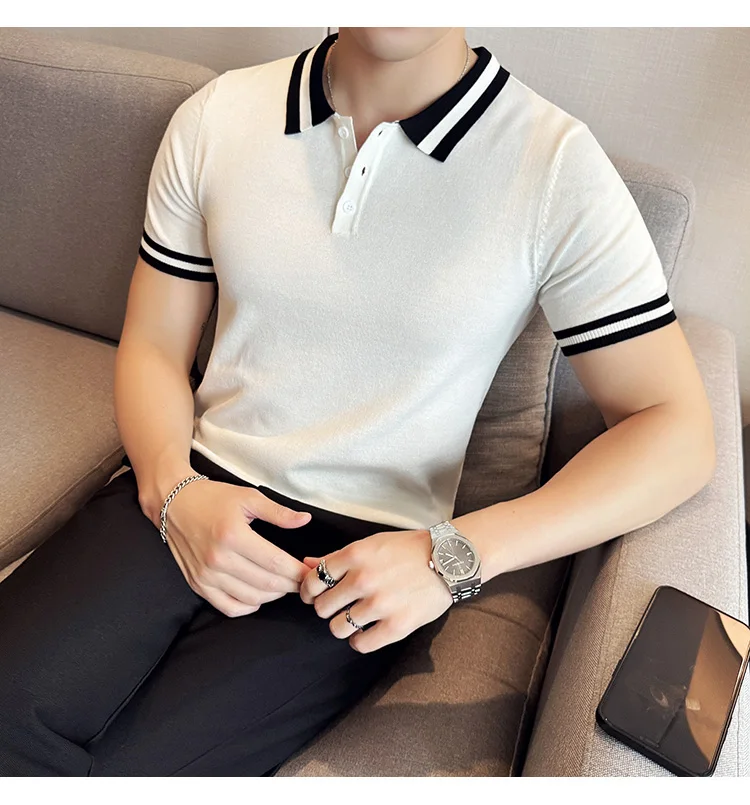 Summer Knitted Polo Shirt Men Short Sleeve Casual Business T-shirts Fashion Lapel Knitted Pullover Office Social POLO T-shirt mon !!!