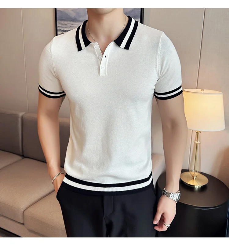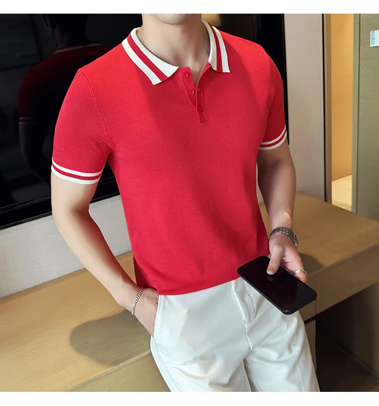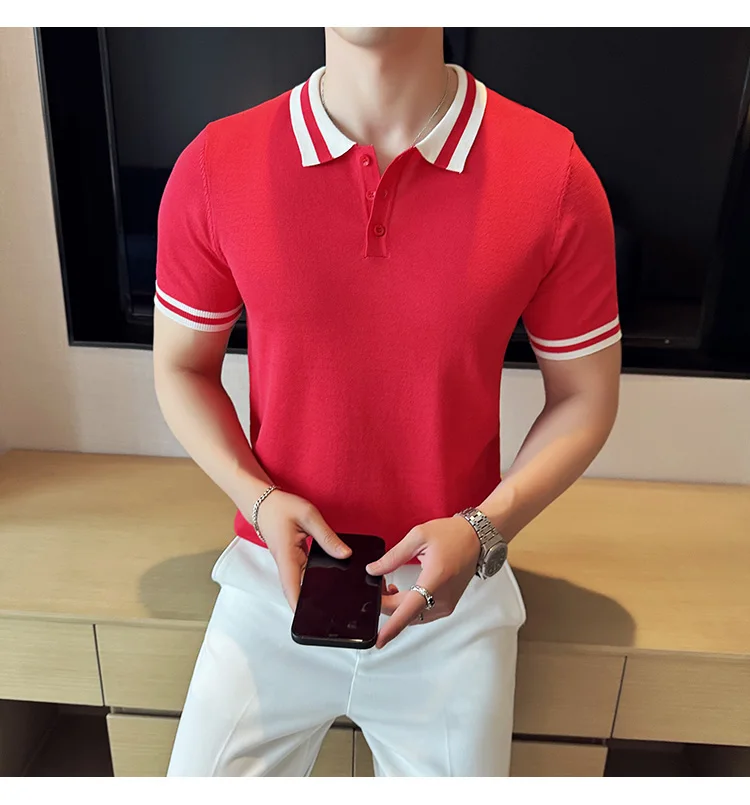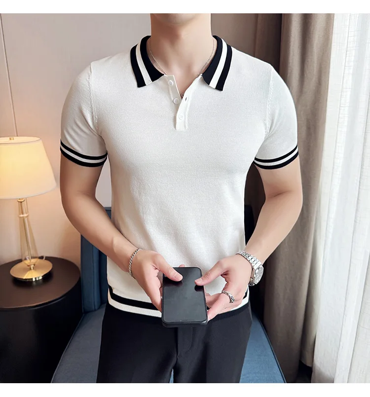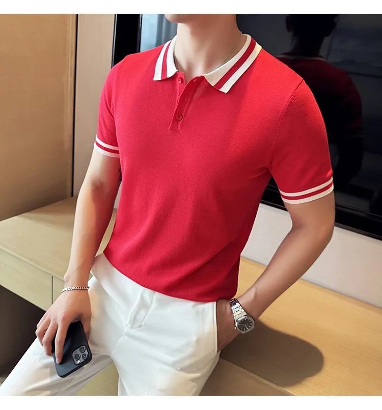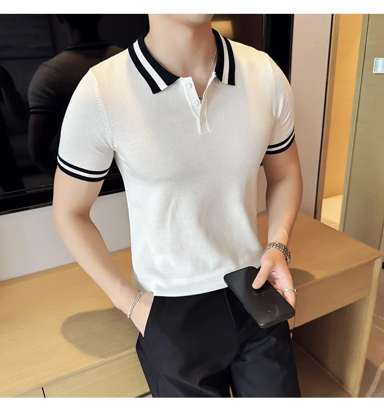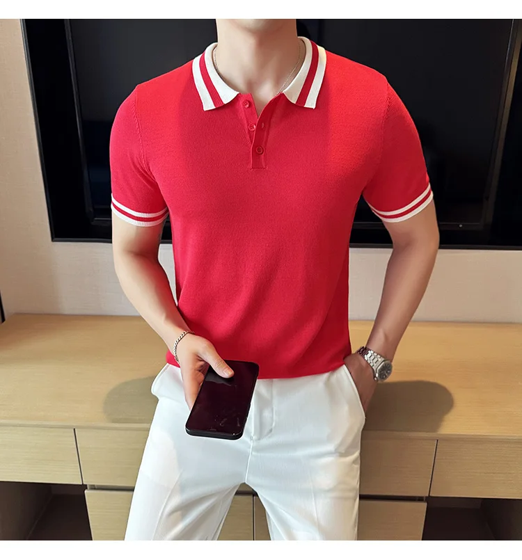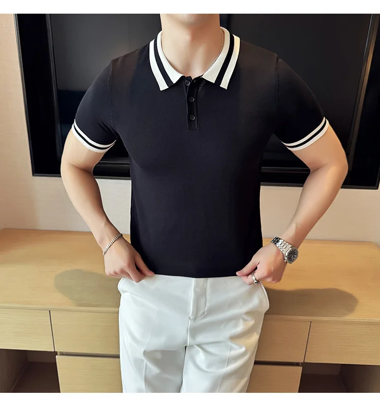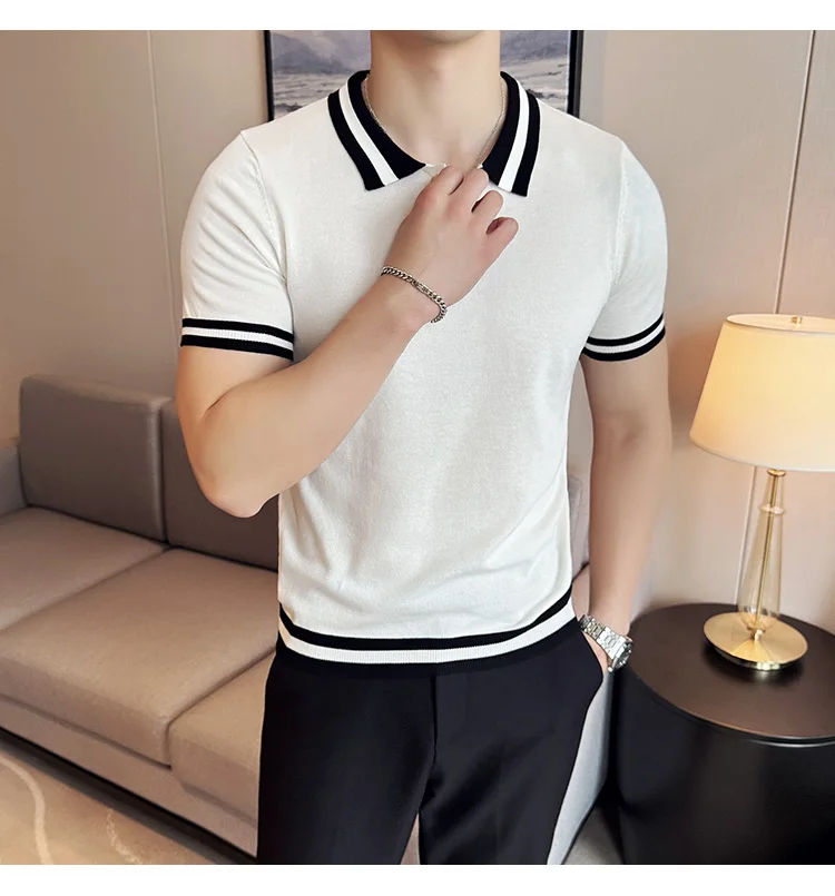 Summer Knitted Polo Shirt Men Short Sleeve Casual Business T-shirts Fashion Lapel Knitted Pullover Office Social POLO T-shirt mon !!!