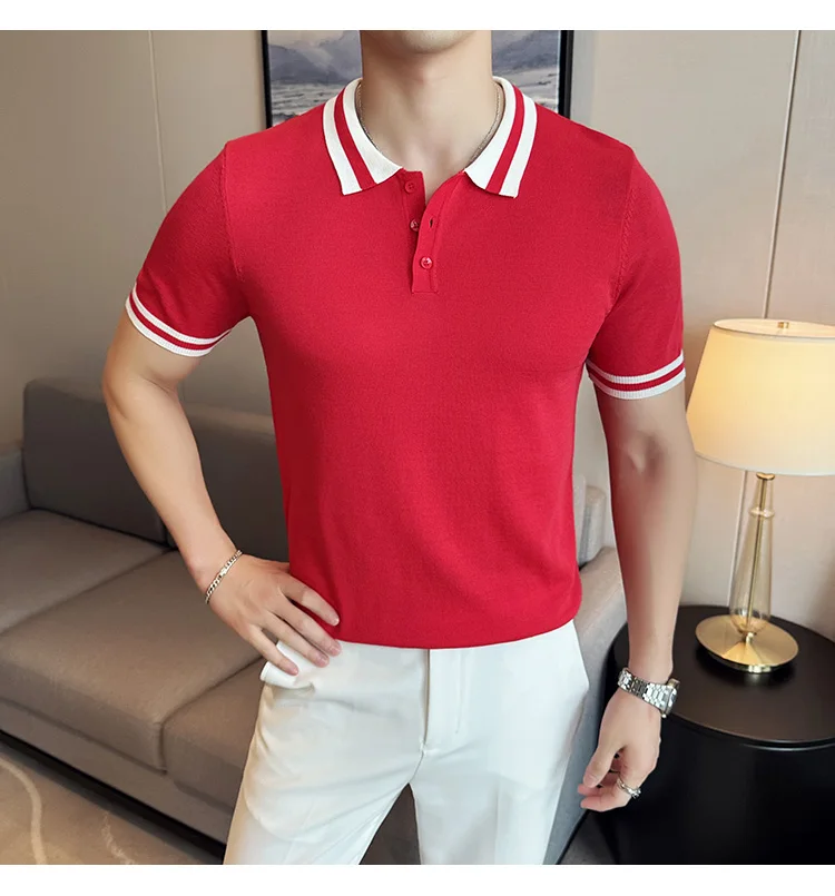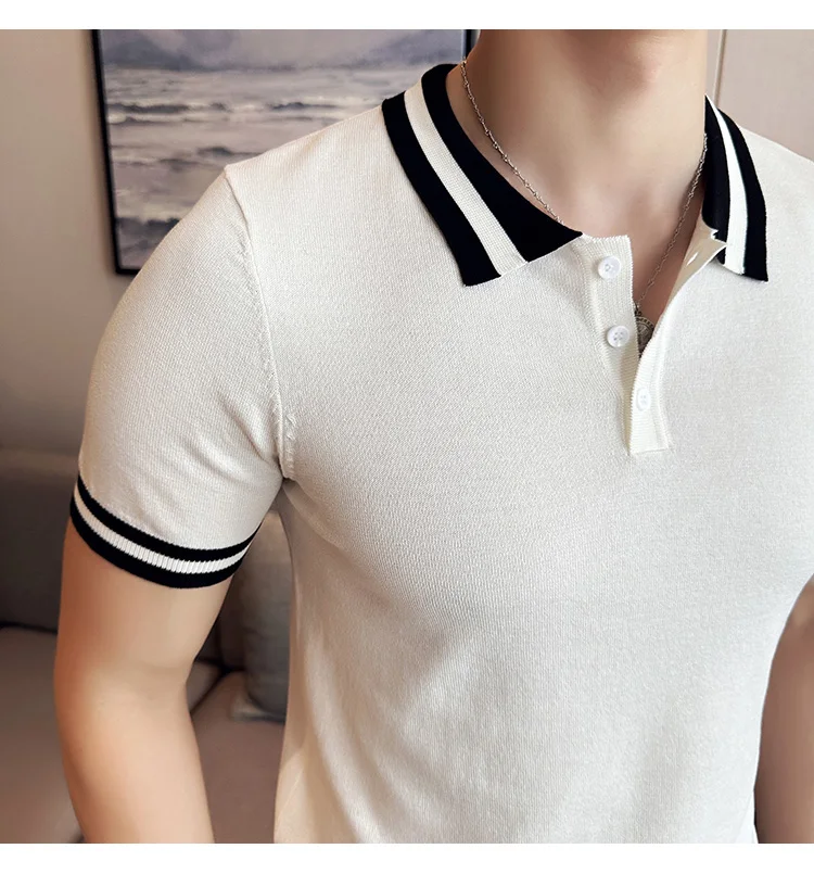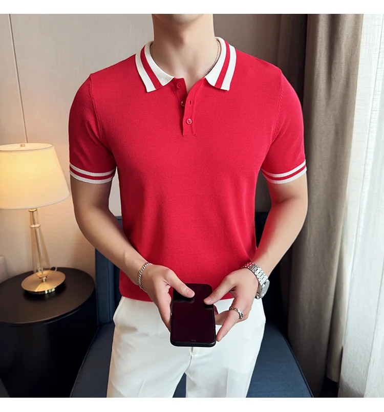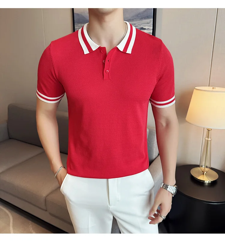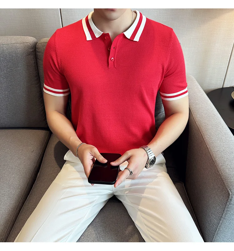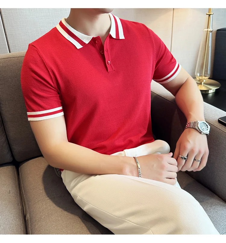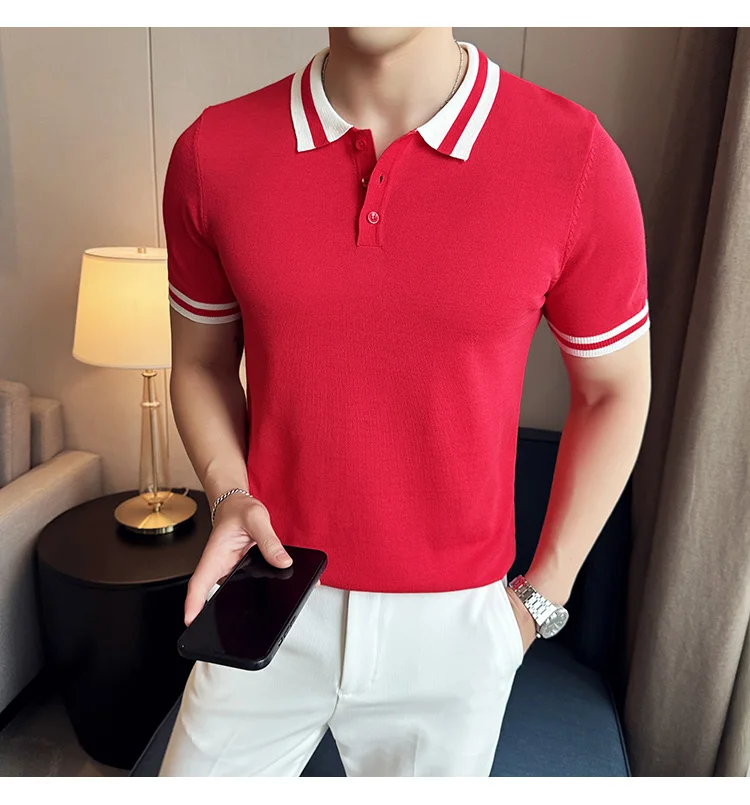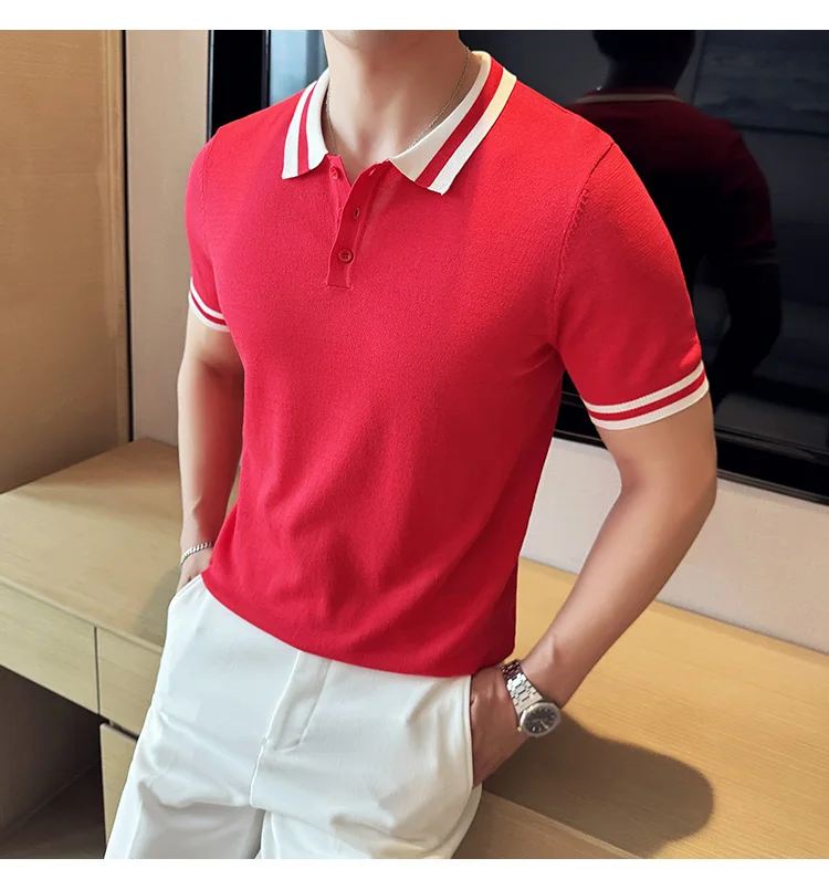 Summer Knitted Polo Shirt Men Short Sleeve Casual Business T-shirts Fashion Lapel Knitted Pullover Office Social POLO T-shirt mon !!!