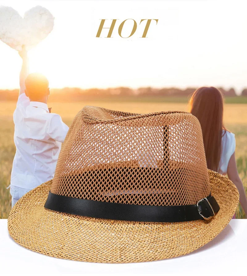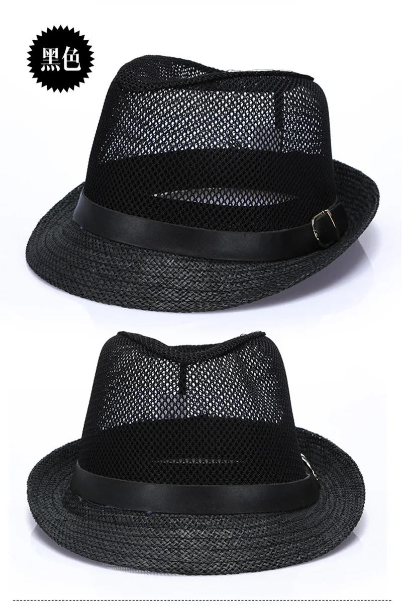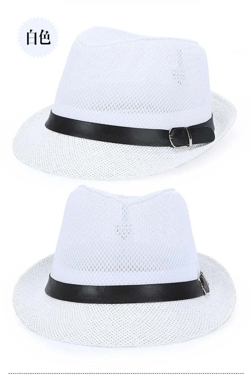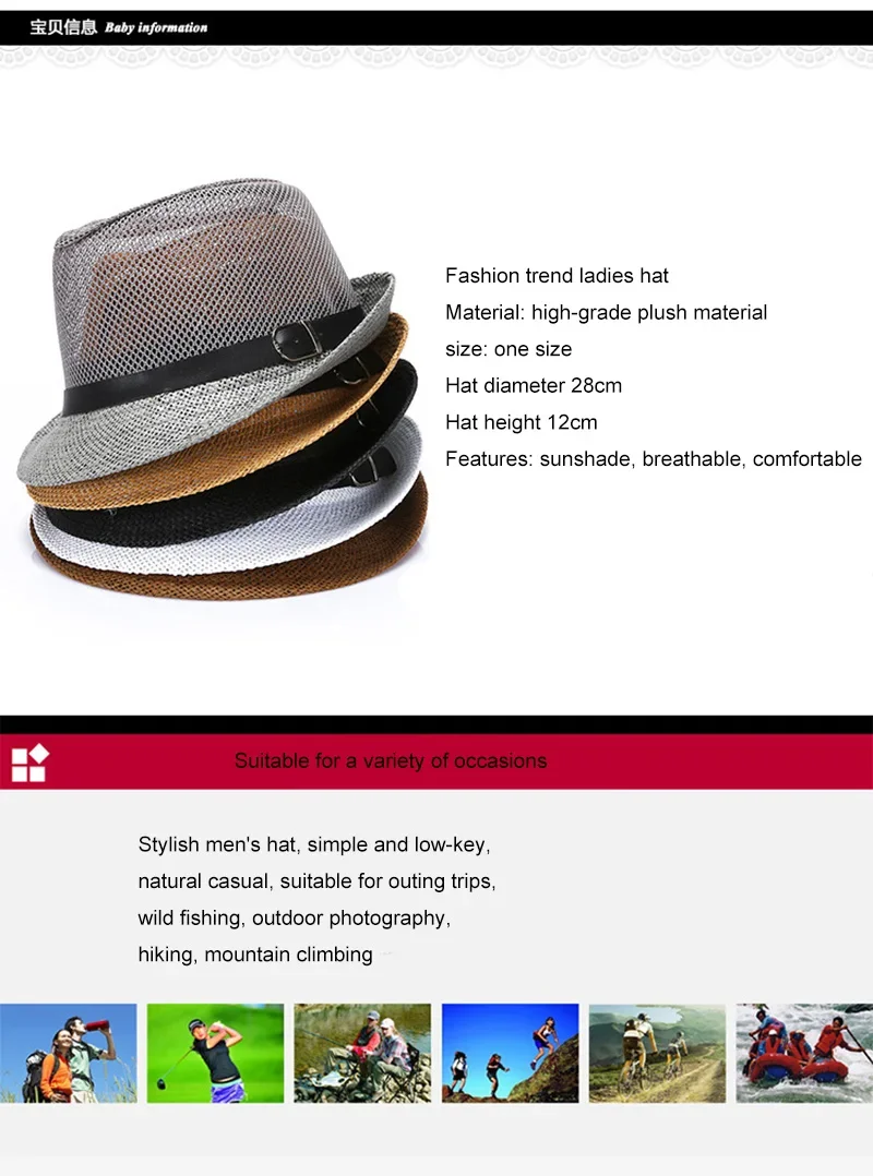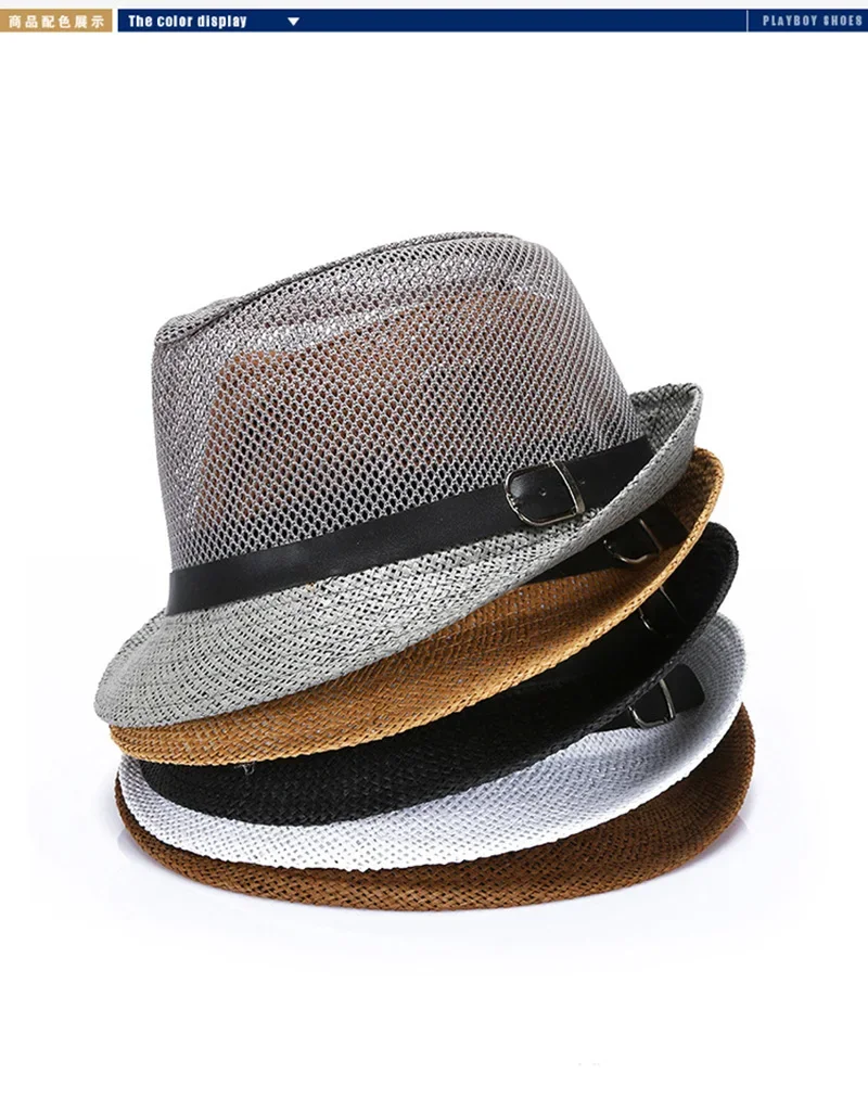 Summer linen breathable sunhat Jazz Hat small hat outdoor sun hat men's leather belt Hawkins Felt Cap Western cowboy hat F59