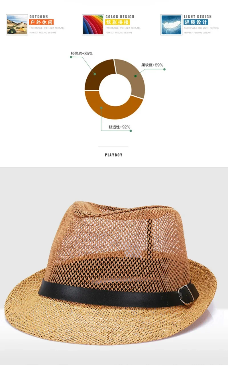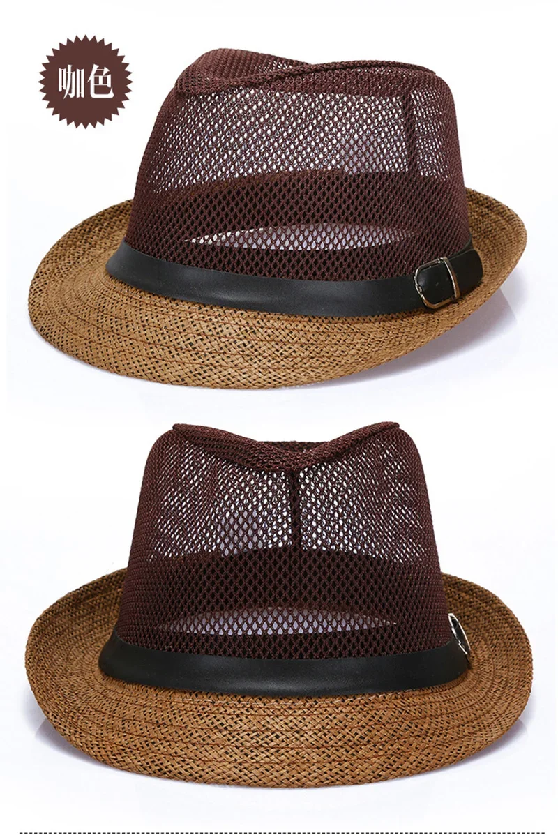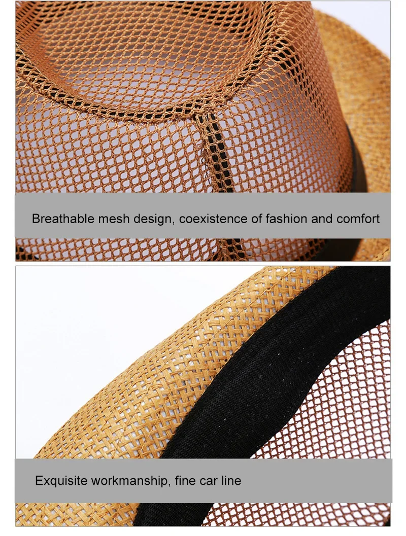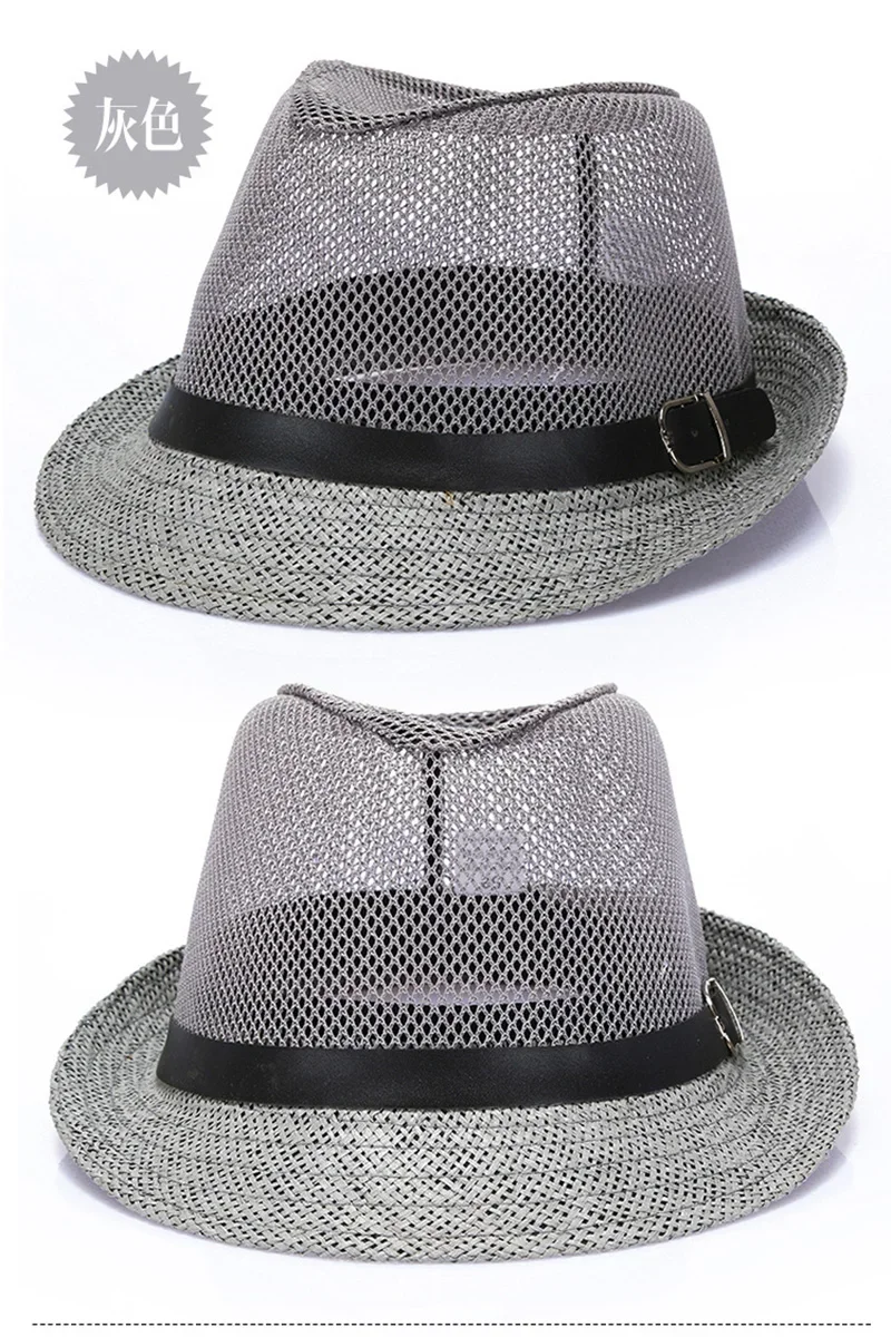 Summer linen breathable sunhat Jazz Hat small hat outdoor sun hat men's leather belt Hawkins Felt Cap Western cowboy hat F59