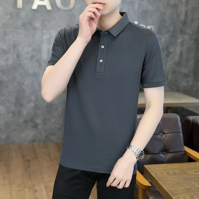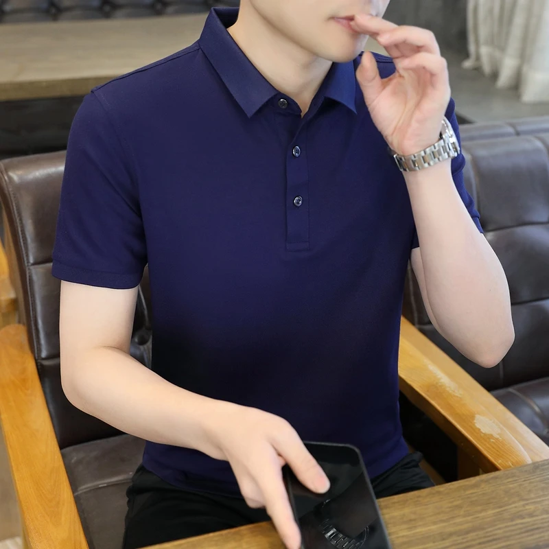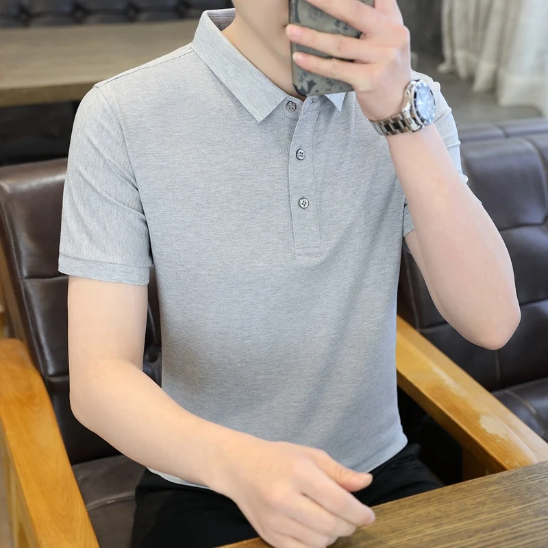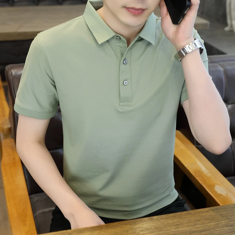 Summer Short Sleeve Men's Solid Button Pullover Turn-down Collar Vacation T-shirt Casual Formal Undershirt Preppy Style Tops