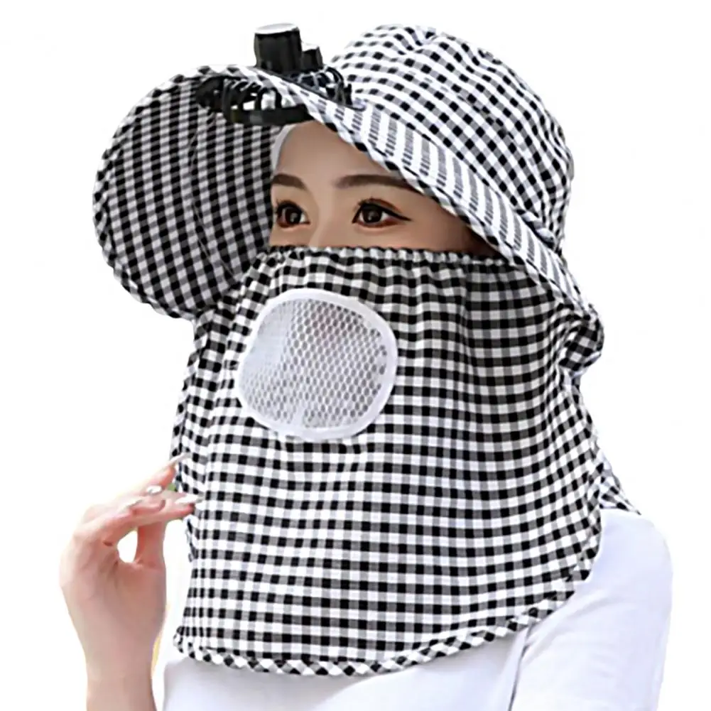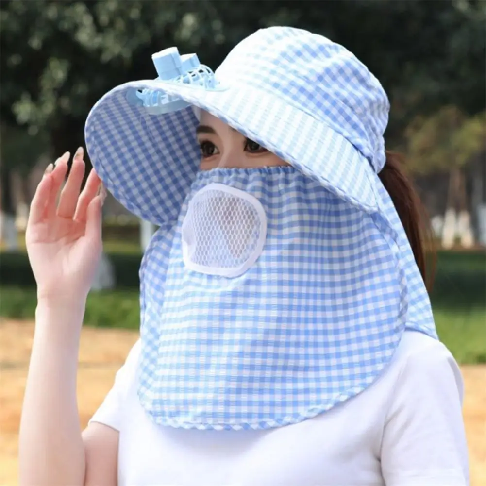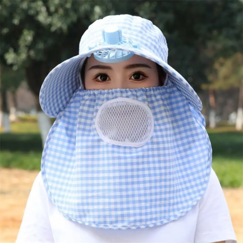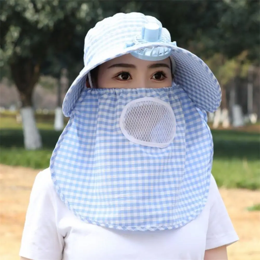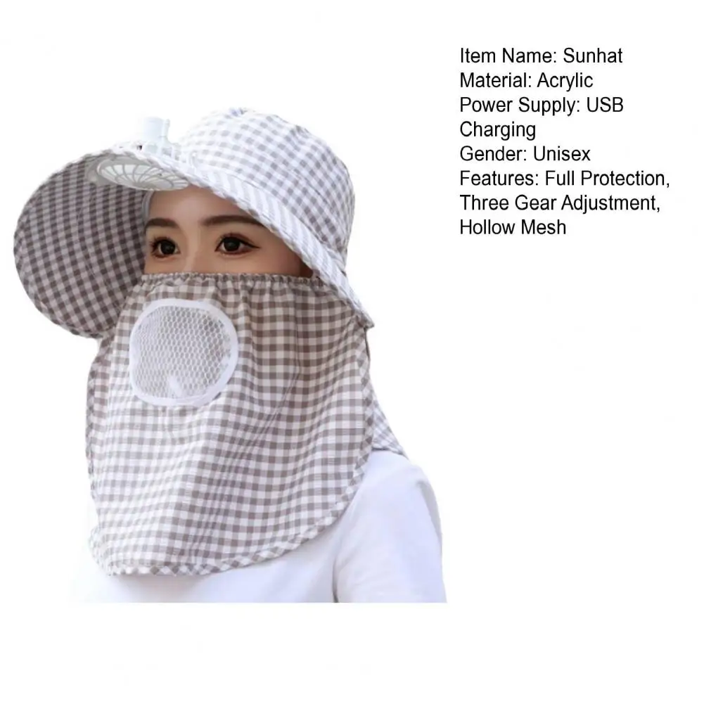 style="color:#3498db" Unisex Sun Hat with Face Front Cover Face Neck USB Three Gear Adjustment Electric Fan Hollow Mesh Anti-UV Foldable Sunscreen Breathable Gardening Fishing Outdoor Cap