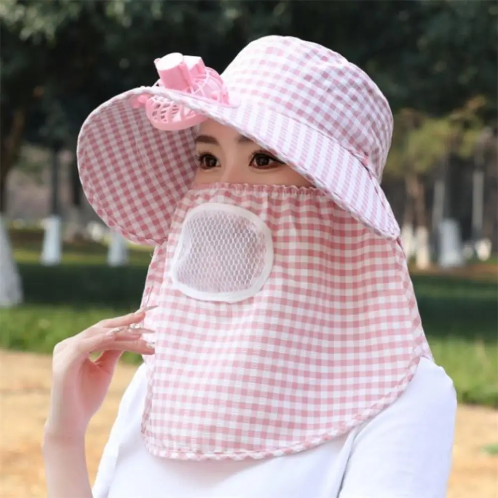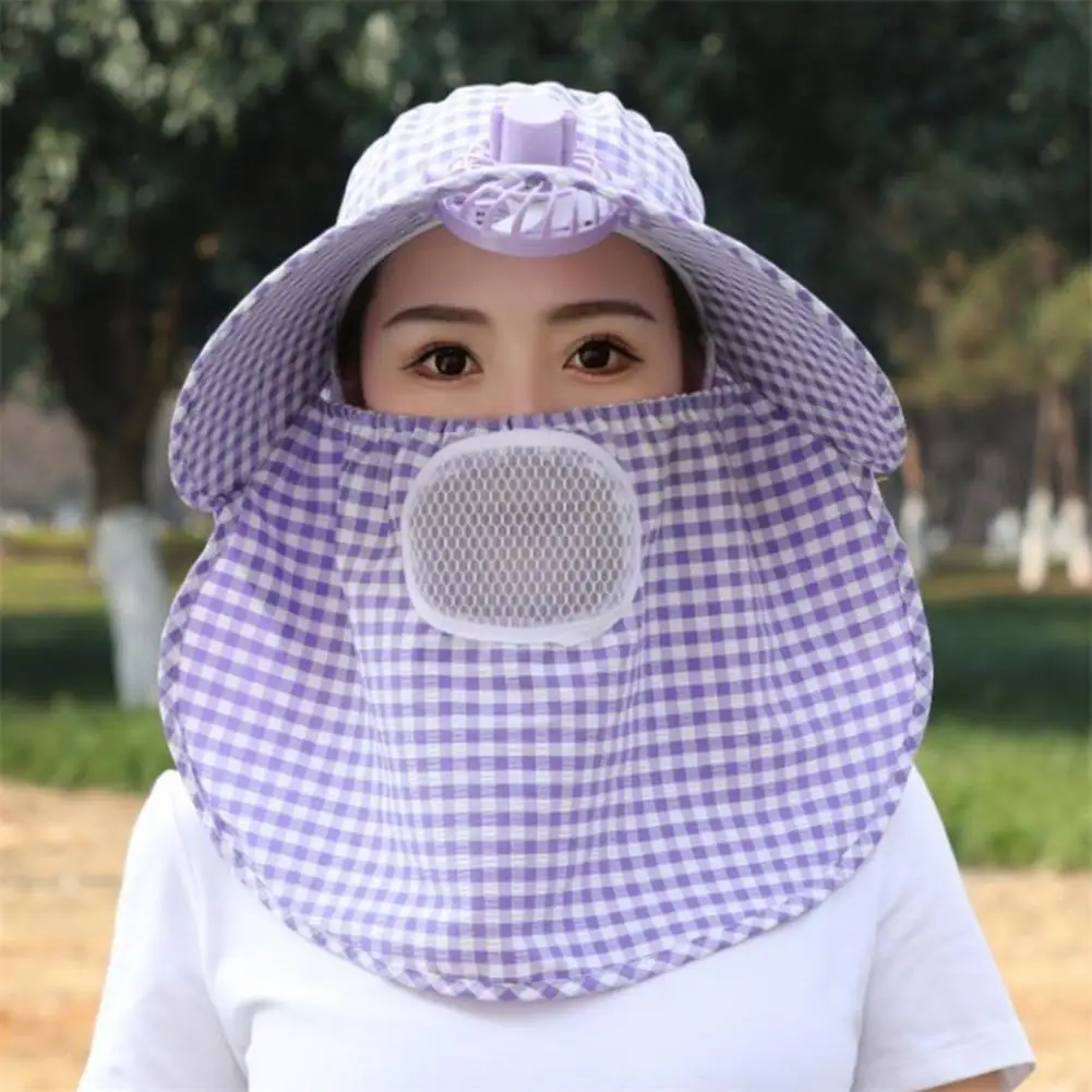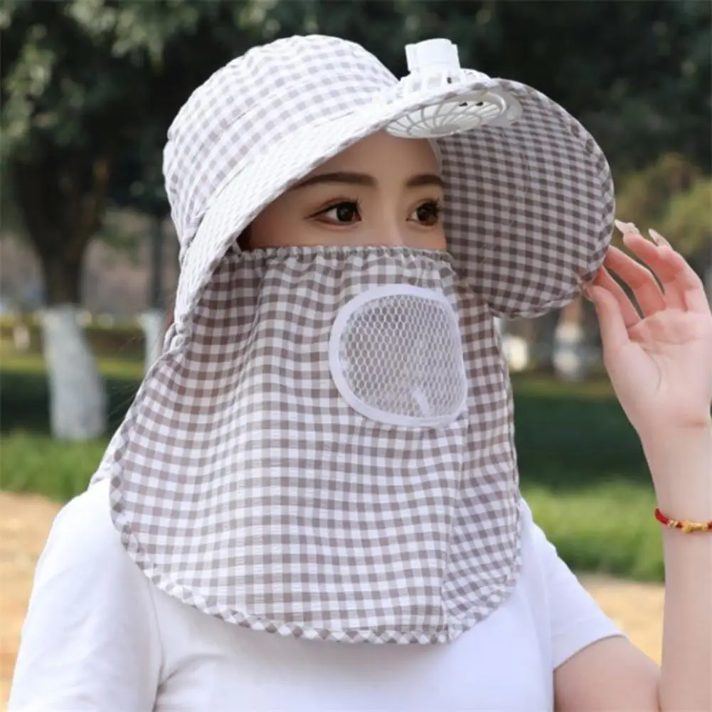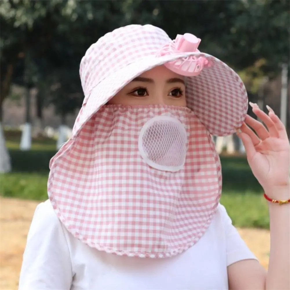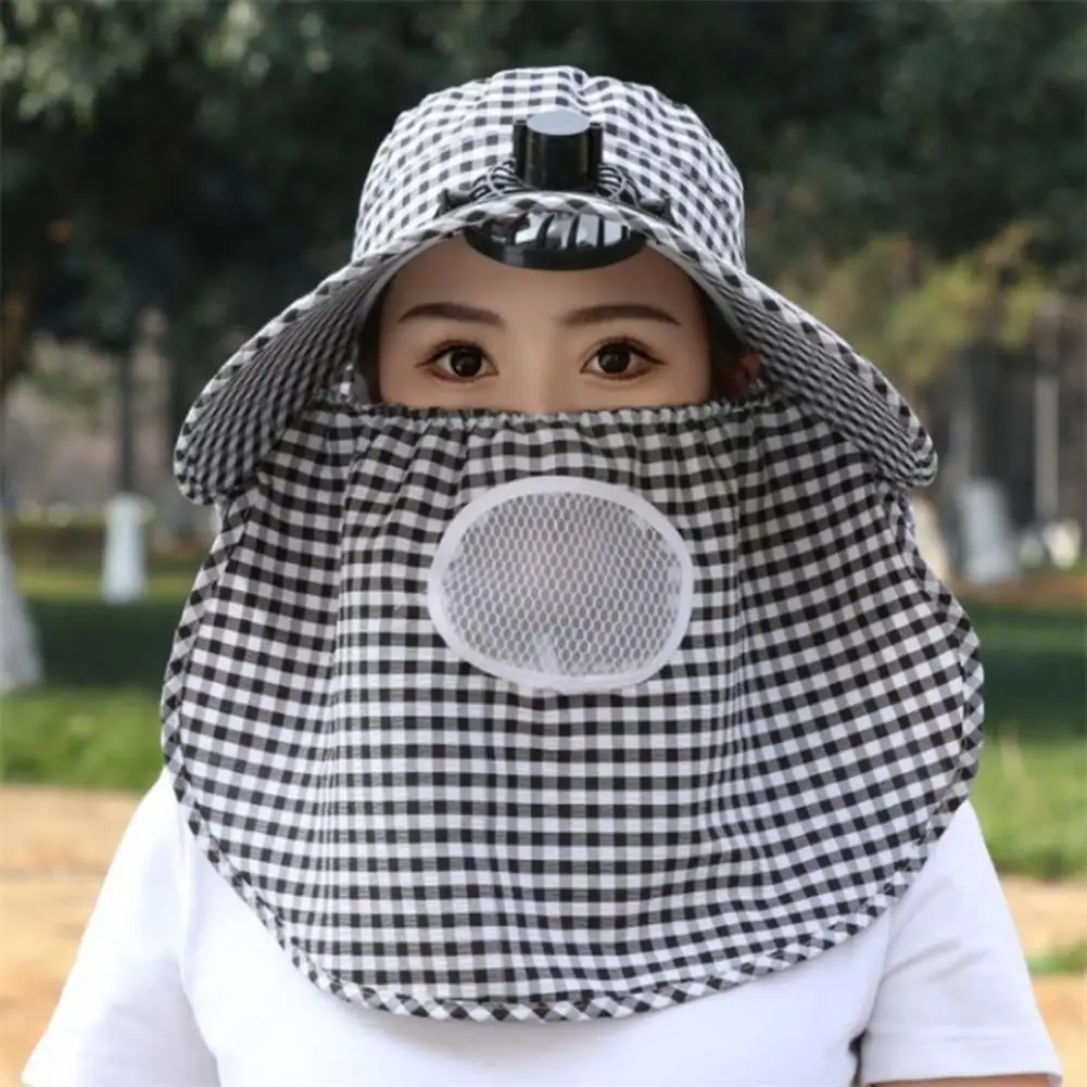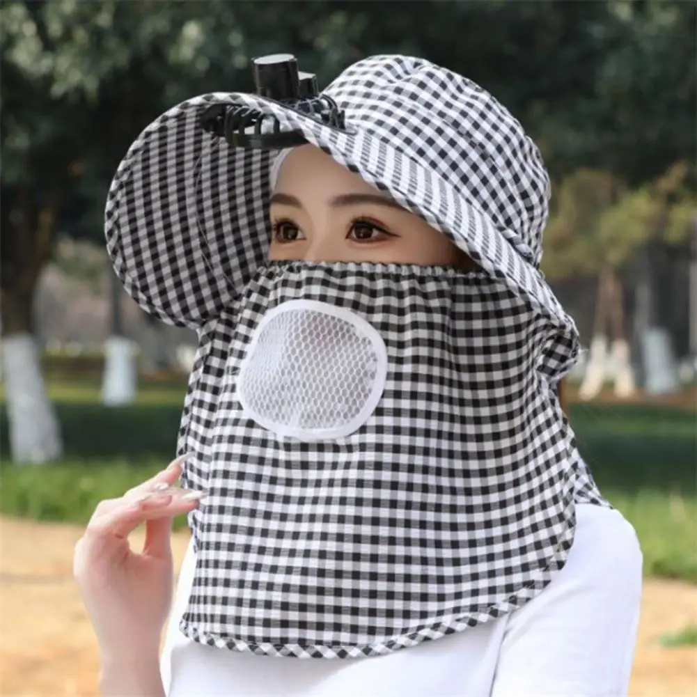 style="color:#3498db" Unisex Sun Hat with Face Front Cover Face Neck USB Three Gear Adjustment Electric Fan Hollow Mesh Anti-UV Foldable Sunscreen Breathable Gardening Fishing Outdoor Cap