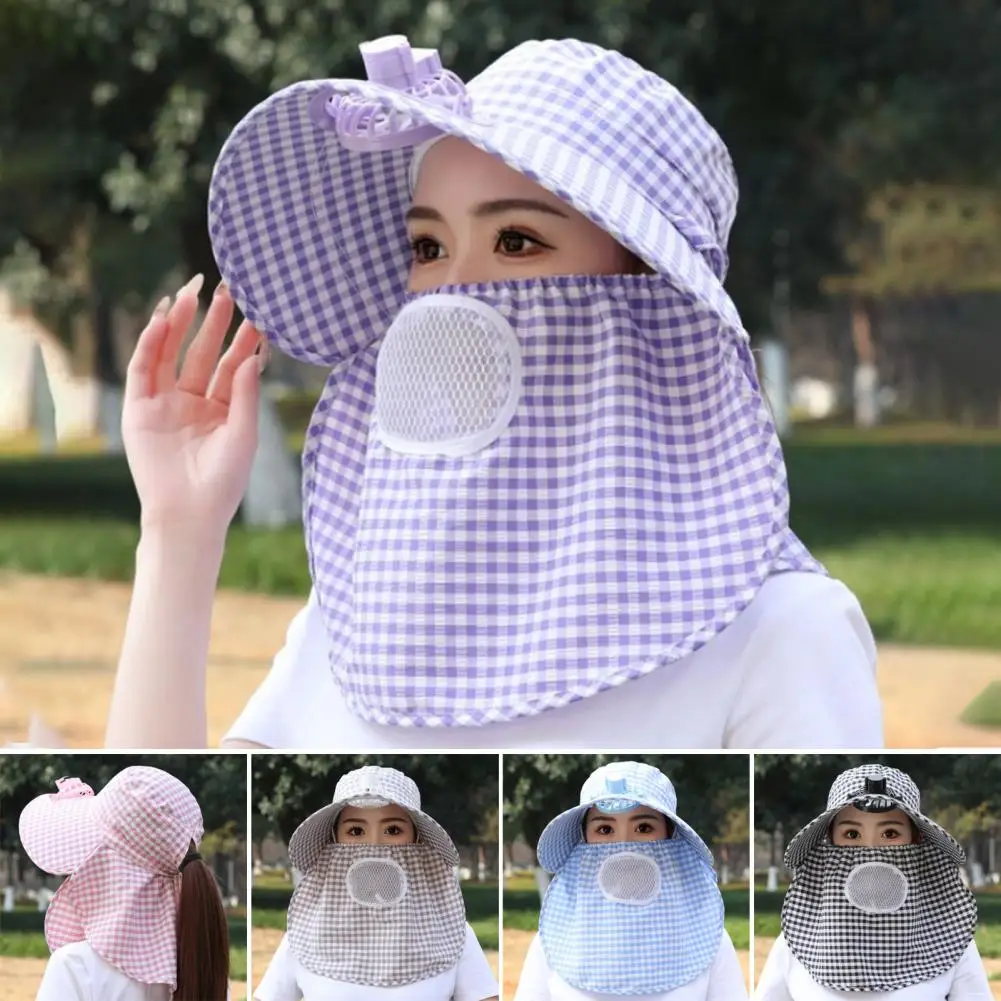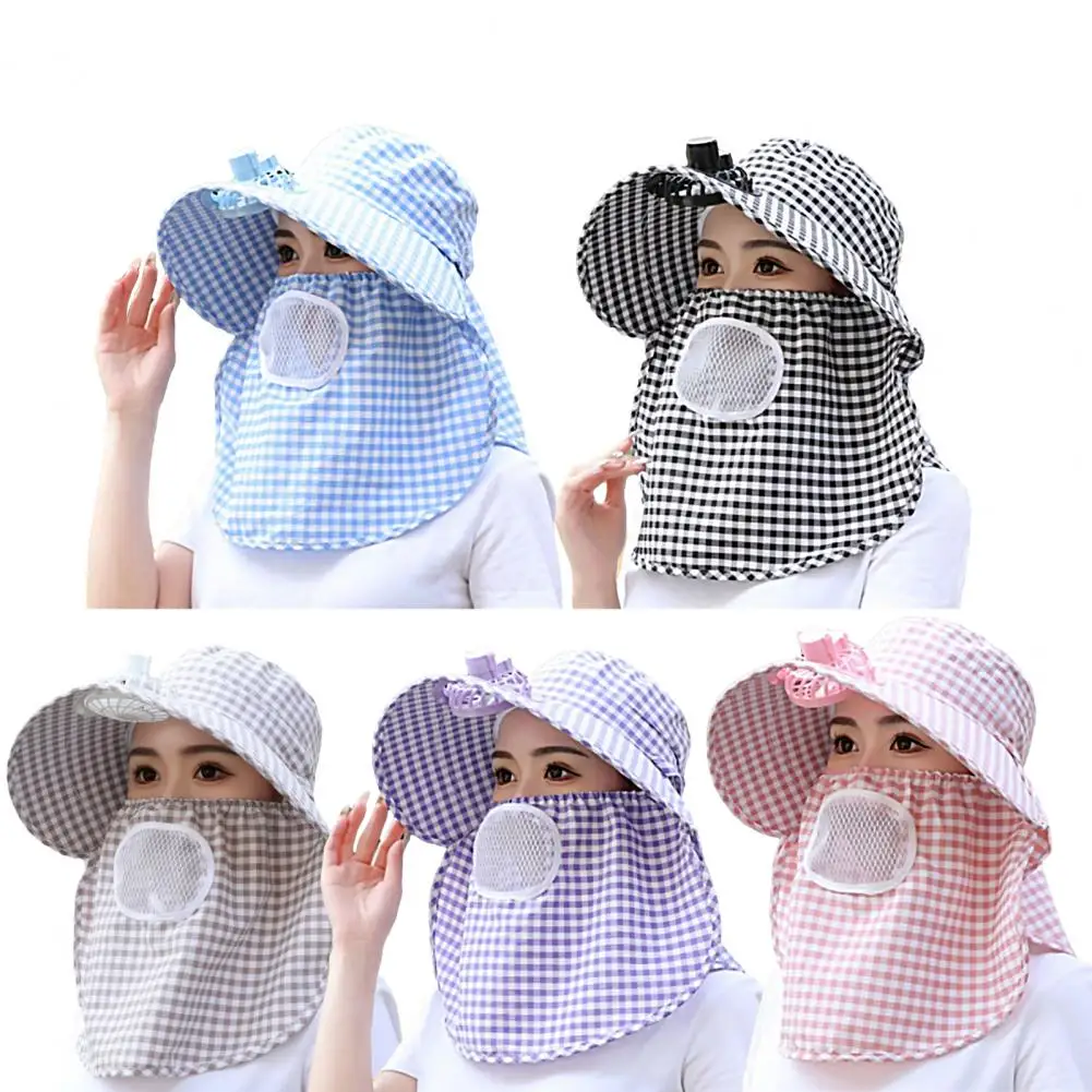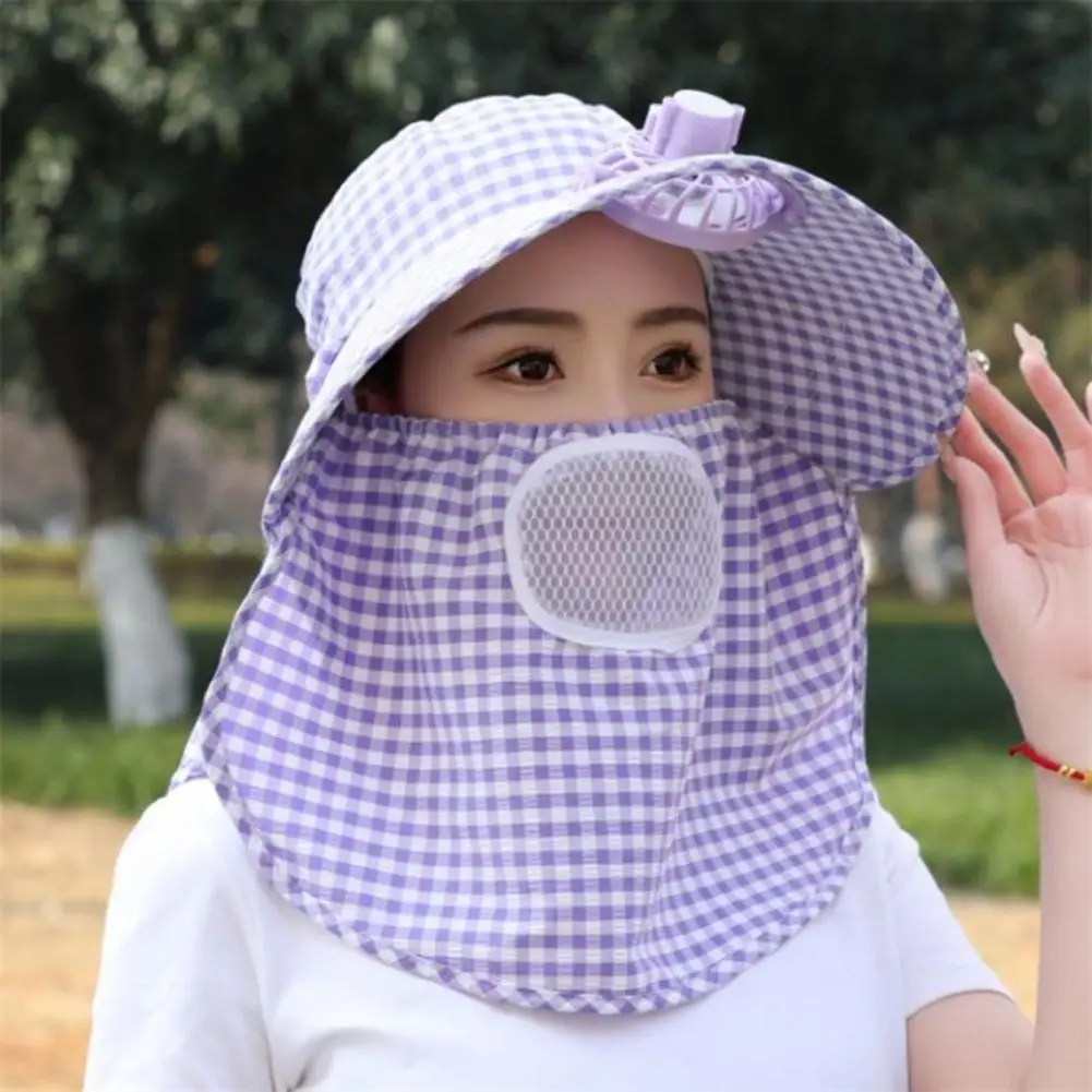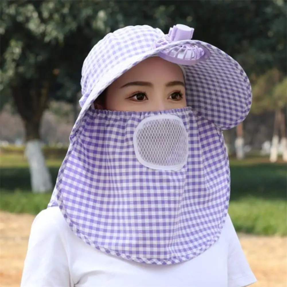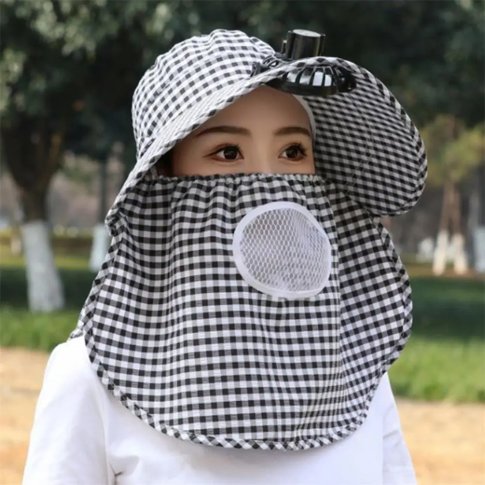 style="color:#3498db" Unisex Sun Hat with Face Front Cover Face Neck USB Three Gear Adjustment Electric Fan Hollow Mesh Anti-UV Foldable Sunscreen Breathable Gardening Fishing Outdoor Cap