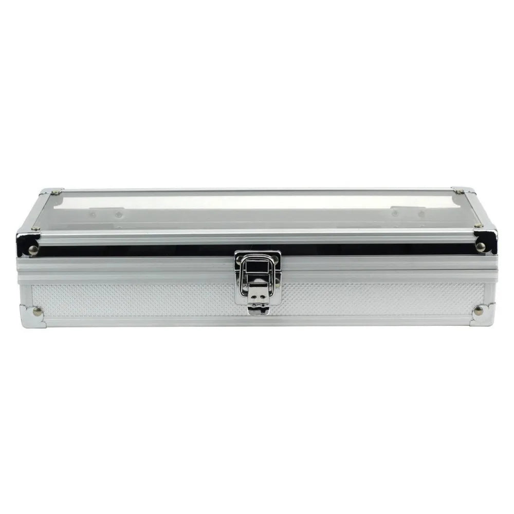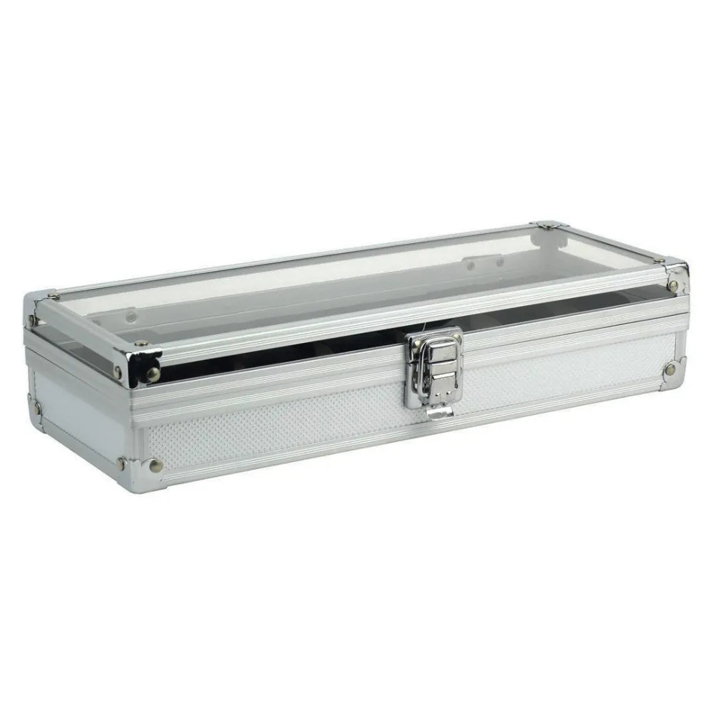 ● Men And Women 6 Slots Watch Box Watch Display Case Aluminum Glass Top Jewelry Storage Case Organizer Large Holder Velvet Pillow with Metal Buckle Lock