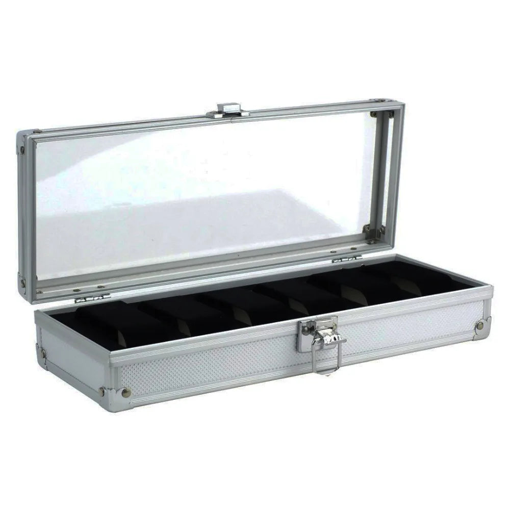 SZanbana 6Slot Watch Box Watch Display Case Aluminum Glass Top Jewelry Storage Organizer Velvet Pillow with Lock For Men & Women