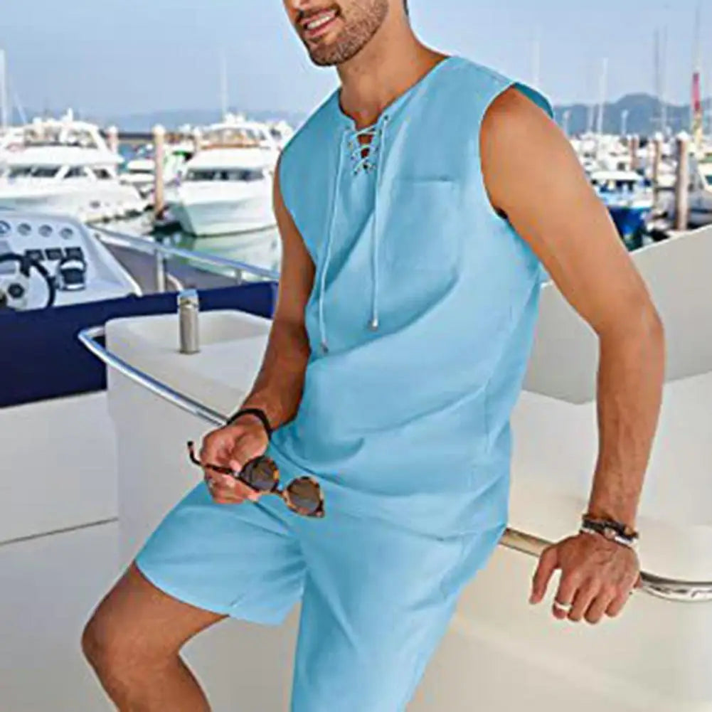 T-shirt Shorts Set Men's Sportswear Set Sleeveless V Neck Vest Elastic Waist Shorts with Patch Pockets Breathable Quick for Men mon