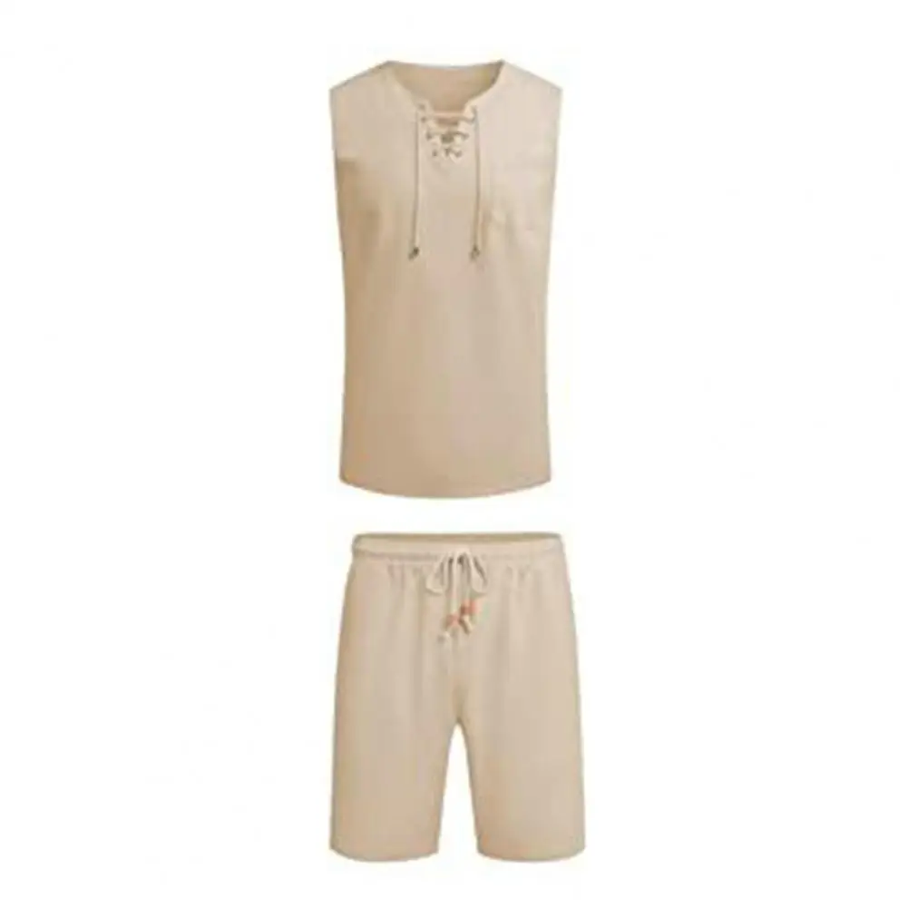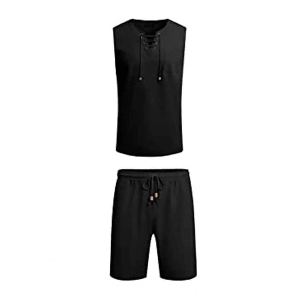 T-shirt Shorts Set Men's Sportswear Set Sleeveless V Neck Vest Elastic Waist Shorts with Patch Pockets Breathable Quick for Men