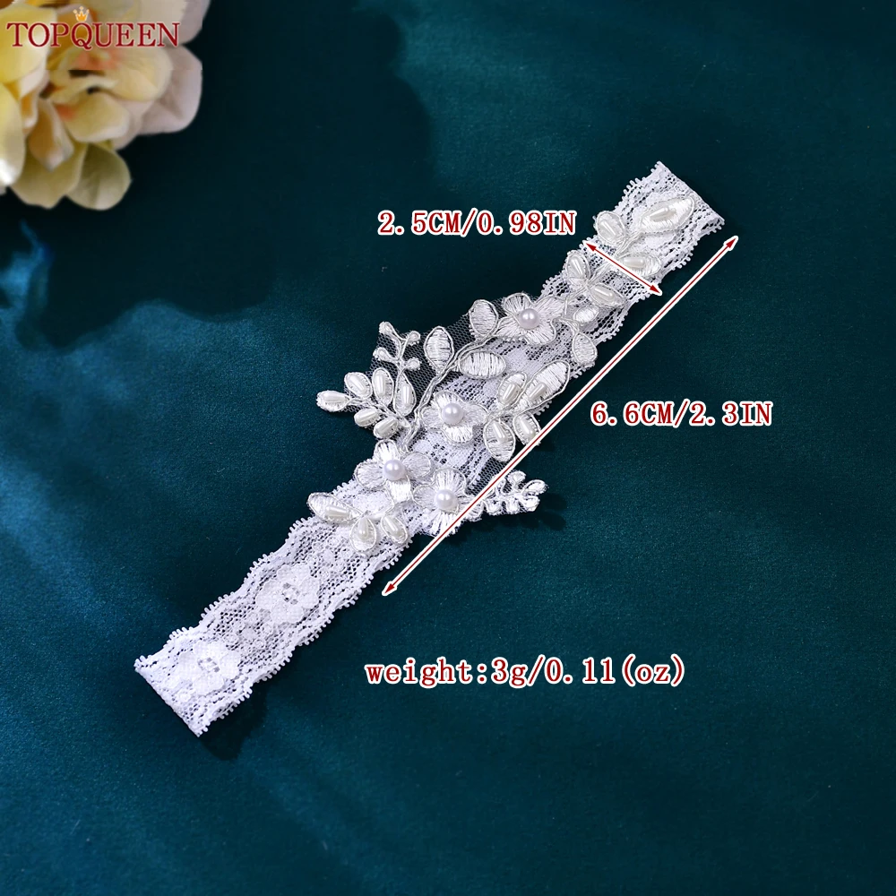 TOPQUEEN Simple Wedding Bridal Garter White Lace Elastic Leg Band Embroidered Flowers Faux Pearls Decorative Women Thigh Rings