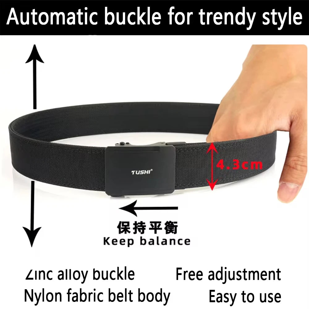 TUSHI Marke 4,3 Breiter, verdickter, doppellagiger Nylongürtel zum Aufhängen von Waffen, vielseitig einsetzbar, lässig, für den Außenbereich, taktische automatische Schnalle für Herren