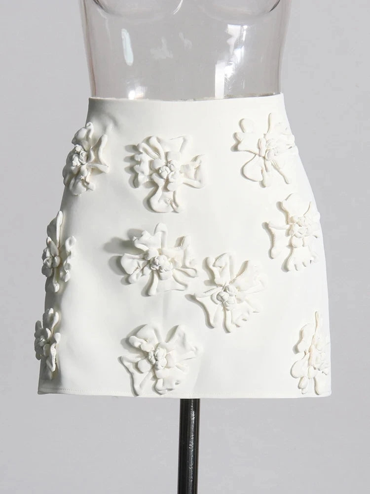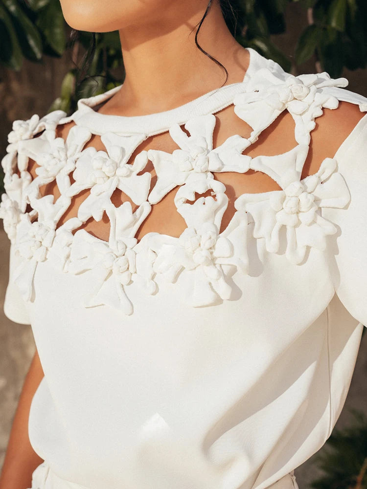 TWOTWINSTYLE Solid Elegant Two Piece Set For Women Round Neck Short Sleeve T Shirt High Waist Mini Skirt Slimming Sets Female