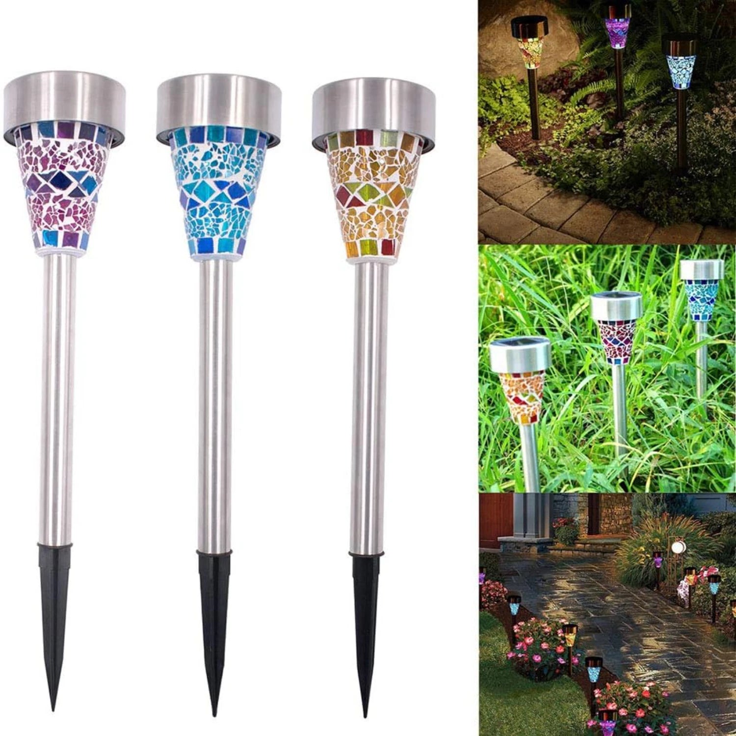 Werten Sie Ihre Außendekoration mit hochwertigen Solar-Gartenlampen aus Edelstahl auf - Verbessern Sie die Schönheit Ihrer Terrasse oder Ihres Gehwegs mit einem atemberaubenden blauen Schirm und energieeffizienten LED-Leuchten