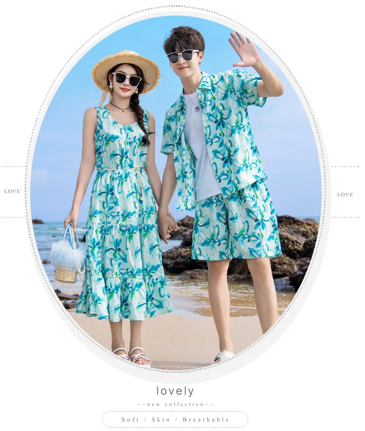 Urlaub Eltern-Kind-Kleidung Familie passende Strand Paar Kleidung Papa Sohn Outfits Sets Resort Mama Tochter ärmelloses Kleid