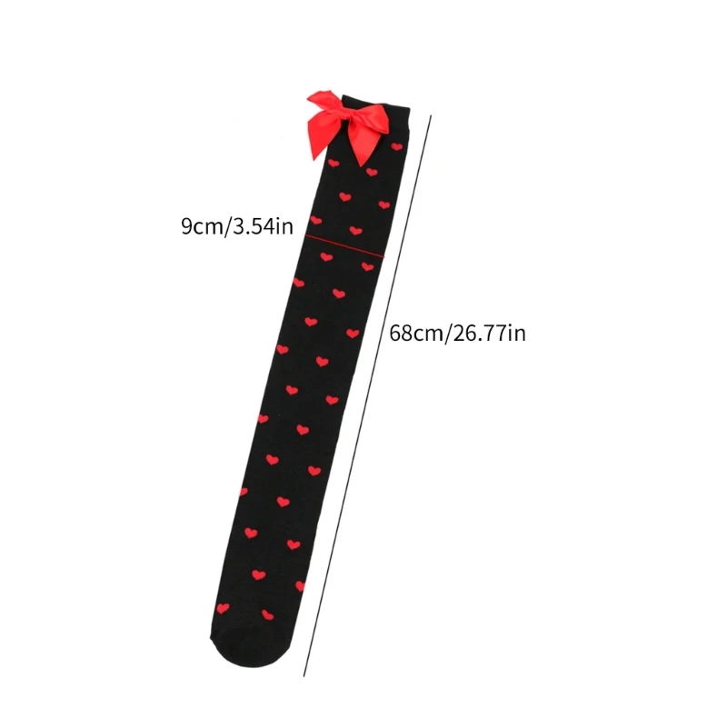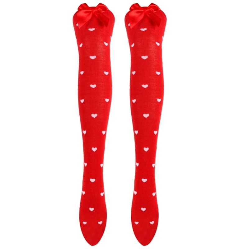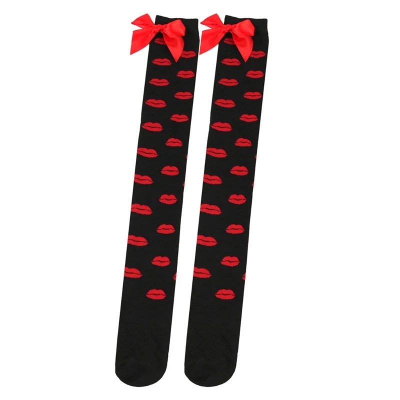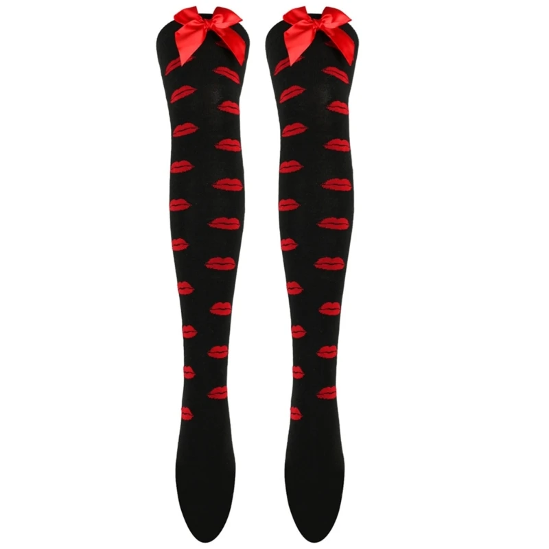 Valentine Day Bow Lip Heart Pattern Thigh High Stockings Tights for Women