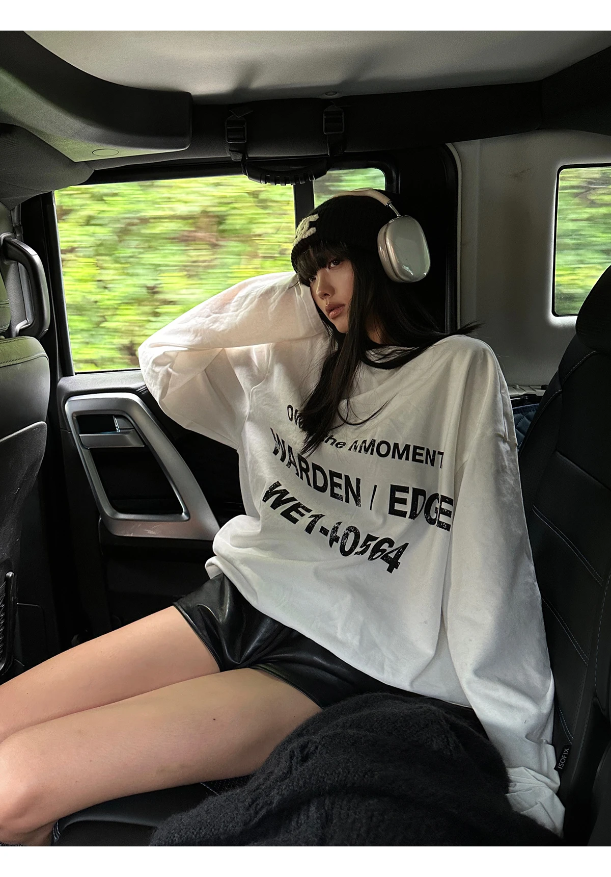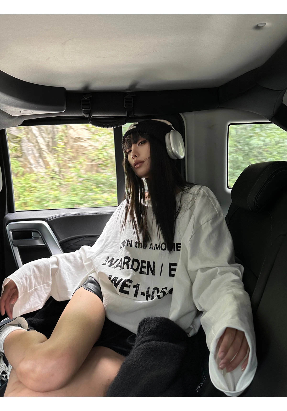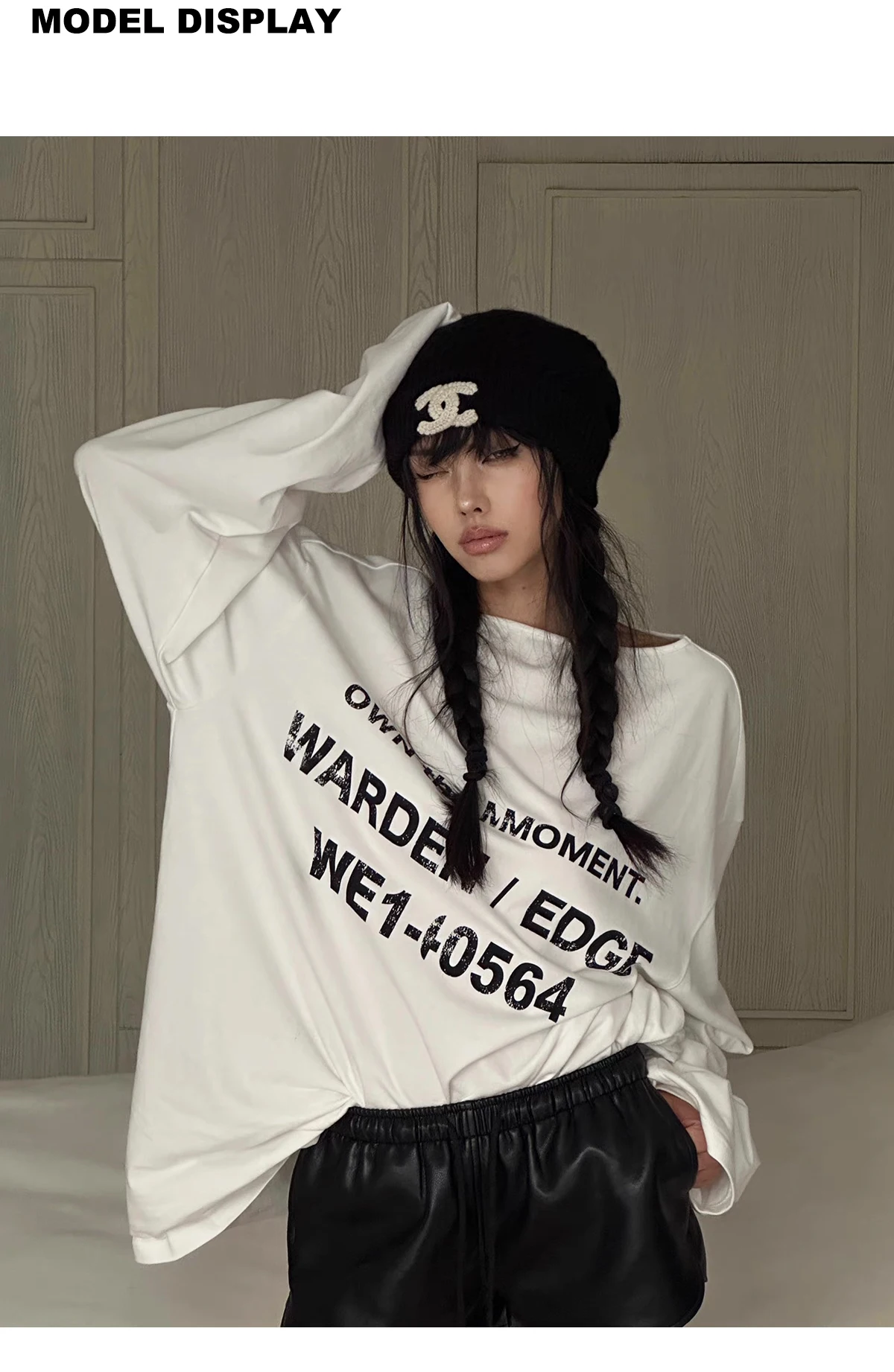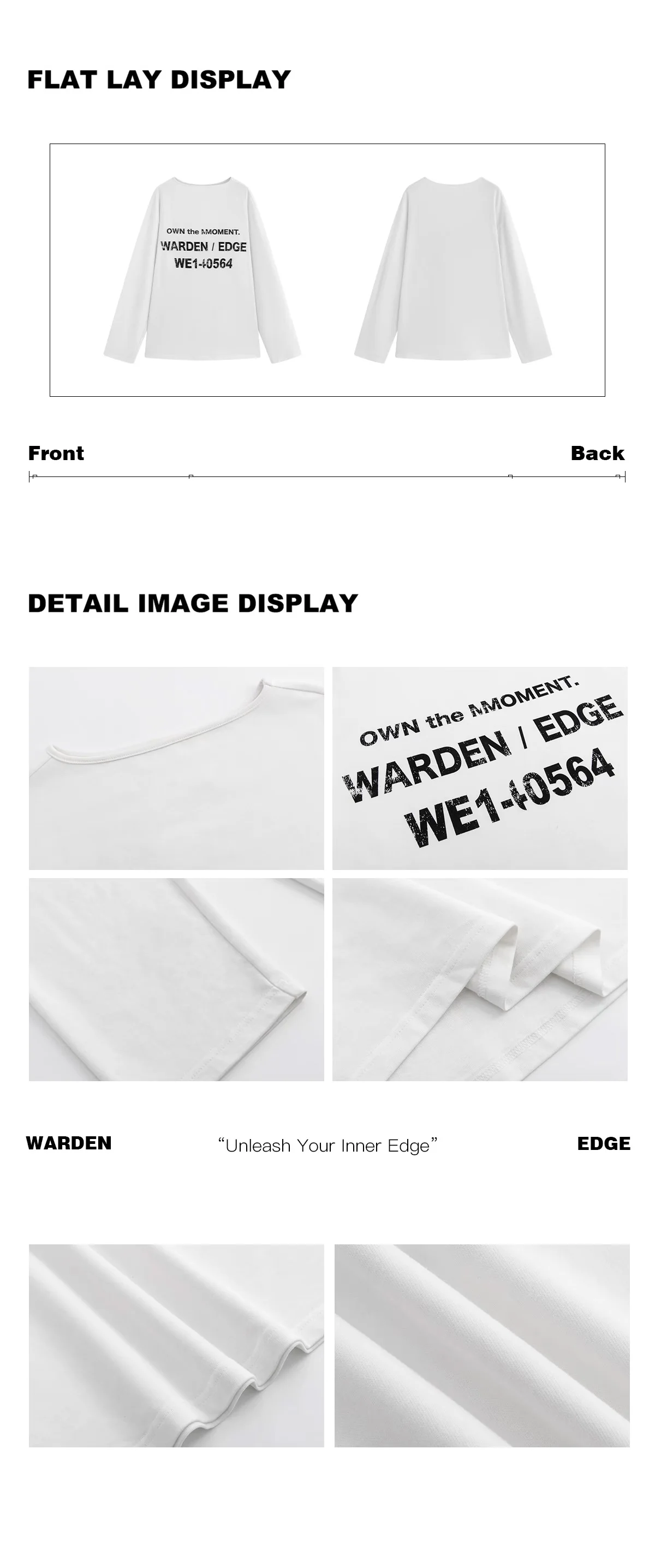 WARDEN EDGE Timeless Comfort White Long-Sleeve Tee-Effortless Minimal Letter Print Slim-Fit Casual Top for Petite Everyday Style clothes