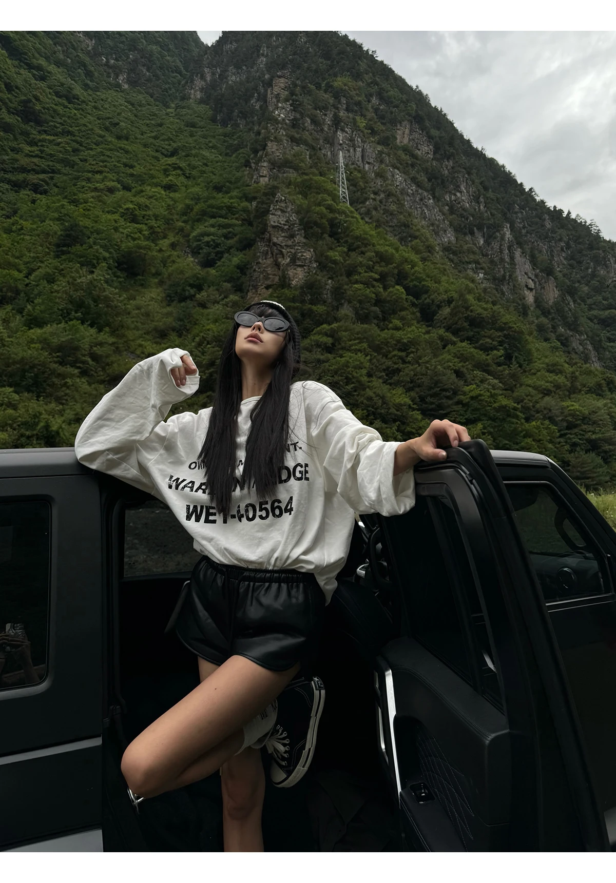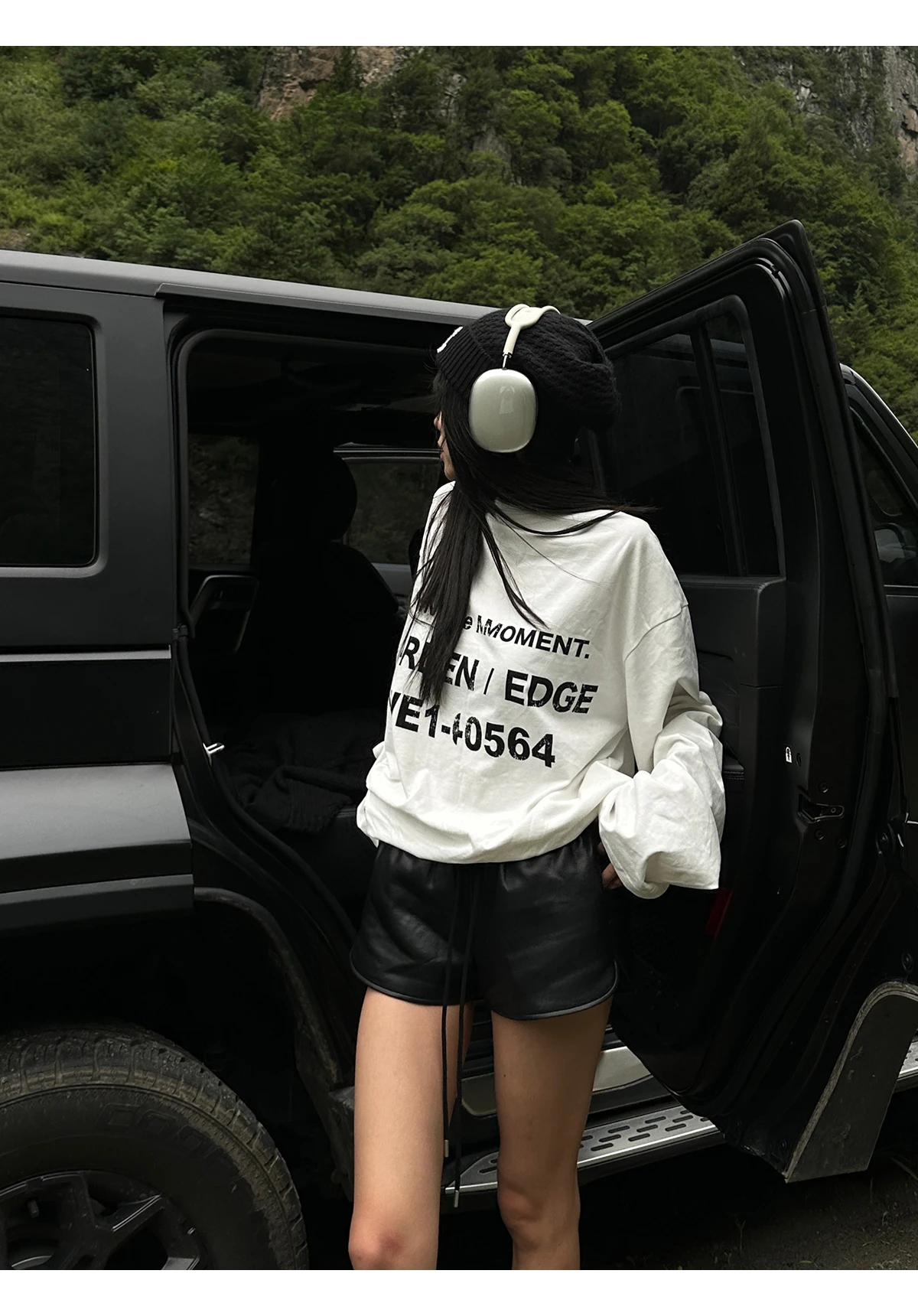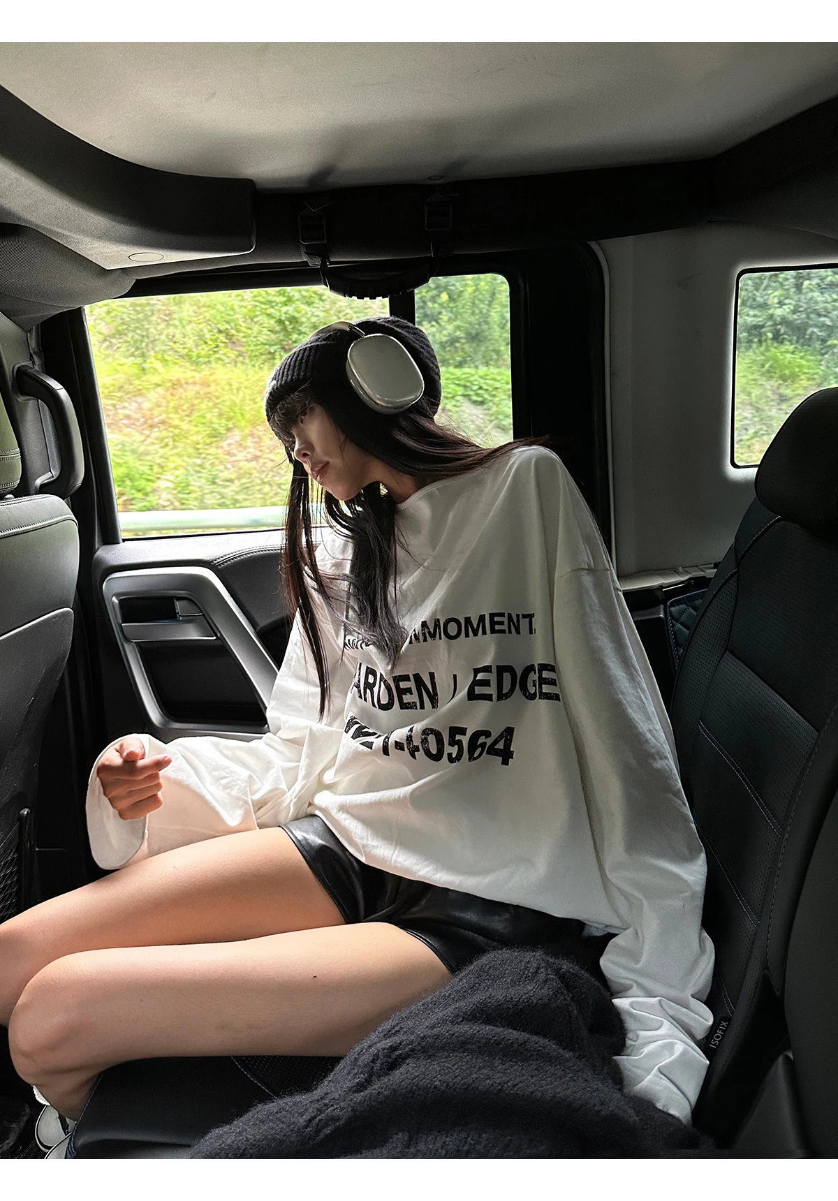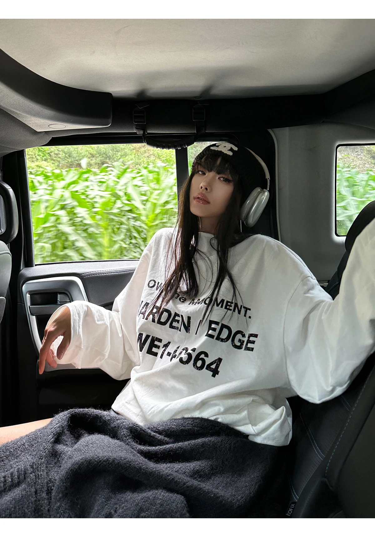 WARDEN EDGE Timeless Comfort White Long-Sleeve Tee-Effortless Minimal Letter Print Slim-Fit Casual Top for Petite Everyday Style clothes
