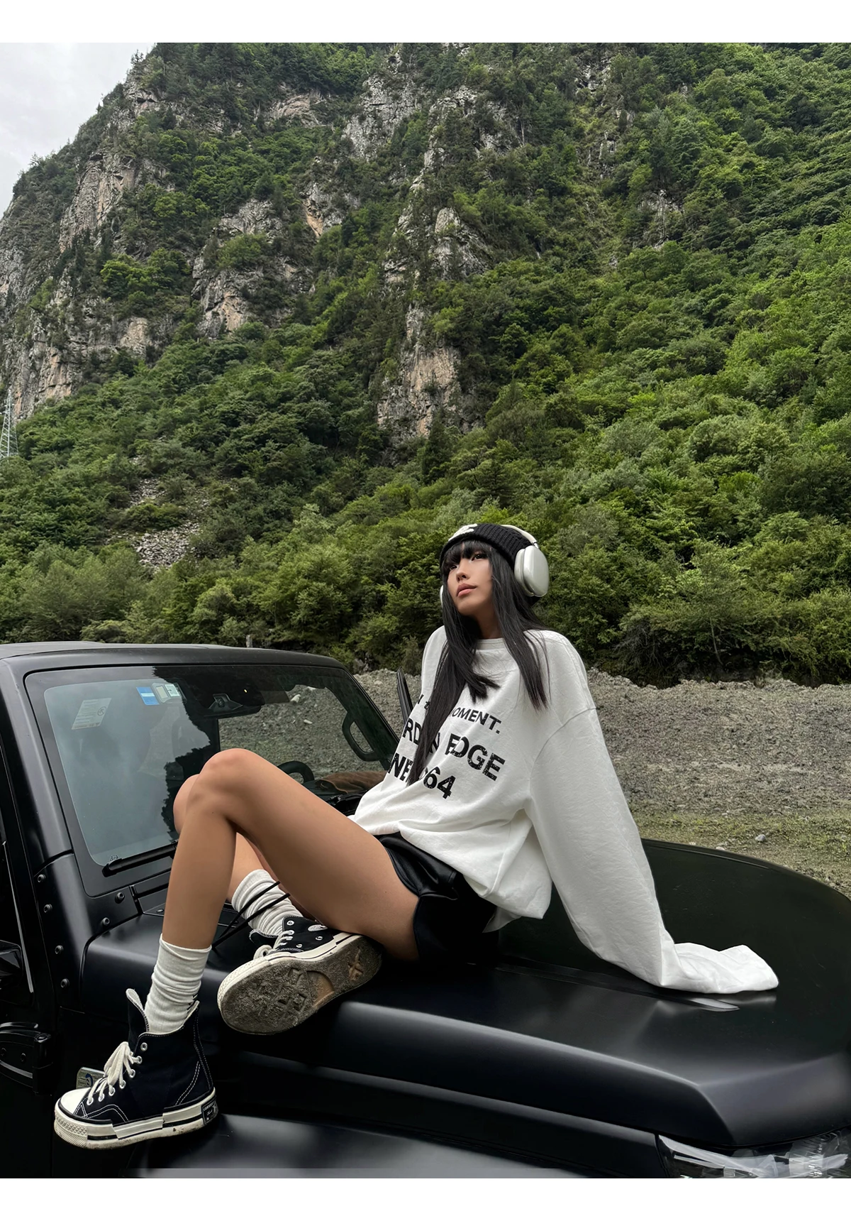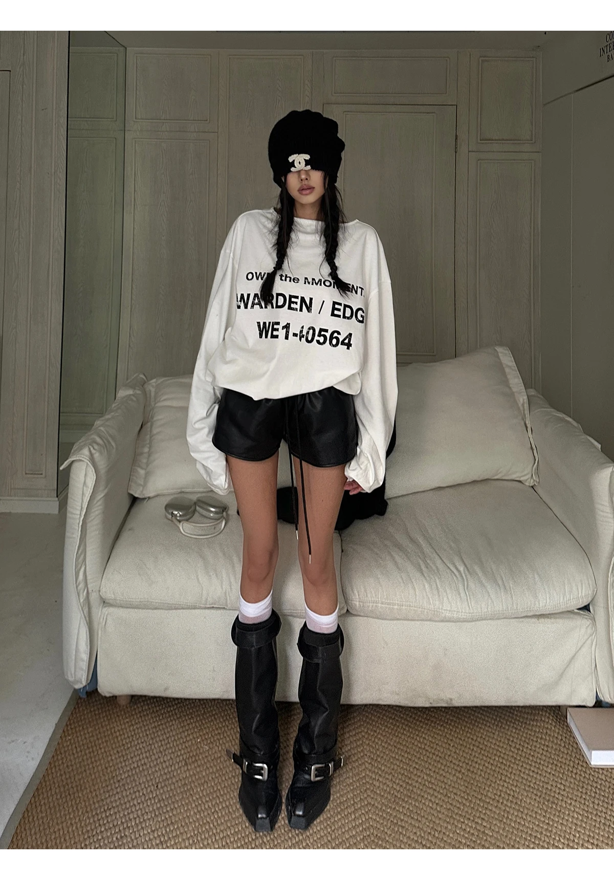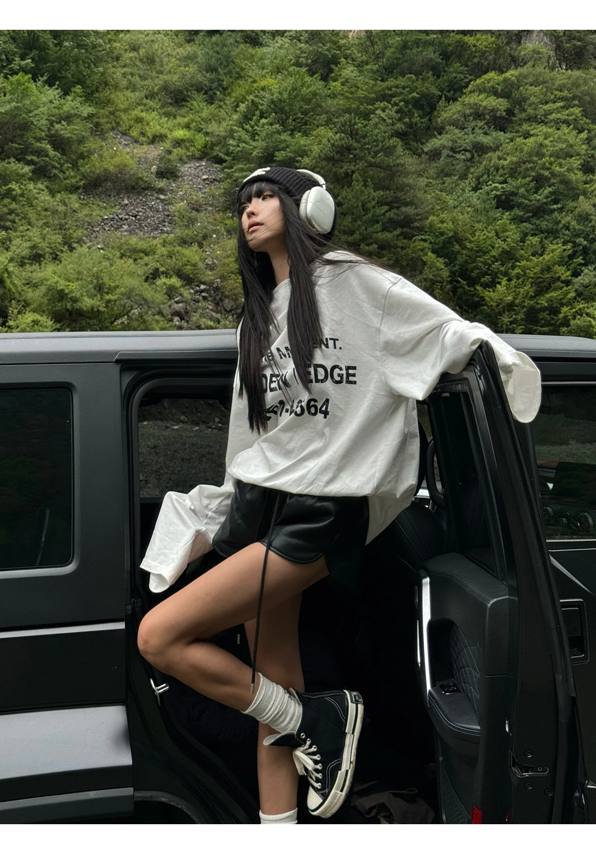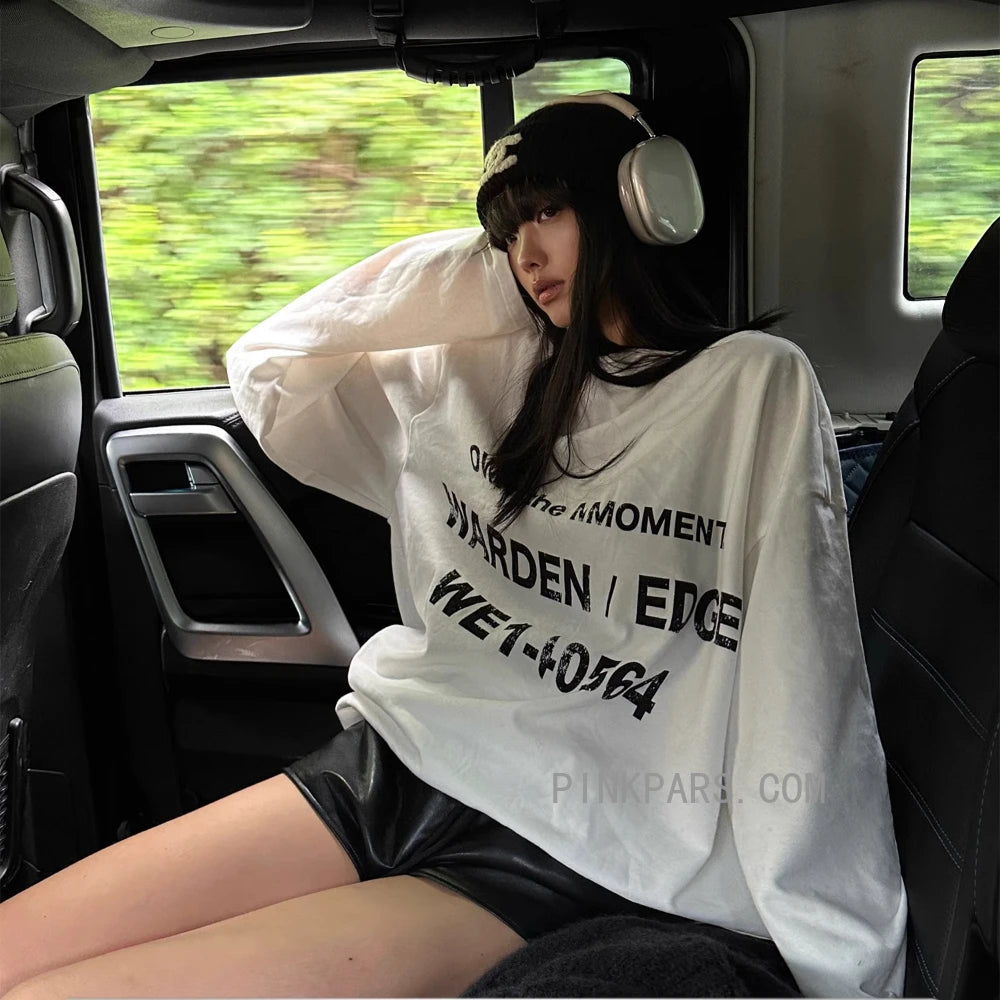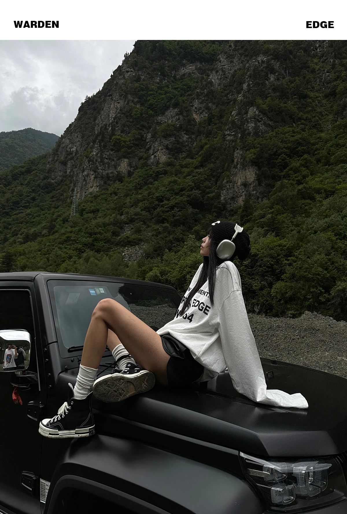 WARDEN EDGE Timeless Comfort White Long-Sleeve Tee-Effortless Minimal Letter Print Slim-Fit Casual Top for Petite Everyday Style clothes
