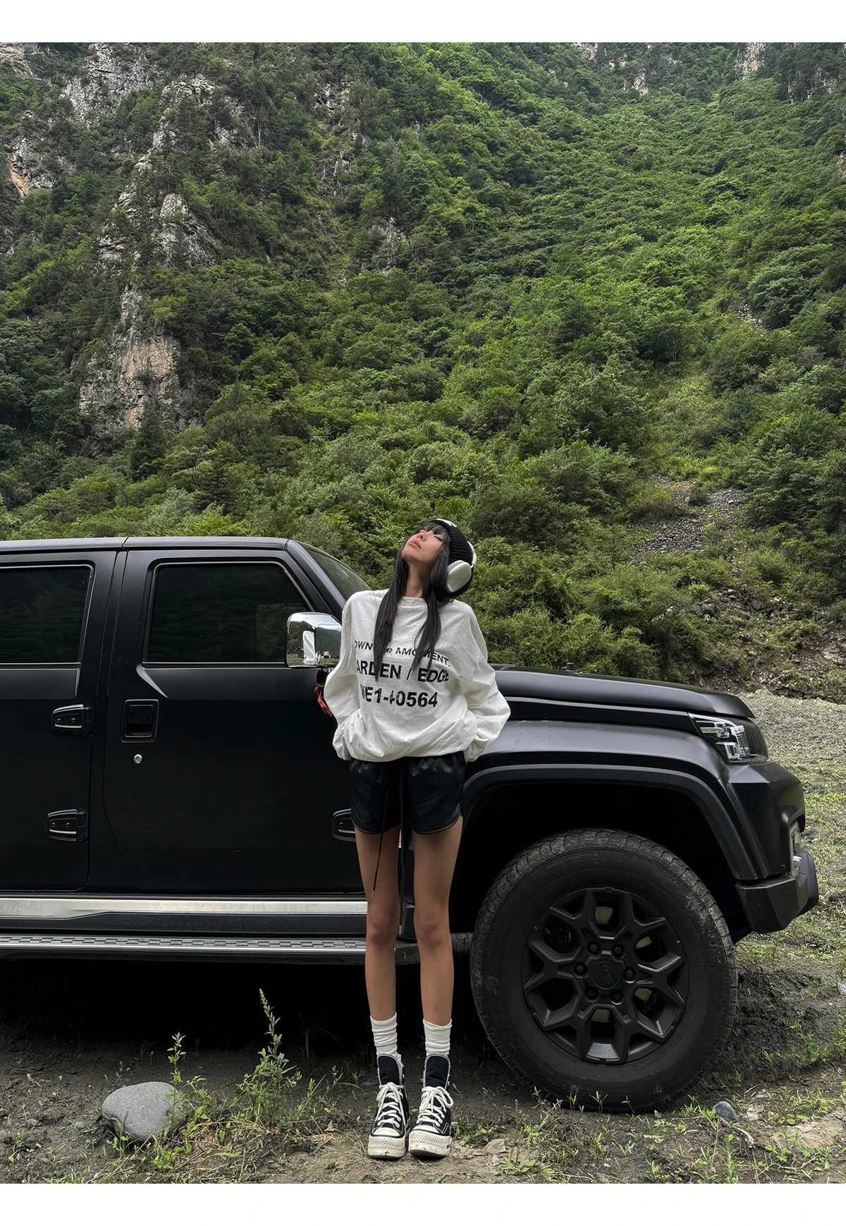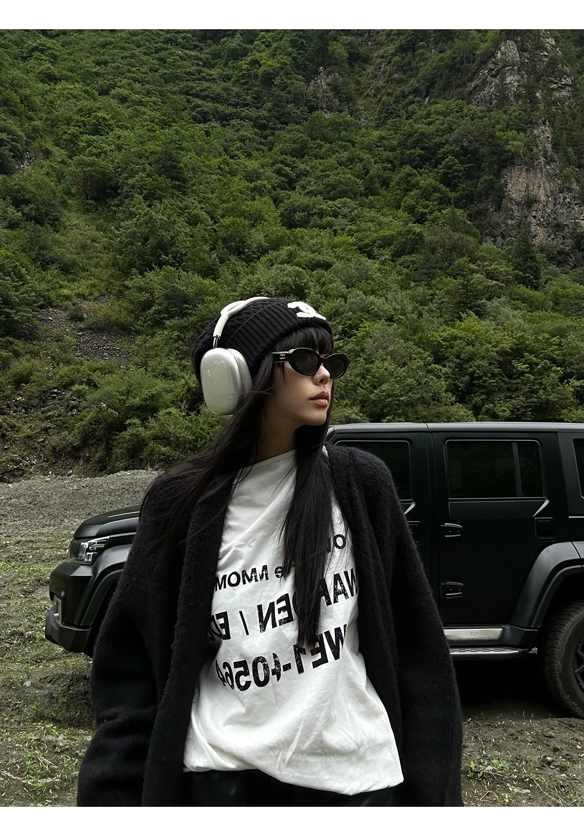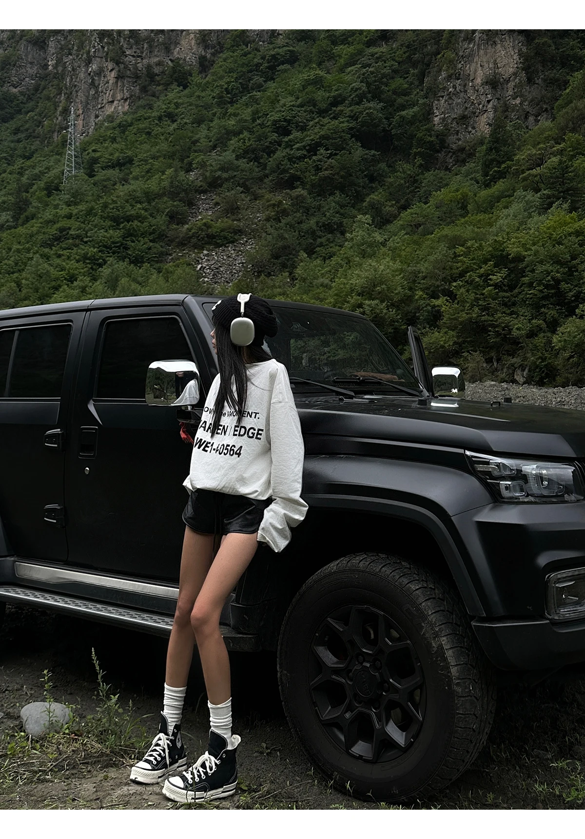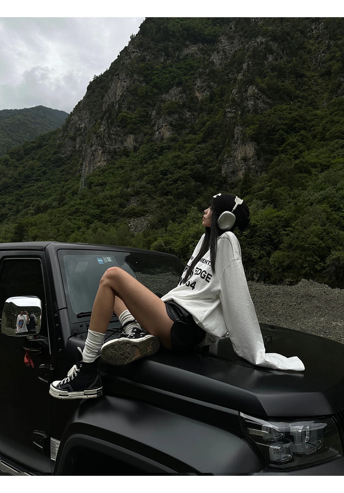 WARDEN EDGE Timeless Comfort White Long-Sleeve Tee-Effortless Minimal Letter Print Slim-Fit Casual Top for Petite Everyday Style clothes